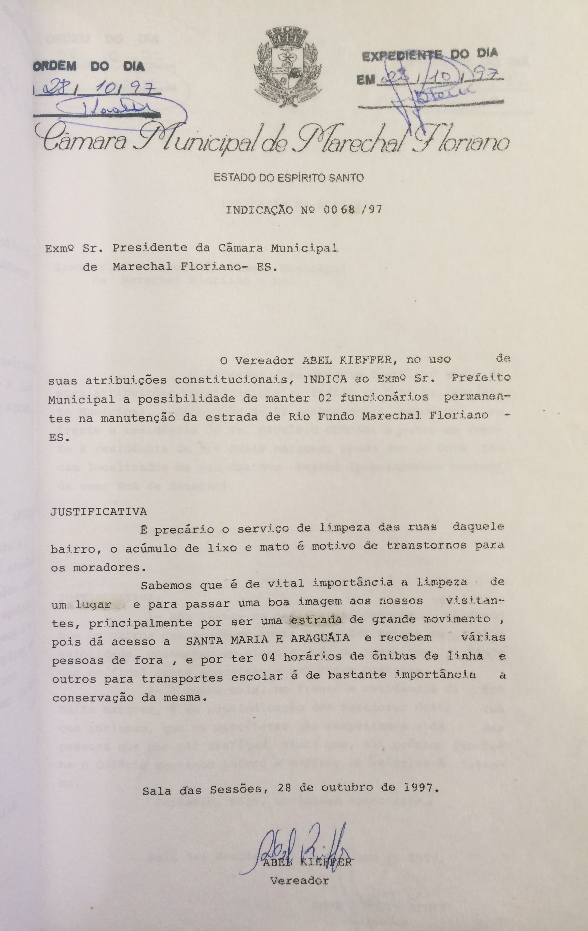 Ementa: INDICA A POSSIBILIDADE DE MANTER 02 FUNCIONÁRIOS PERMANENTES NA MANUTENÇÃO DA ESTRADA DE RIO FUNDO MARECHAL FLORIANO - ES.