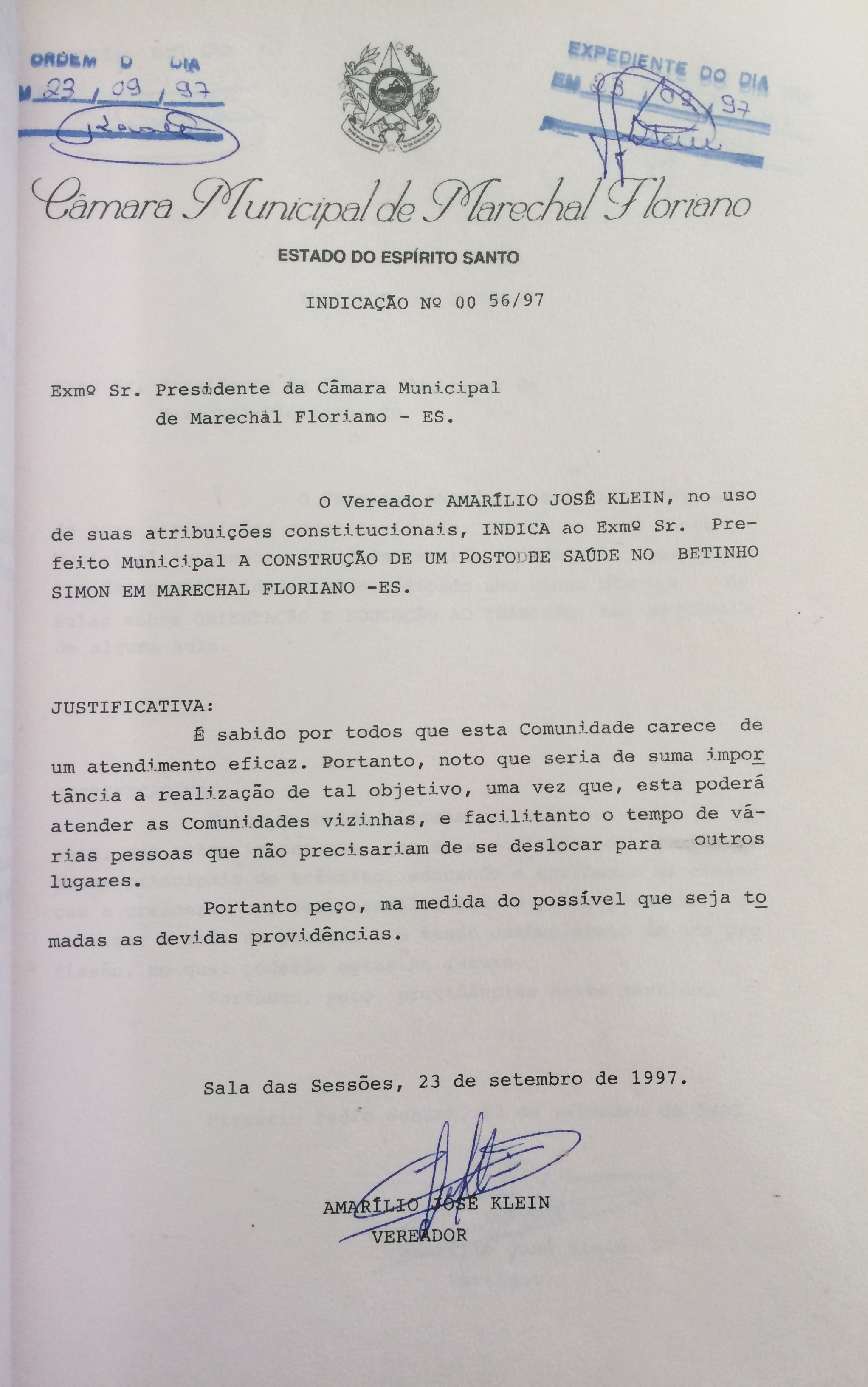 Ementa: INDICA A CONSTRUÇÃO DE UM POSTO DE SAÚDE NO BETINHO SIMON EM MARECHAL FLORIANO-ES.