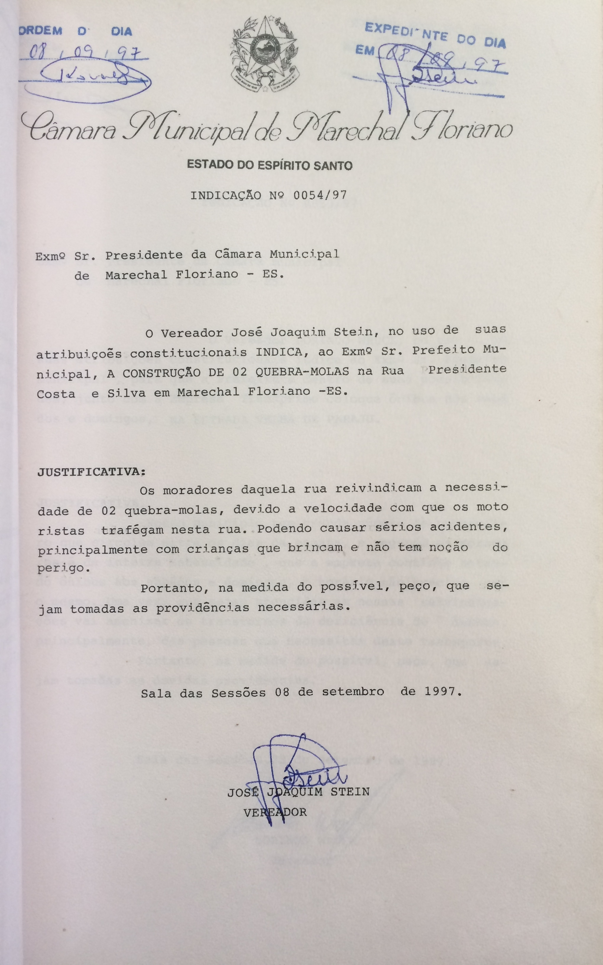 Ementa: INDICA A CONSTRUÇÃO DE 02 QUEBRA-MOLAS NA RUA PRESIDENTE COSTA E SILVA EM MARECHAL FLORIANO.