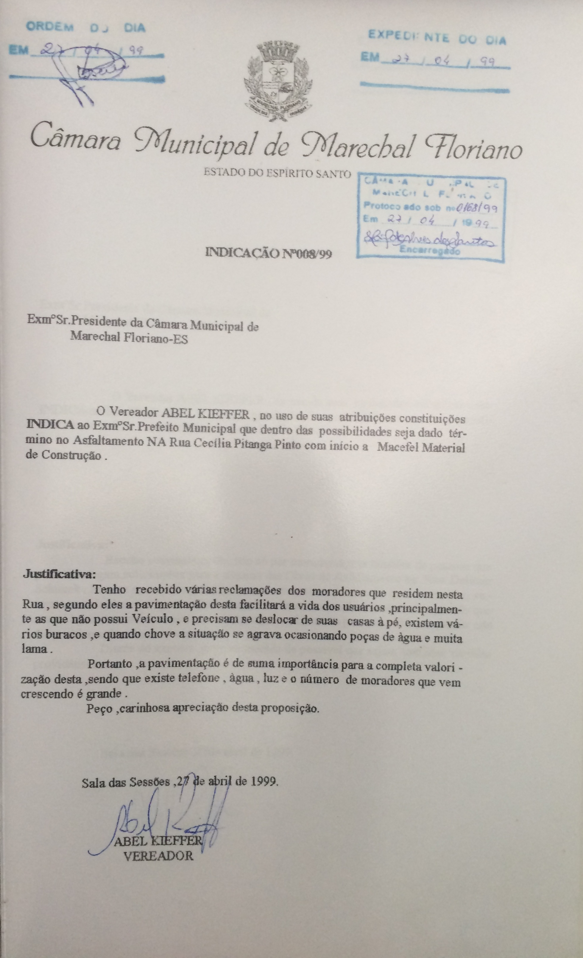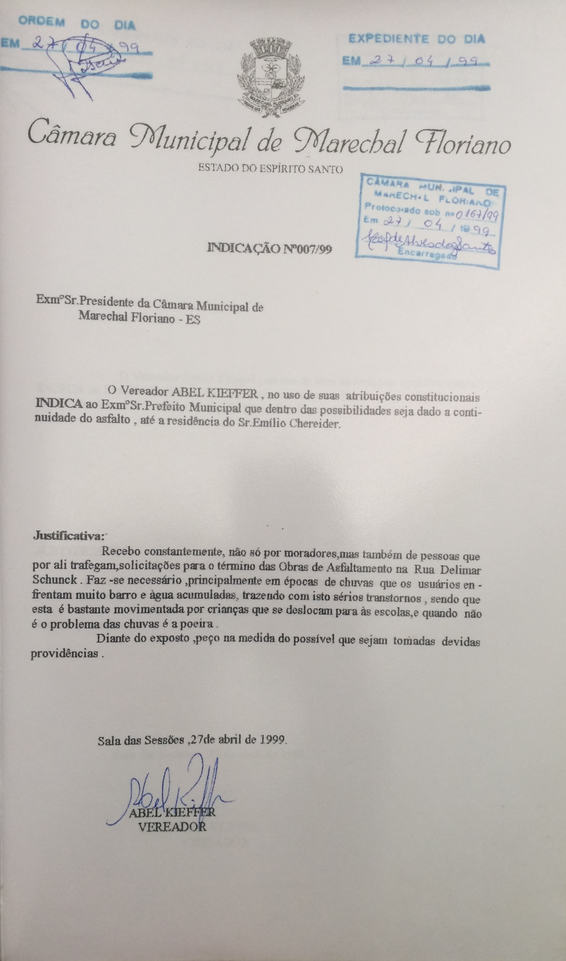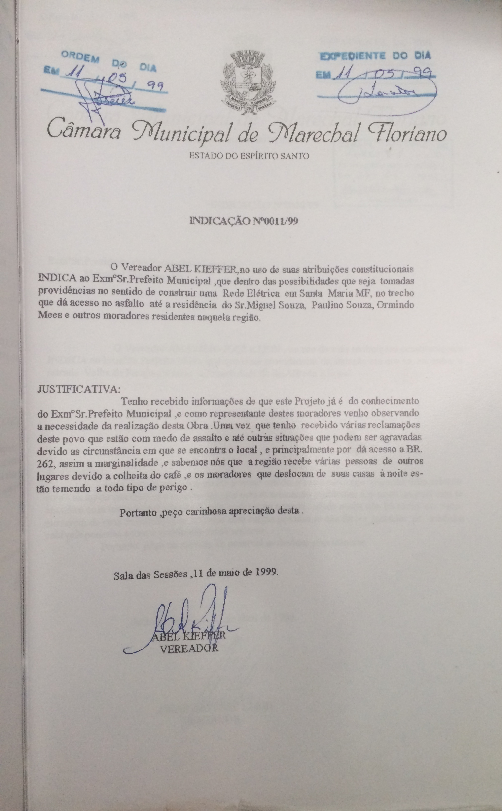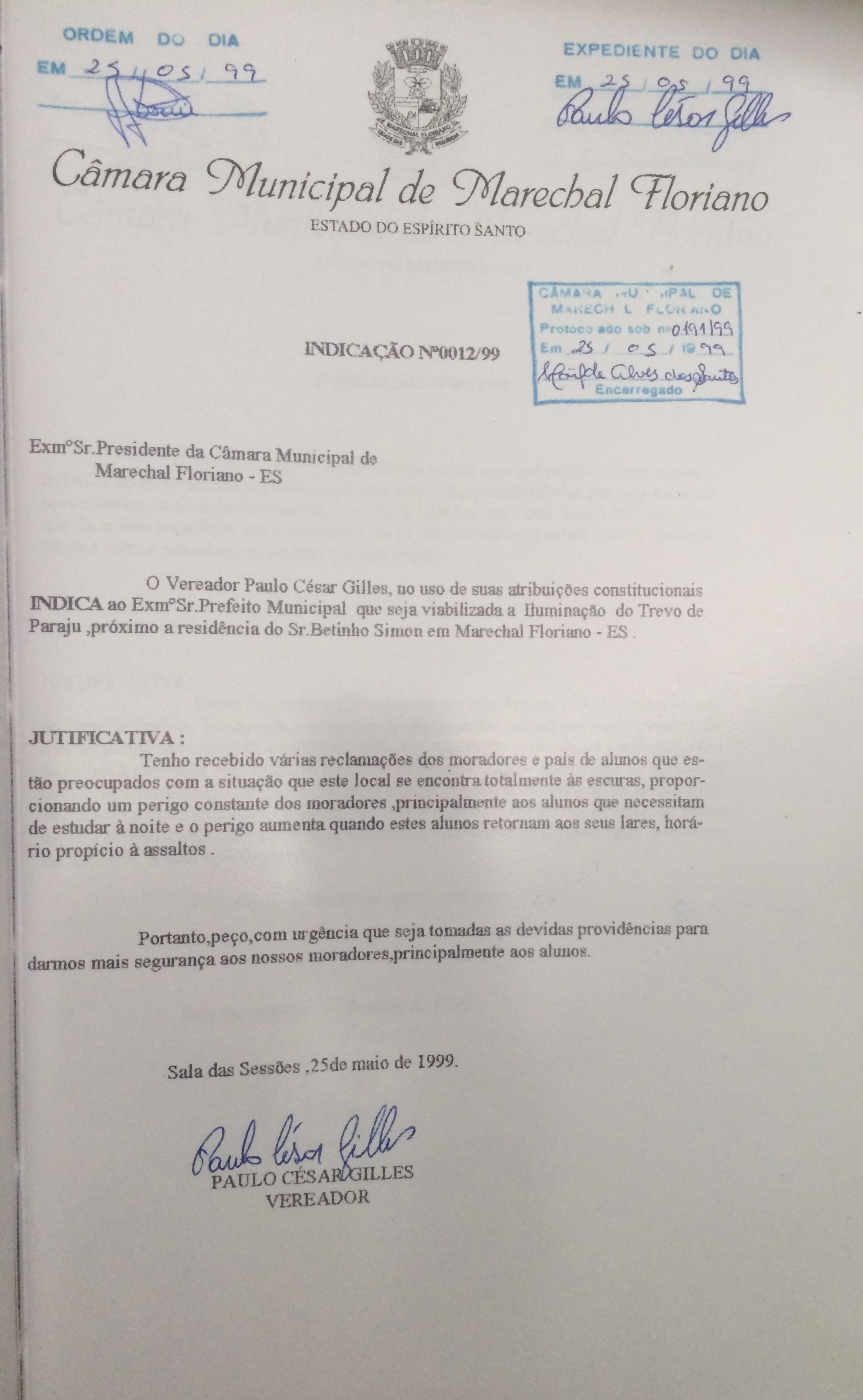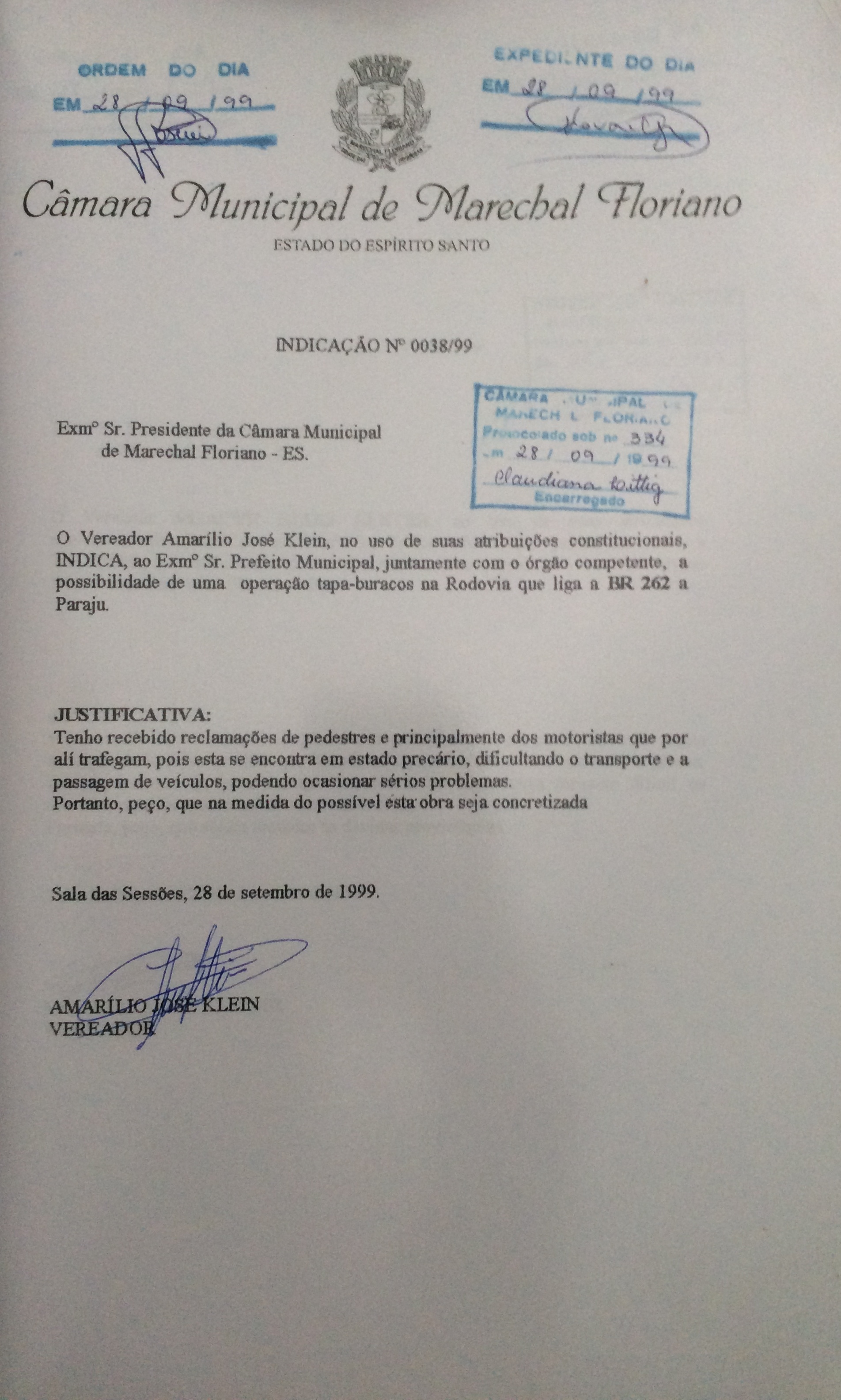 Ementa: INDICA A CONSTRUÇÃO DE UMA PONTE DE CONCRETO ARMADA NA ESTRADA QUE PASSA NA PROPRIEDADE DO SR. VALENTIM DORO, CLEMENTE HOFFMAN, CARLINHOS HOFFMAN E OUTROS MORADORES DESSA REFIÃO SEGUINDO A ALTO PARAJU.