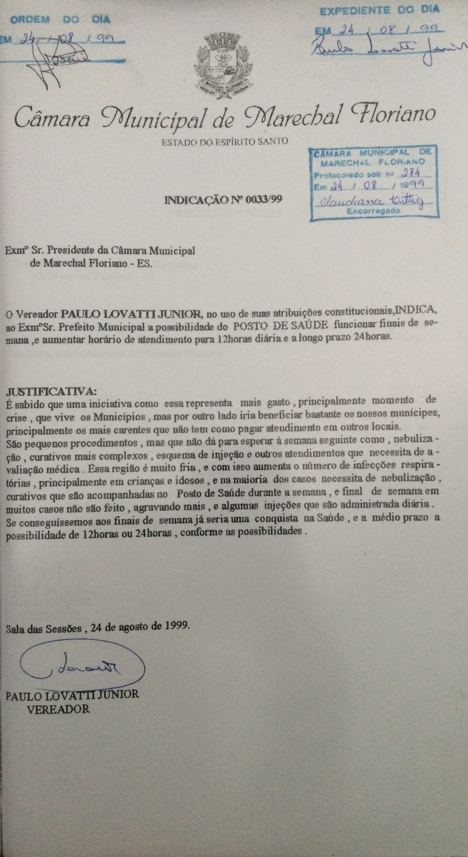 Ementa: INDICA A POSSIBILIDADE DO POSTO DE SAÚDE FUNCIONAR FINAIS DE SEMANA E AUMENTAR HORÁRIO DE ATENDIMENTO PARA 12 HORAS DIÁRIA E A LONGO PRAZO 24 HORAS.