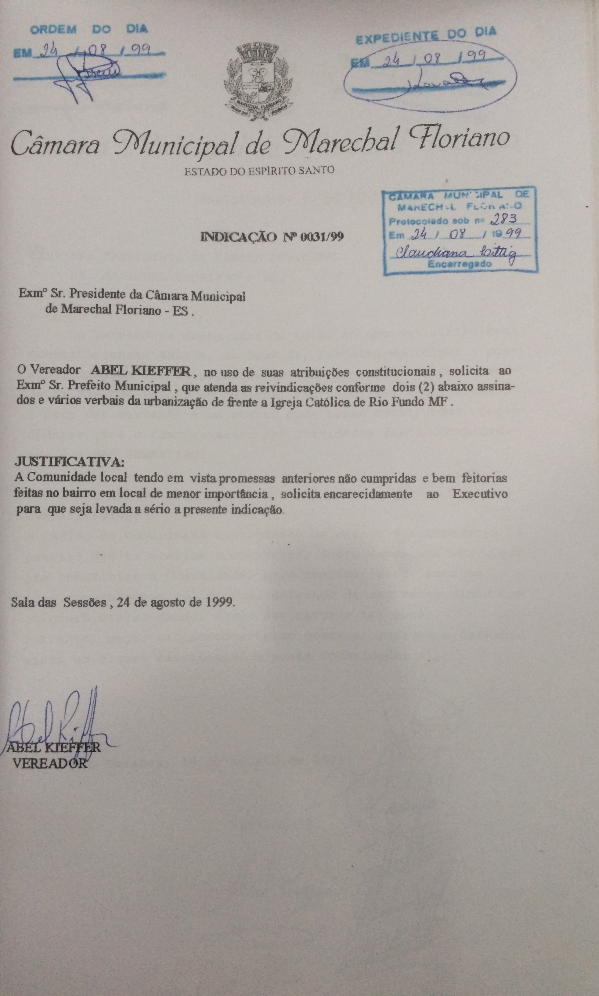 Ementa: SOLICITA QUE ATENDA AS REIVINDICAÇÕES CONFORME DOIS (2) ABAIXO DOS VÁRIOS VERBAIS DE FRENTE A IGREJA CATÓLICA DE RIO FUNDO M.