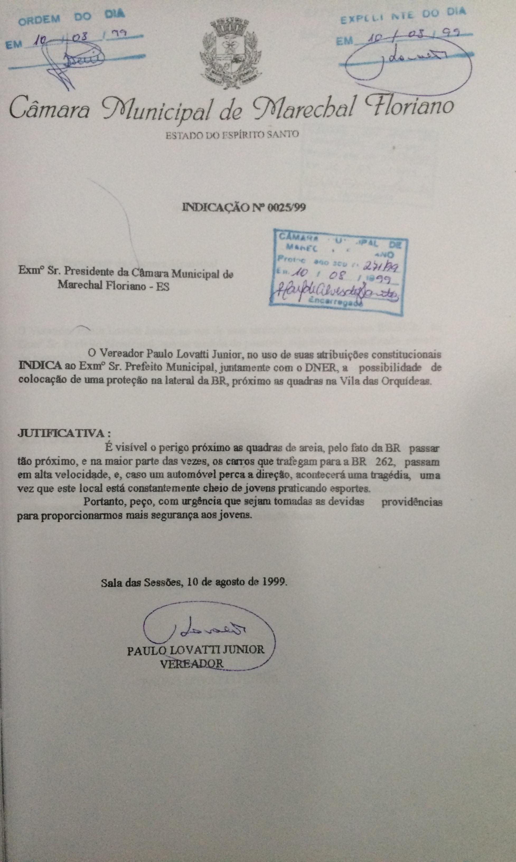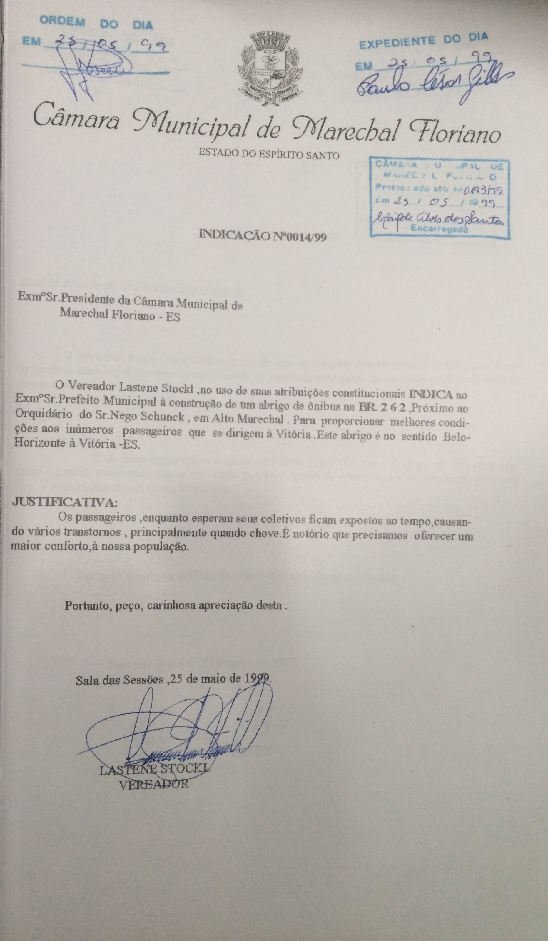Ementa: INDICA A CONSTRUÇÃO DE UM ABRIGO DE ÔNIBUS NA BR 262 PRÓXIMO AO ORQUIDÁRIO DO SR. NEGO SCHUNCK, EM ALTO MARECHAL.
