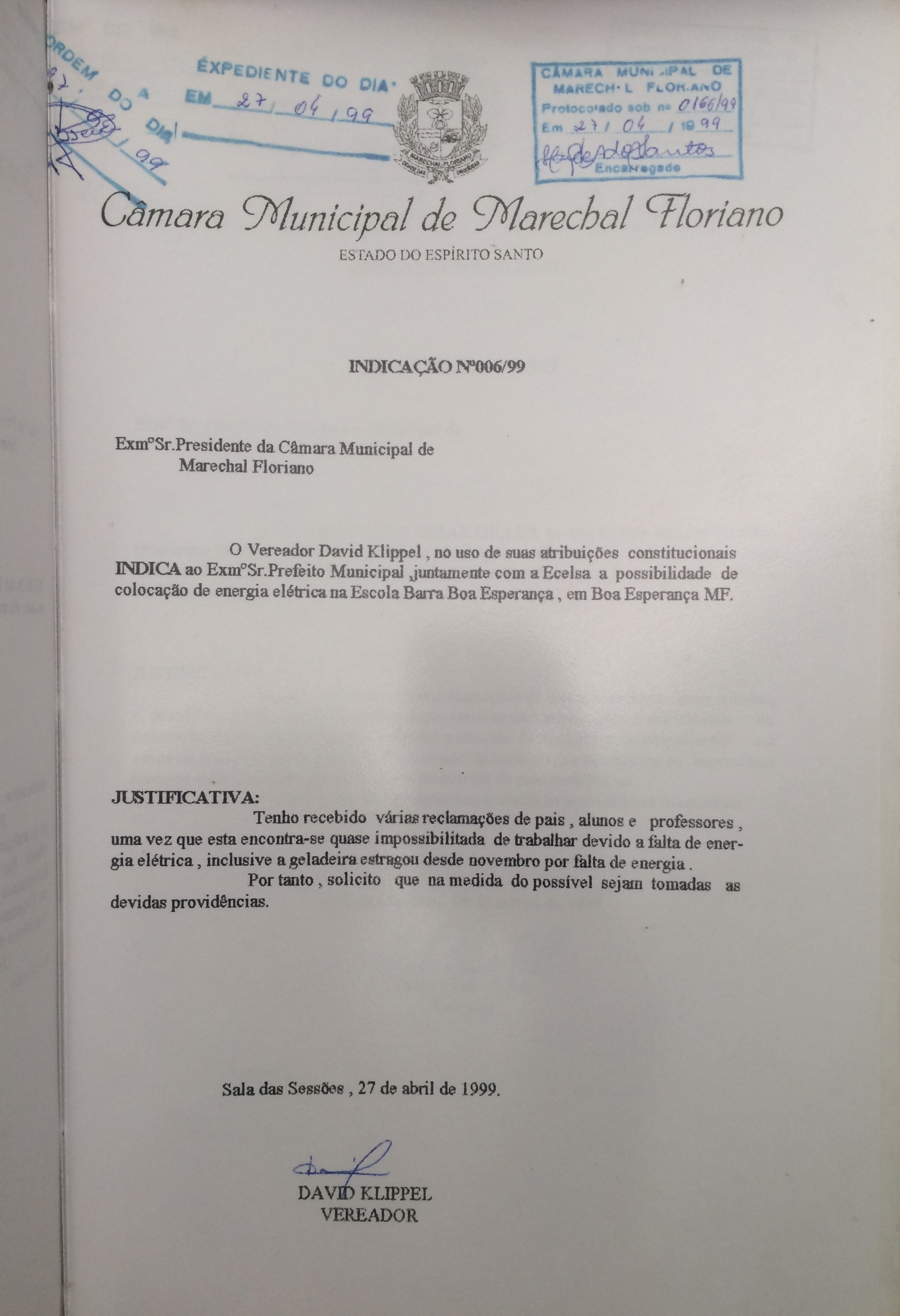 Ementa: INDICA A POSSIBILIDADE DE COLOCAÇÃO DE ENERGIA ELÉTRICA NA ESCOLA BARRA BOA ESPERANÇA MF.