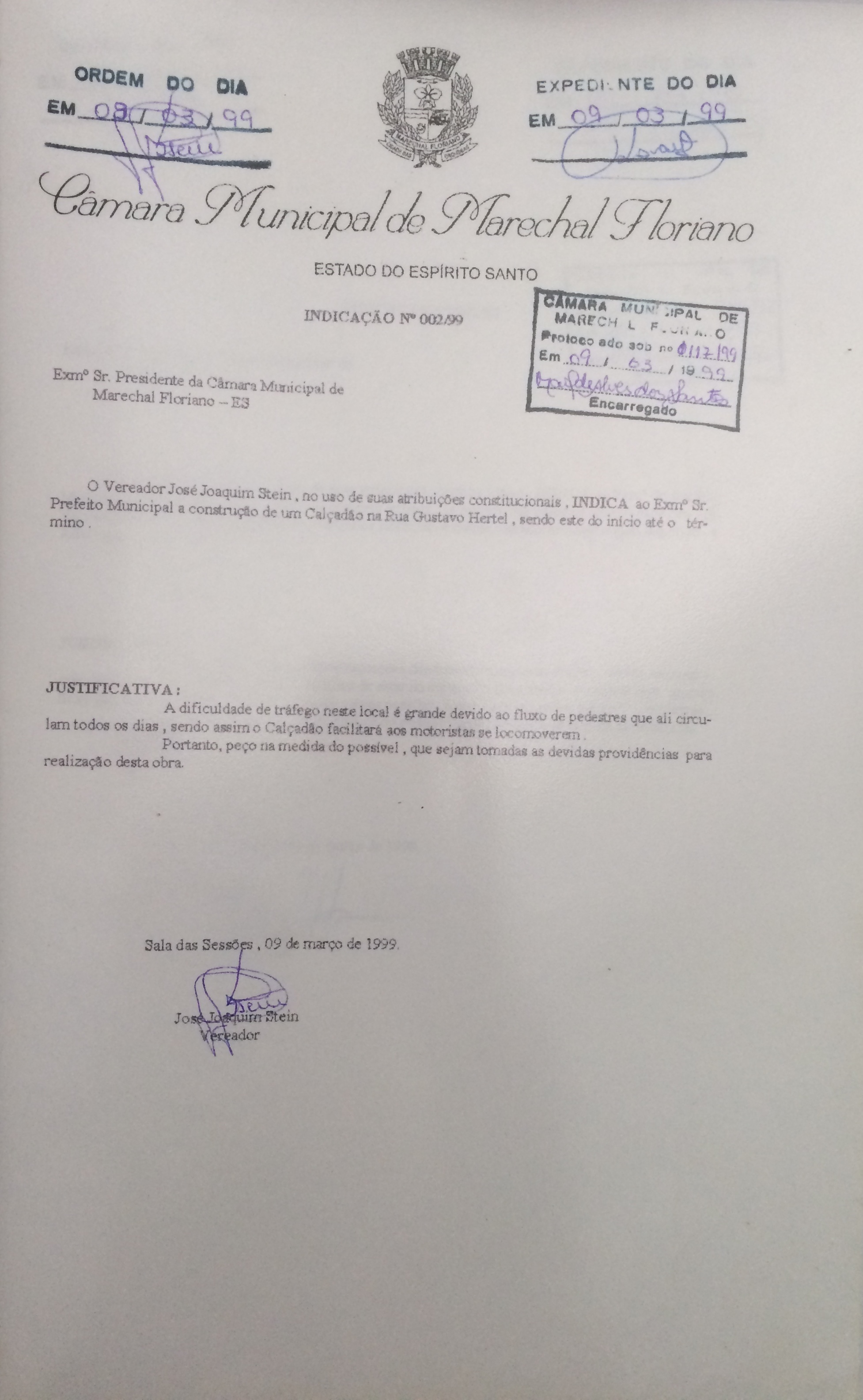 Ementa: INDICA CONSTRUÇÃO DE UM CALÇADÃO NA RUA GUSTAVO HERTEL, SENDO ESTE DO INICIO AO TÉRMINO.