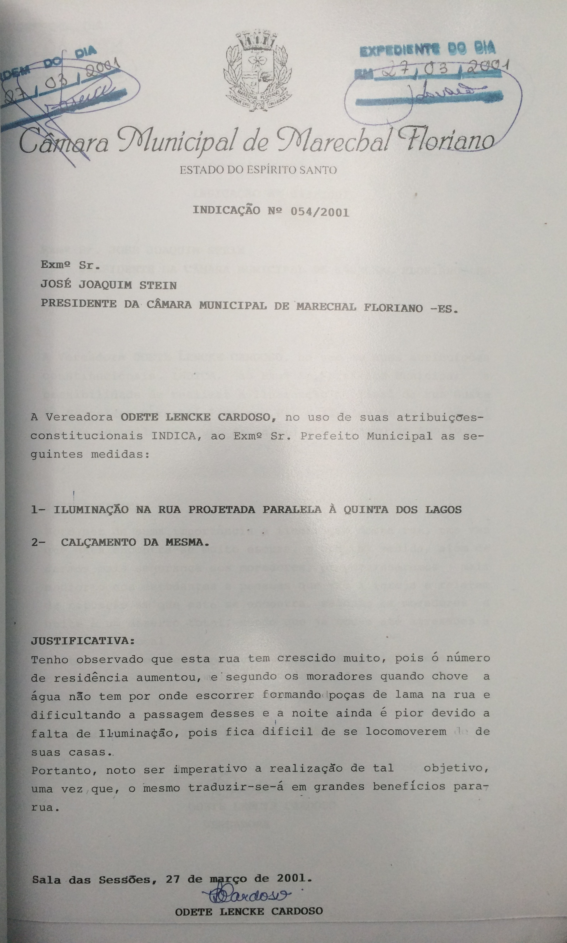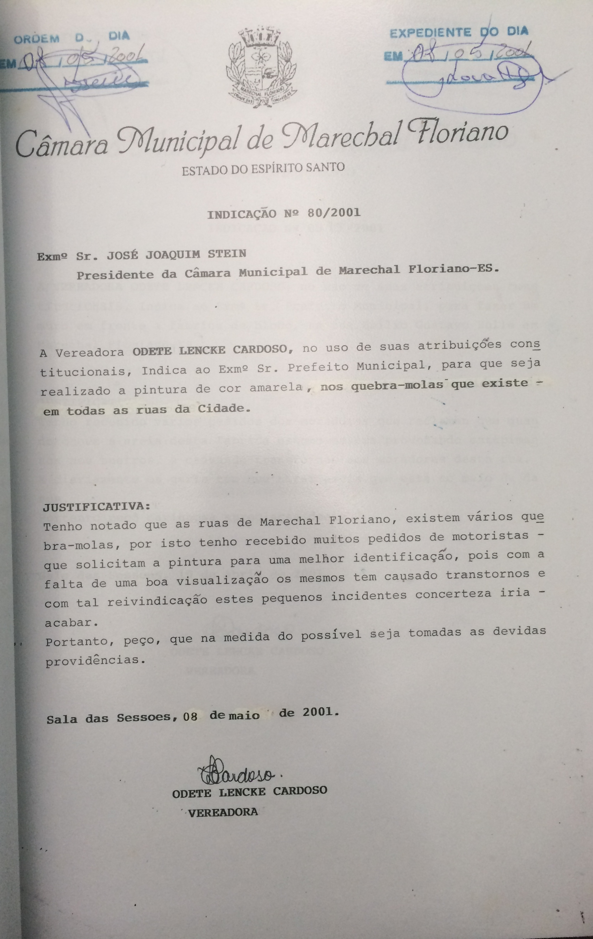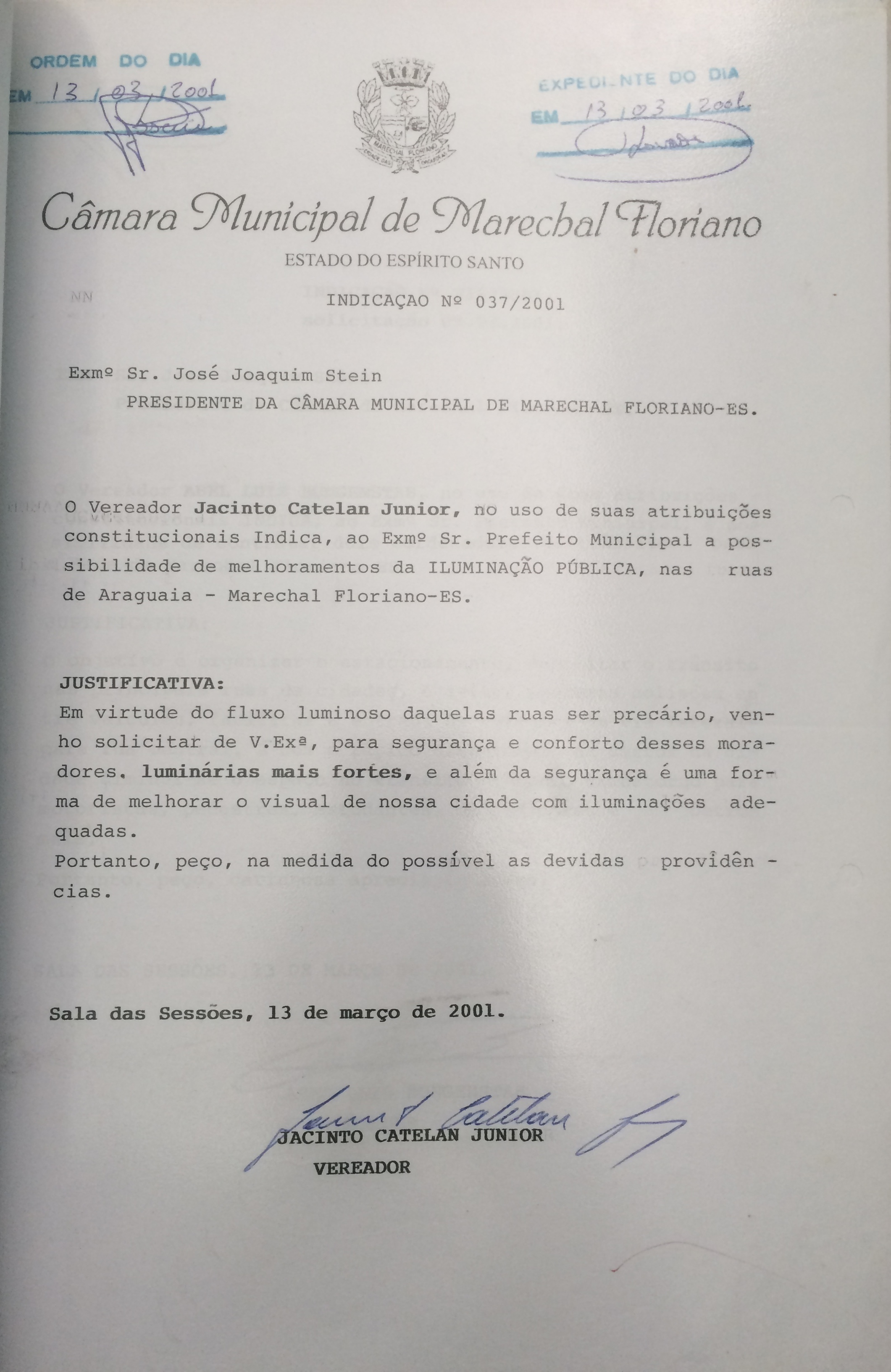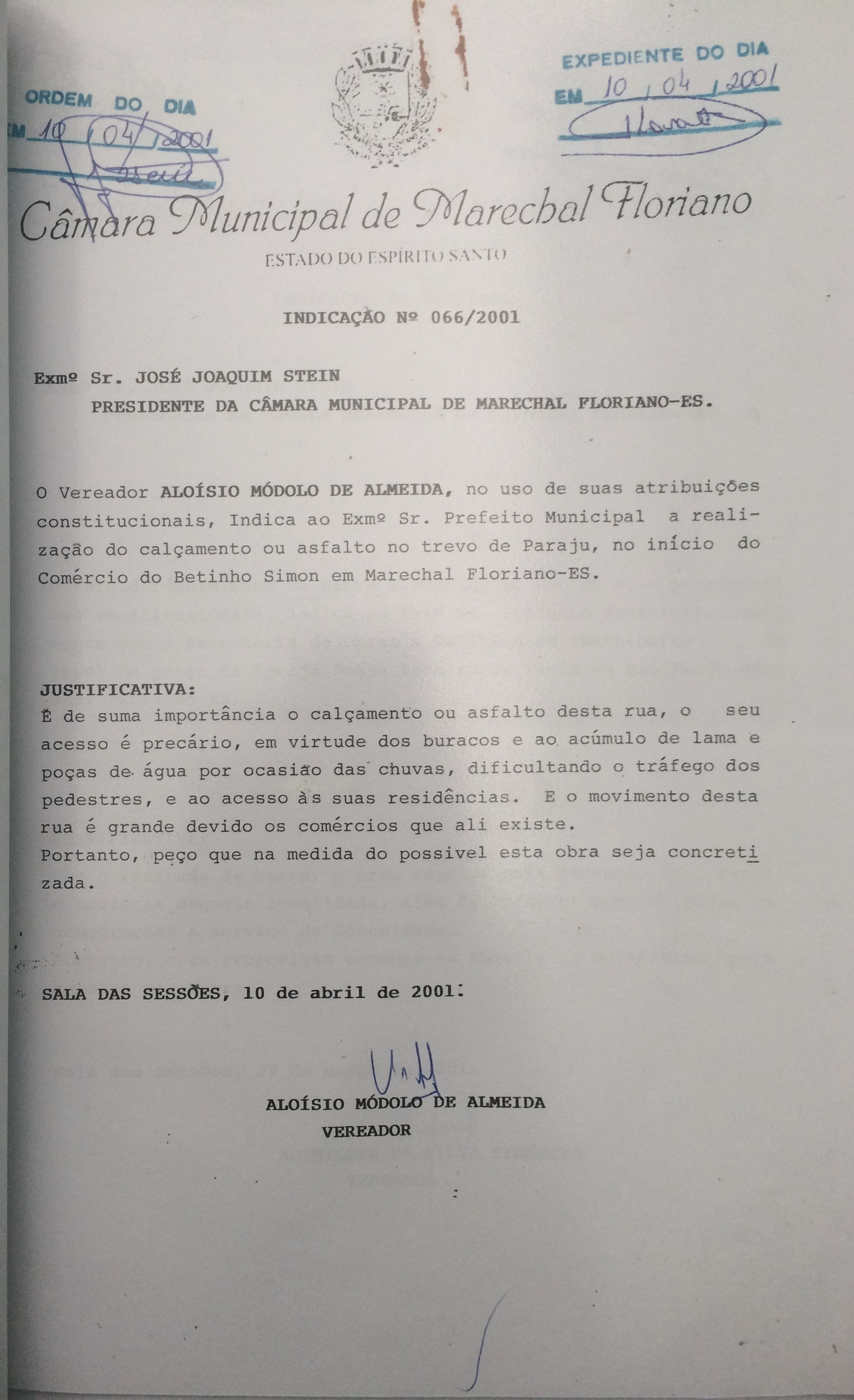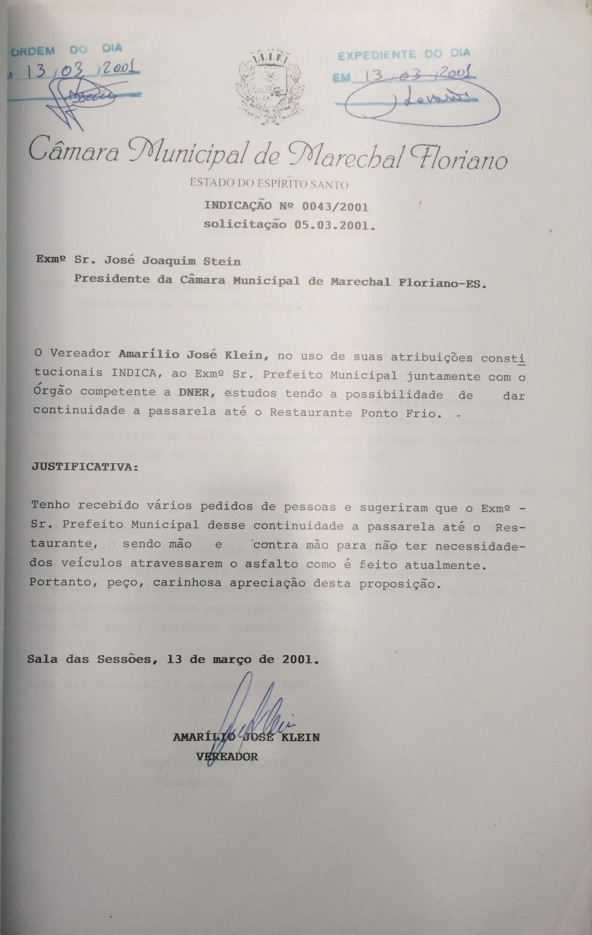 Ementa: INDICA A COLOCAÇÃO GUALDIREI, (PROTEÇÃO DE FERRO), EM ALTO MARECHAL ATÉ A ENTRADA DE MARECHAL FLORIANO-ES.