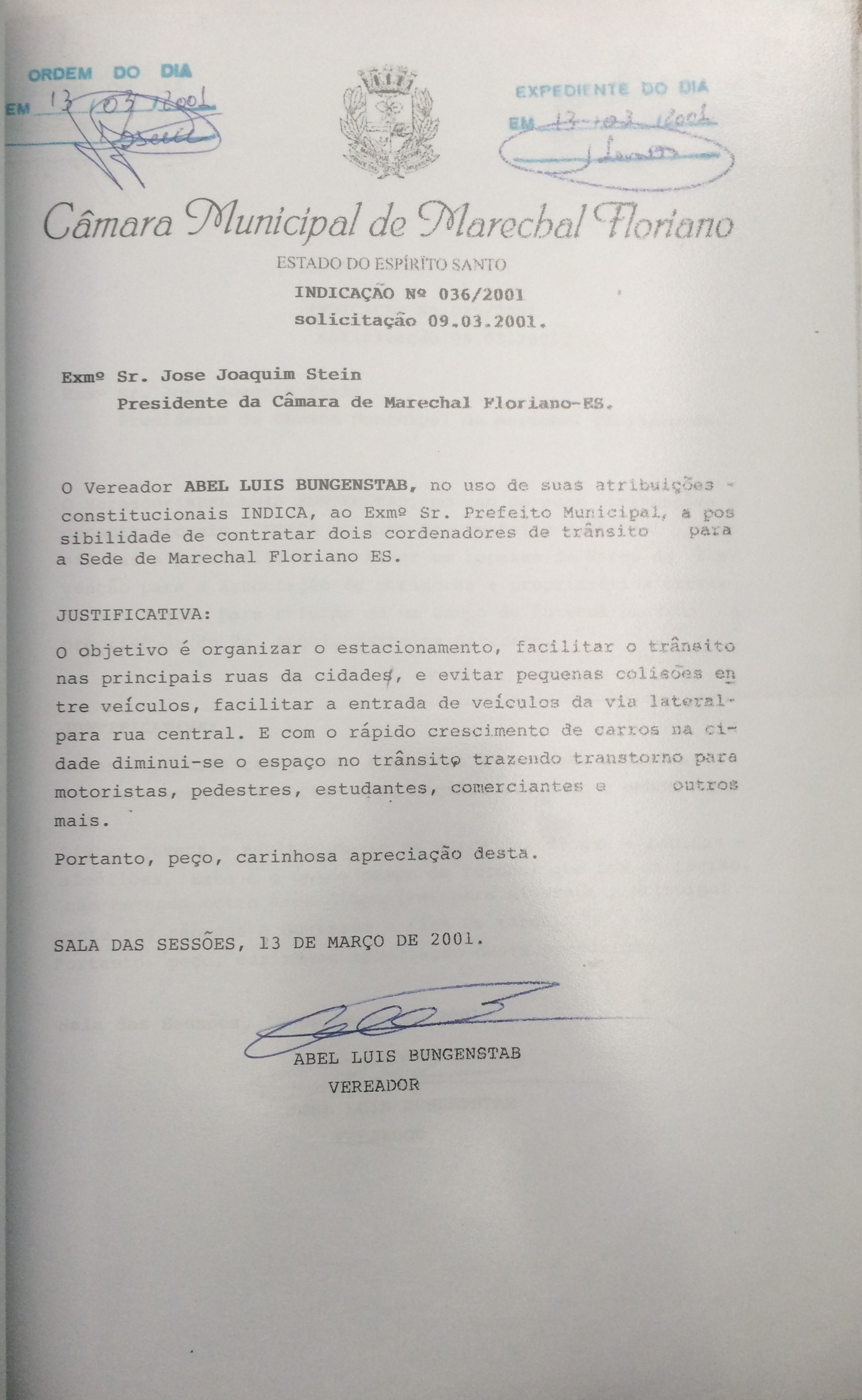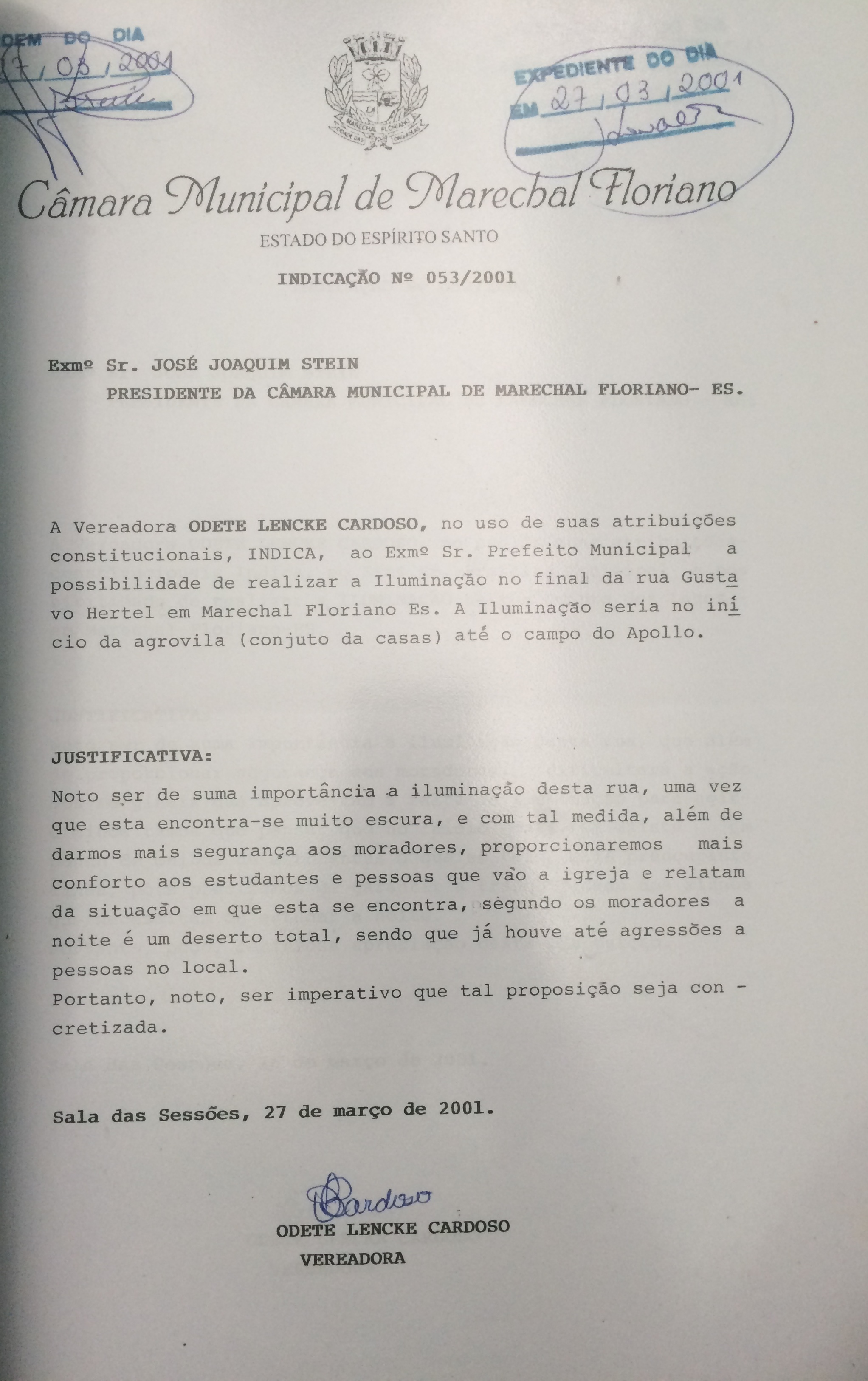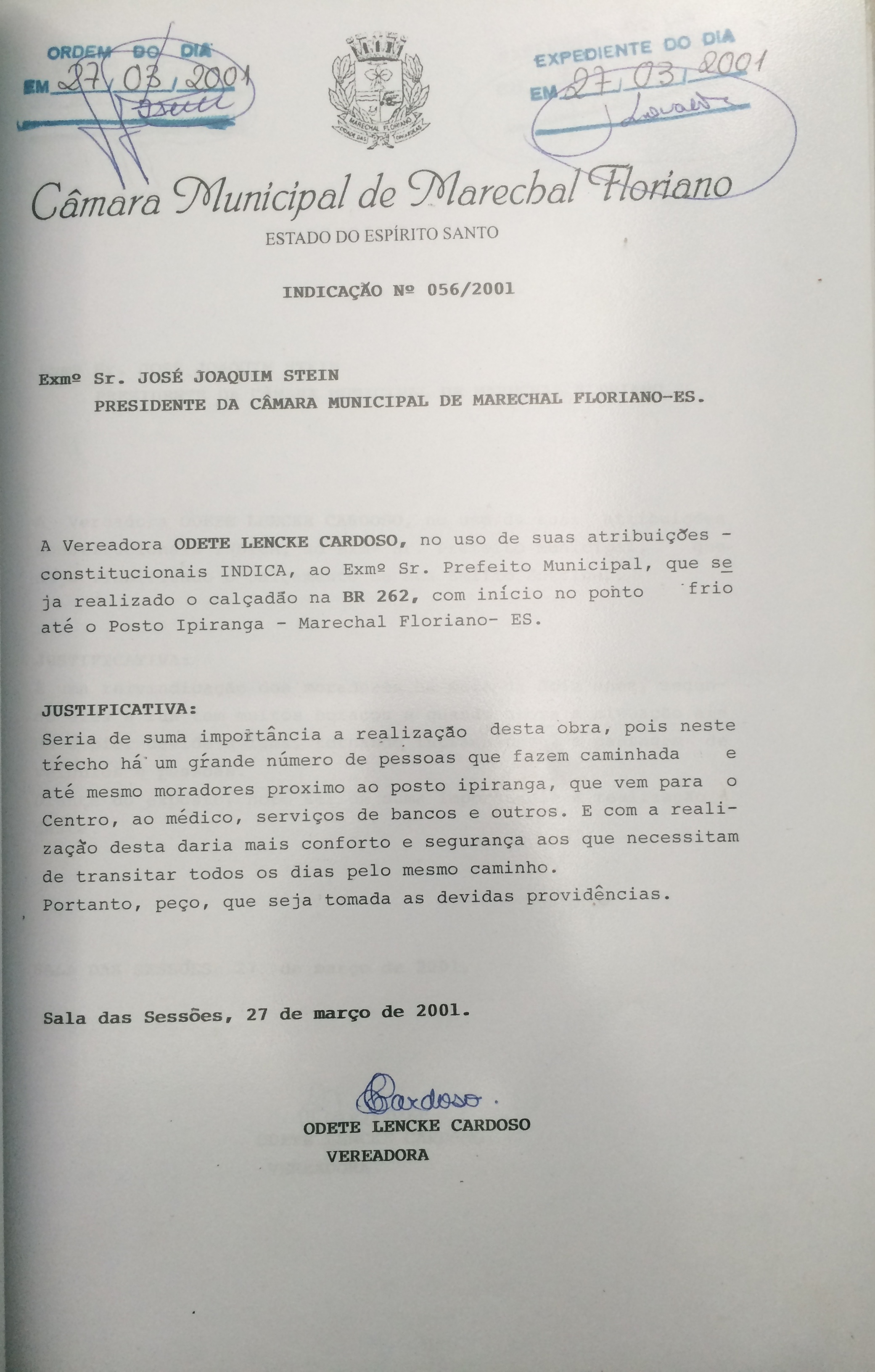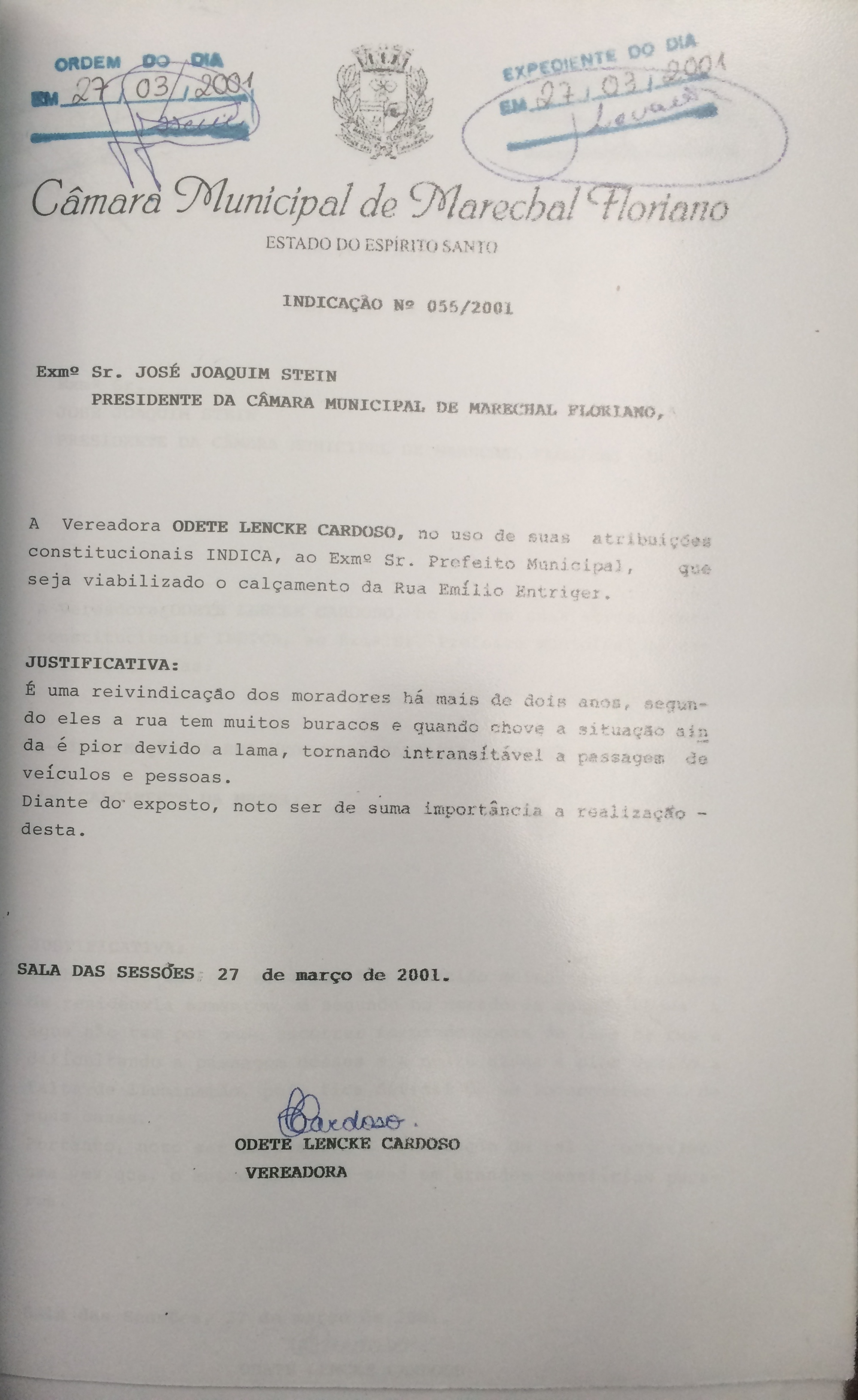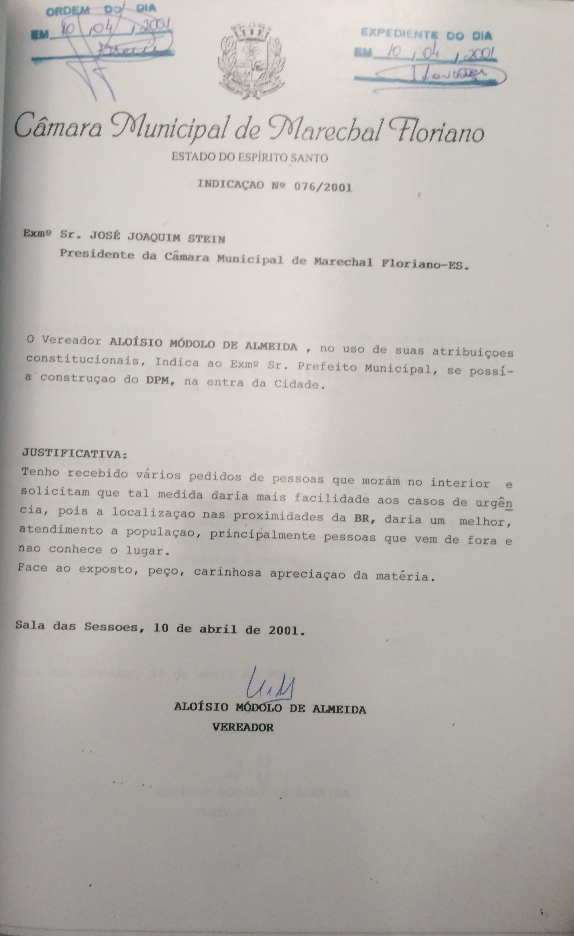 Ementa: INDICA A COLOCAÇÃO GUALDIREI, (PROTEÇÃO DE FERRO), EM ALTO MARECHAL ATÉ A ENTRADA DE MARECHAL FLORIANO-ES.