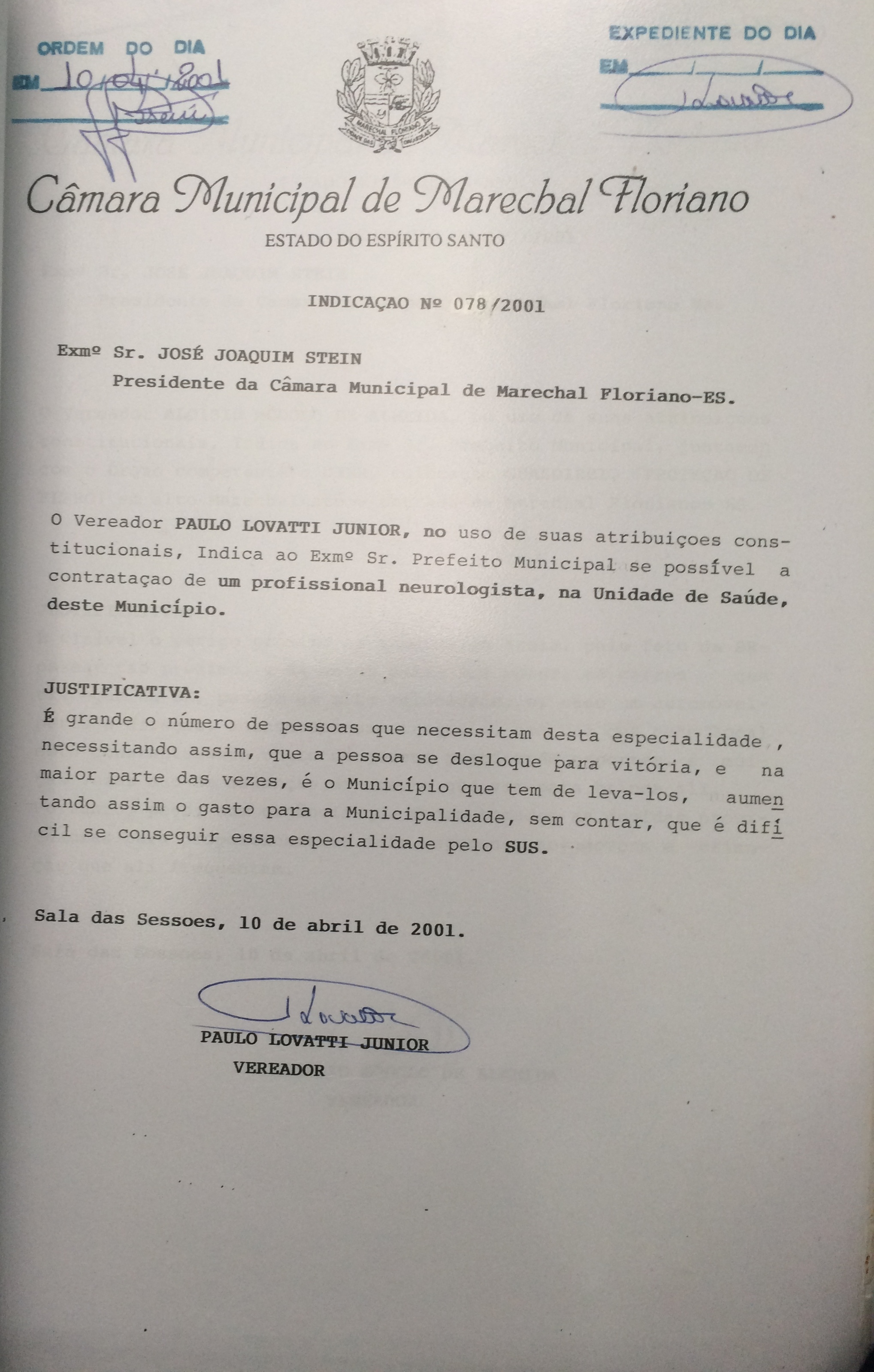 Ementa: INDICA SE POSSÍVEL A CONTRATAÇÃO DE UM PROFISSIONAL NEUROLOGISTA, NA UNIDADE DE SAÚDE, DESTE MUNICÍPIO.