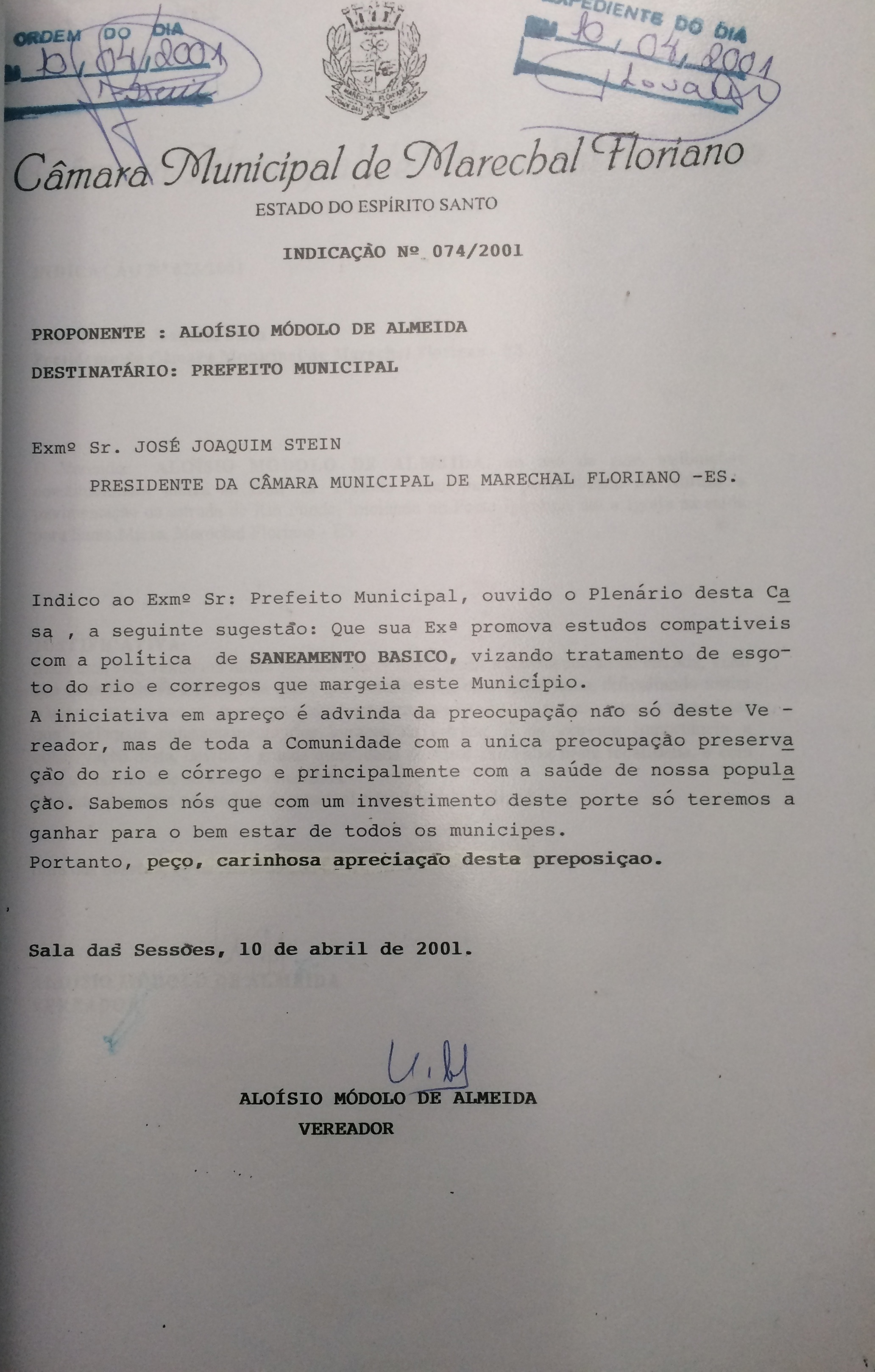 Ementa: INDICA PROMOVA ESTUDOS COMPATÍVEIS COM A POLITICA DE SANEAMENTO BÁSICO, VISANDO TRATAMENTO DE ESGOTO DO RIO E CÓRREGOS QUE MARGEIA ESTE MUNICÍPIO.