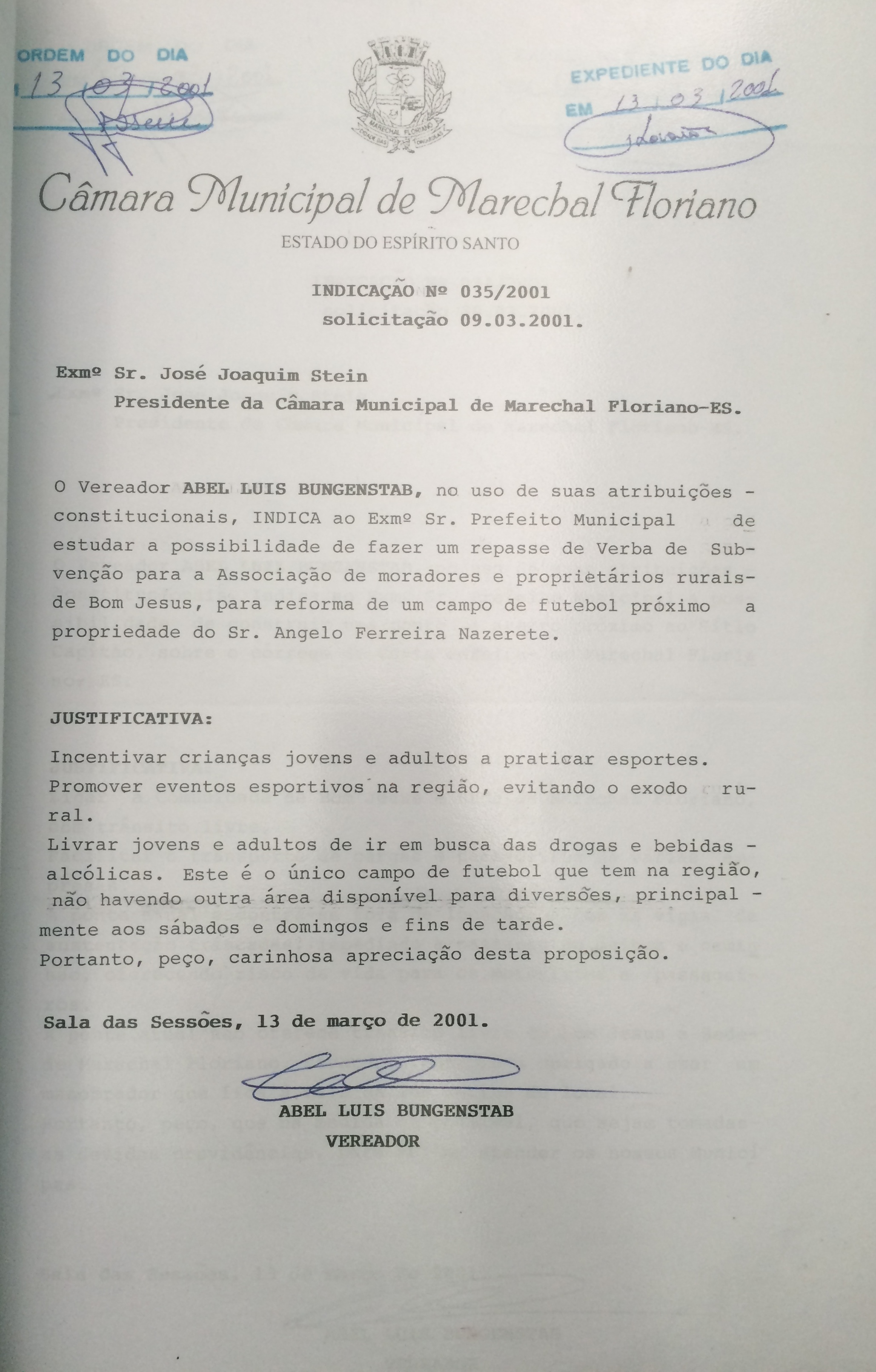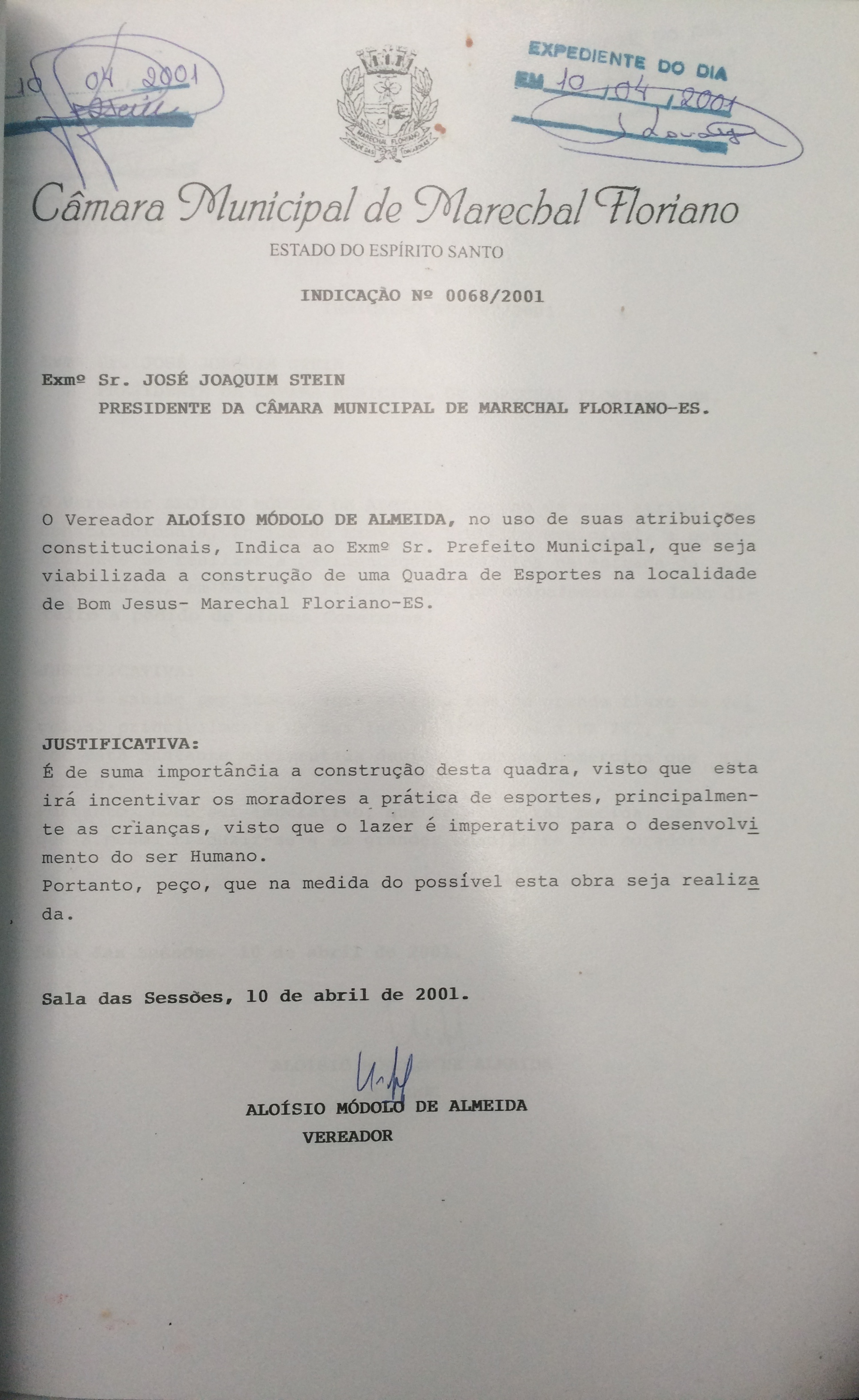 Ementa: INDICA QUE SEJA VIABILIZADA A CONSTRUÇÃO DE UM QUADRA DE ESPORTES NA LOCALIDADE DE BOM JESUS - MARECHAL FLORIANO-ES.