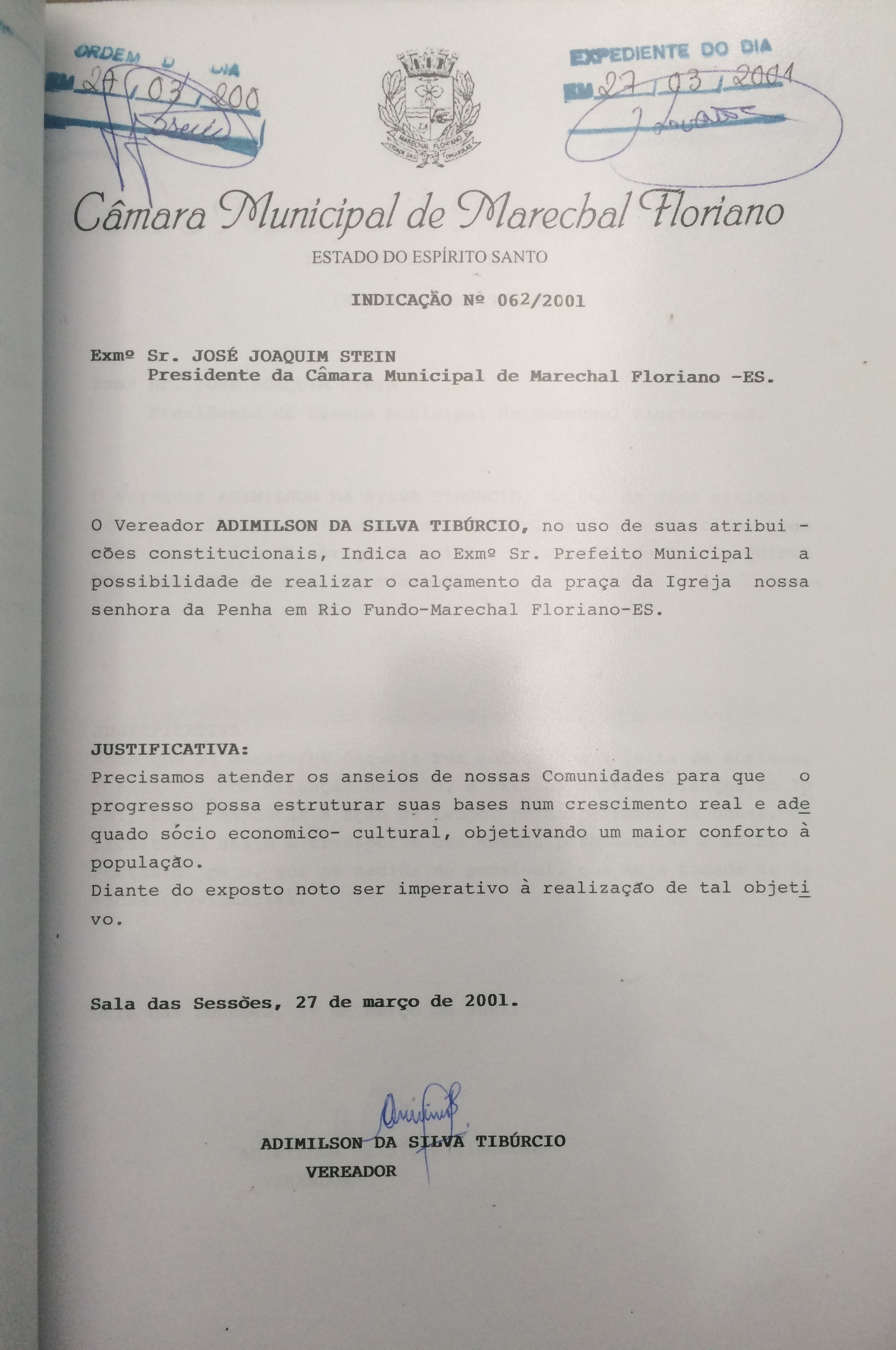 Ementa: INDICA A POSSIBILIDADE DE REALIZAR O CALÇAMENTO DA PRAÇA DA IGREJA NOSSA SENHORA DA PENHA EM RIO FUNDO - MARECHAL FLORIANO-ES.
