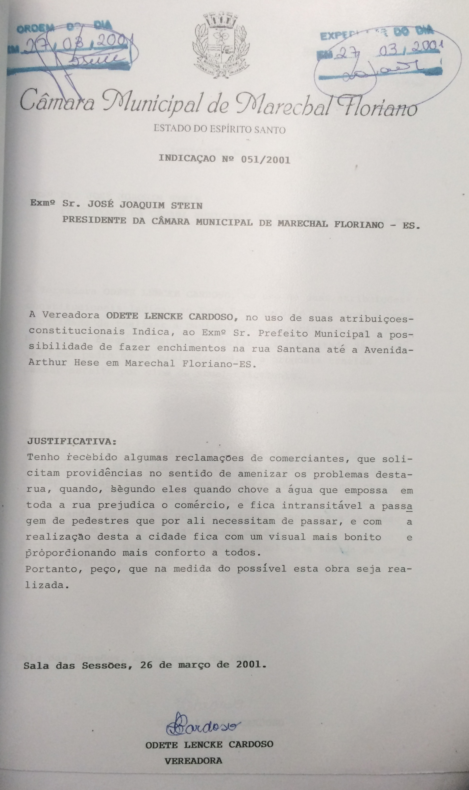 Ementa: INDICA A POSSIBILIDADE DE FAZER ENCHIMENTOS NA RUA SANTANA ATÉ A AVENIDA HESE EM MARECHAL FLORIANO-ES.