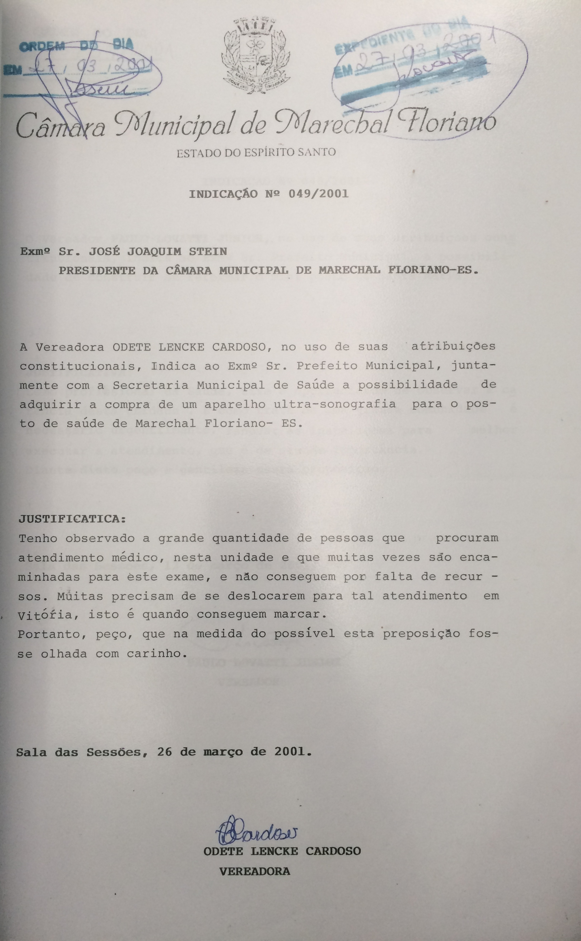 Ementa: INDICA A POSSIBILIDADE DE ADQUIRIR A COMPRA DE UM APARELHO DE ULTRA-SONOGRAFIA PARA O POSTO DE SAÚDE DE MARECHAL FLORIANO-ES.