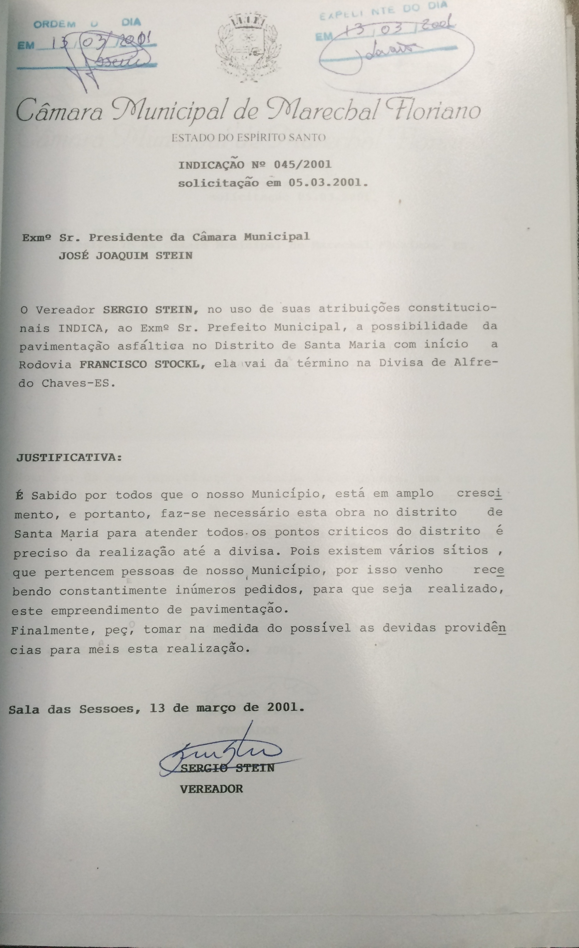 Ementa: INDICA A POSSIBILIDADE A PAVIMENTAÇÃO ASFÁLTICA NO DISTRITO DE SANTA MARIA COM INCIO A RODOVIA FRANCISCO STOCKL, ELA VAI DA TÉRMINO NA DIVISA DE ALFREDO CHAVES.