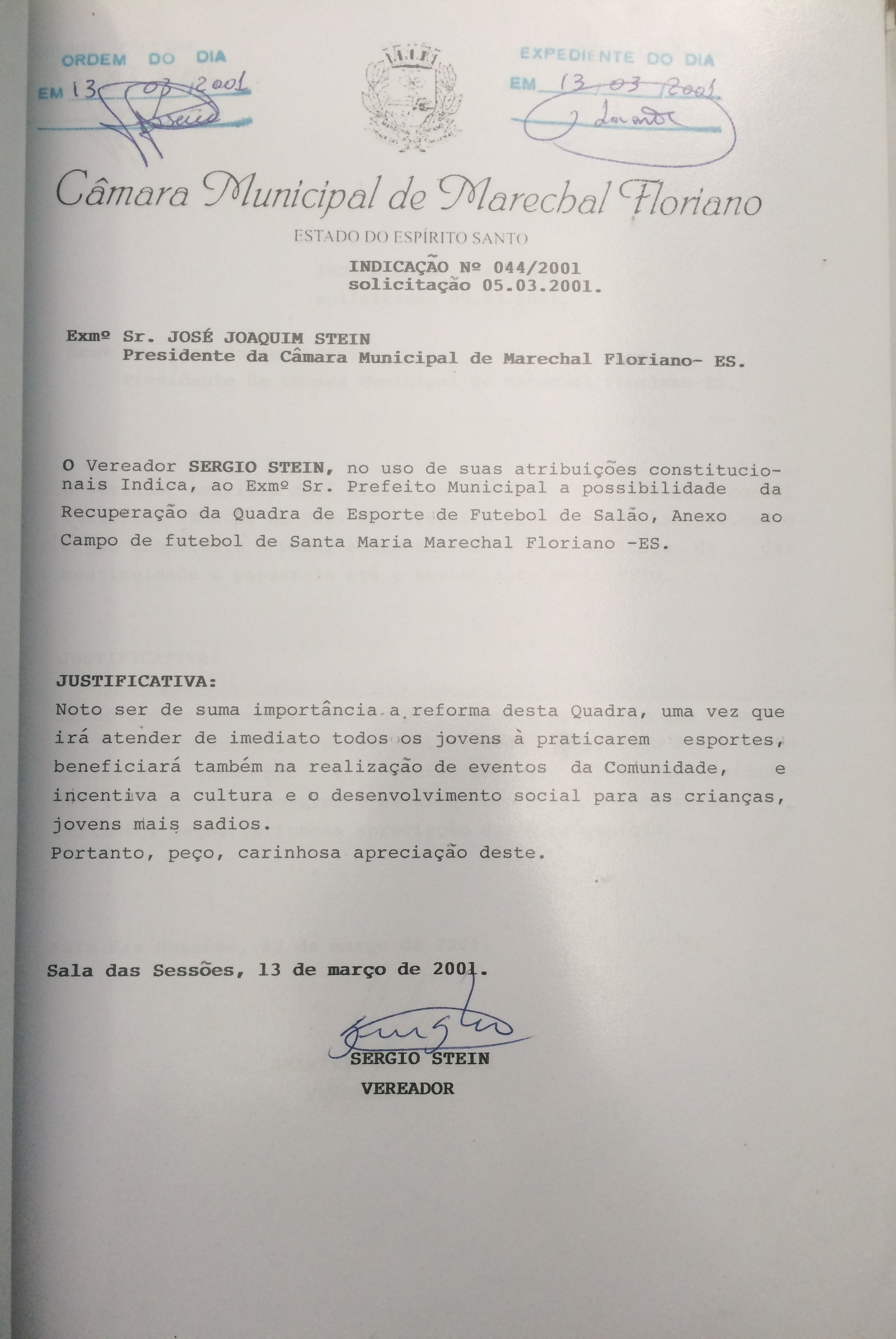 Ementa: INDICA A POSSIBILIDADE DA RECUPERAÇÃO DA QUADRA DE ESPORTES DE FUTEBOL DE SALÃO, ANEXO AO CAMPO DE FUTEBOL DA SANTA MARIA MARECHAL FLORIANO-ES.