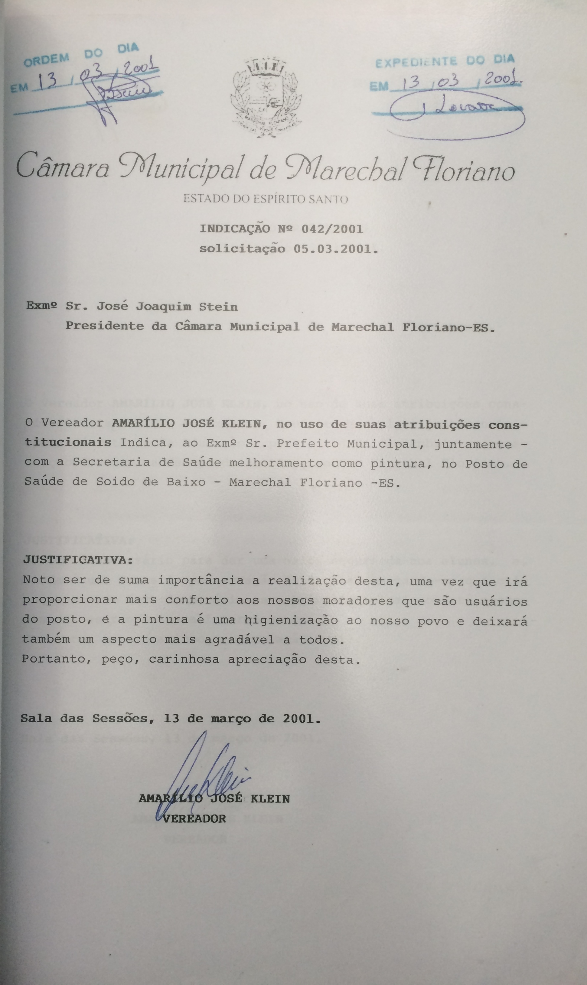 Ementa: INDICA MELHORAMENTO COMO PINTURA, NO POSTO DE SAÚDE DE SOÍDO DE BAIXO- MARECHAL FLORIANO-ES.