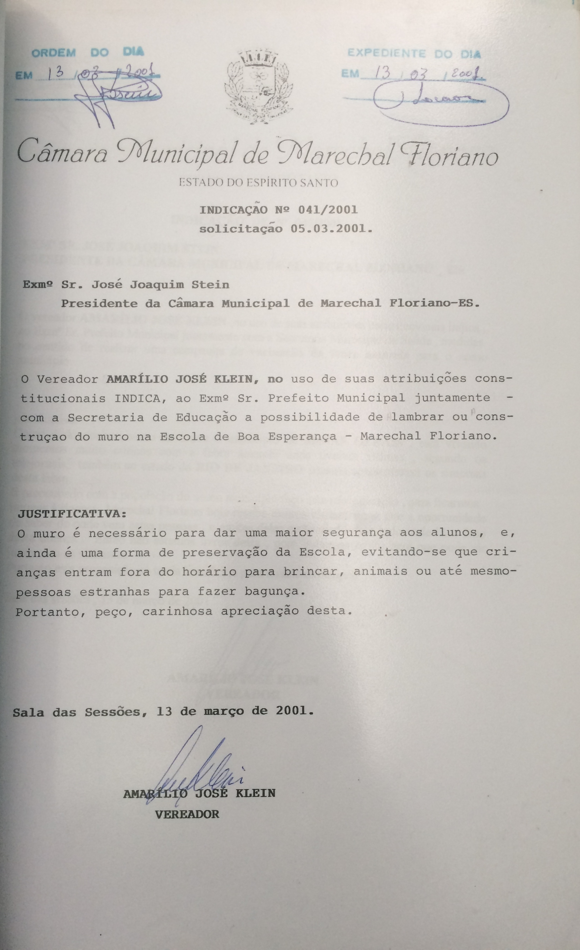 Ementa: INDICA A POSSIBILIDADE DE LAMBRAR OU CONSTRUÇÃO DO MURO NA ESCOLA DE BOA ESPERANÇA - MARECHAL FLORIANO.