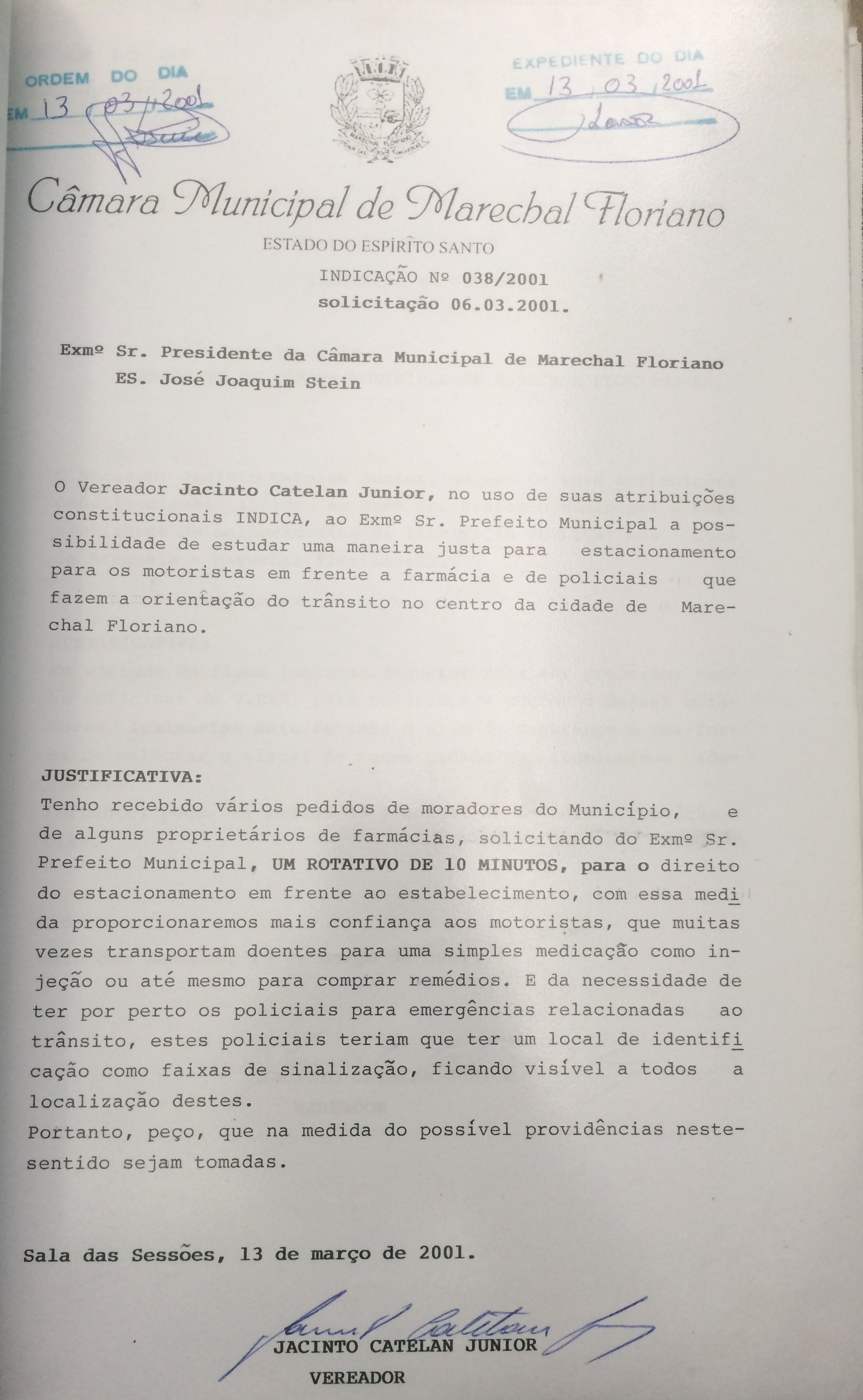 Ementa: INDICA A POSSIBILIDADE DE ESTUDAR UMA MANEIRA JUSTA PARA ESTACIONAMENTO PARA OS MOTORISTAS EM FRENTE A FARMÁCIA E DE POLICIAIS QUE FAZEM ORIENTAÇÃO DO TRÂNSITO NO CENTRO DA CIDADE DE MARECHAL FLORIANO.