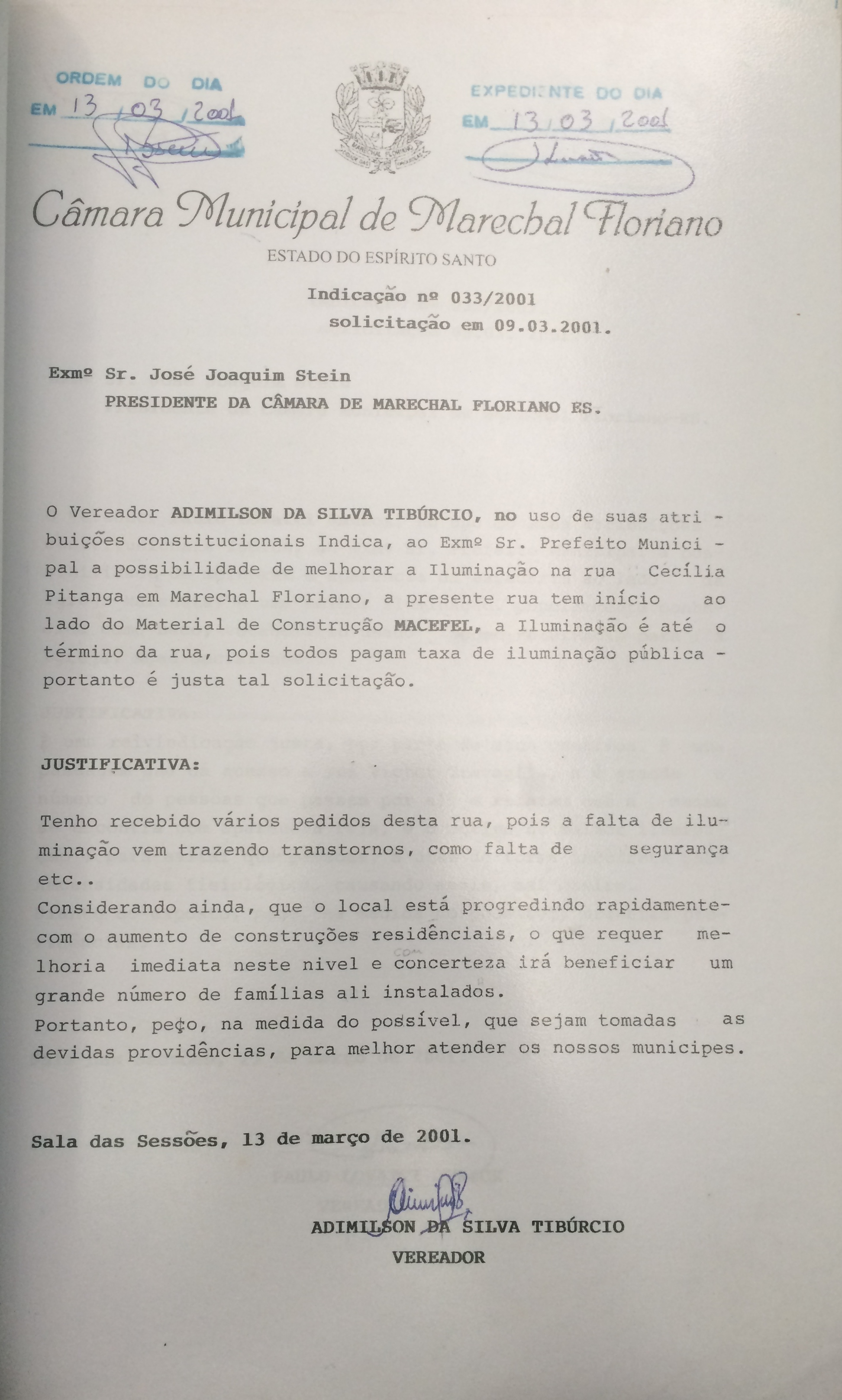 Ementa: INDICA A POSSIBILIDADE DE MELHORAR A ILUMINAÇÃO NA RUA CECILIA PITANGA EM MARECHAL FLORIANO, A PRESENTE RUA TEM INICIO AO LADO DO MATERIAL DE CONSTRUÇÃO MAECEFEL, A ILUMINAÇÃO PÚBLICA - PORTANTO É JUSTA TAL SOLICITAÇÃO.