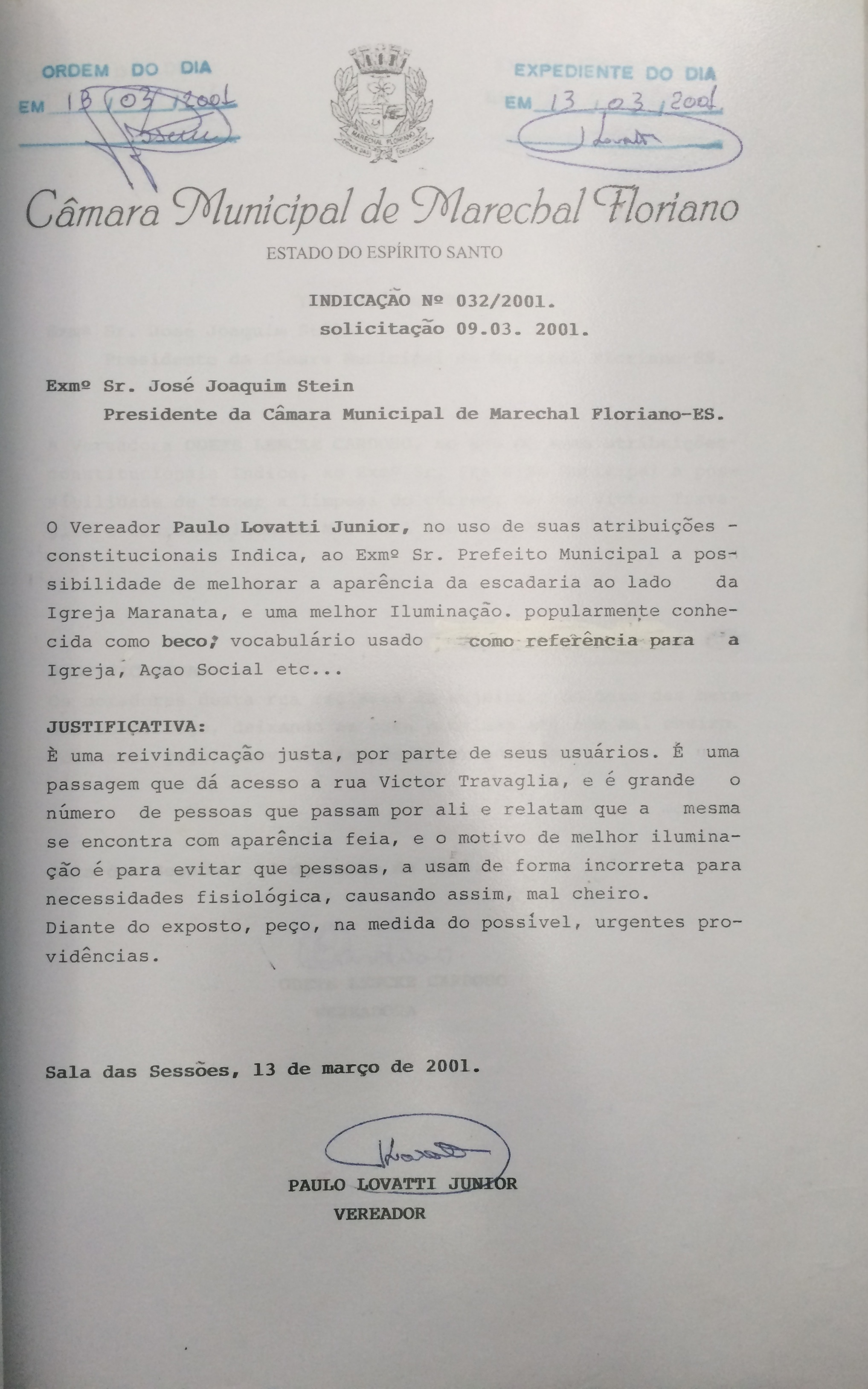 Ementa: INDICA A POSSIBILIDADE DE MELHORAR A APARÊNCIA DA ESCADARIA AO LADO DA IGREJA MARANATA, E UMA MELHOR ILUMINAÇÃO POPULARMENTE CONHECIDA COMO BECO;
