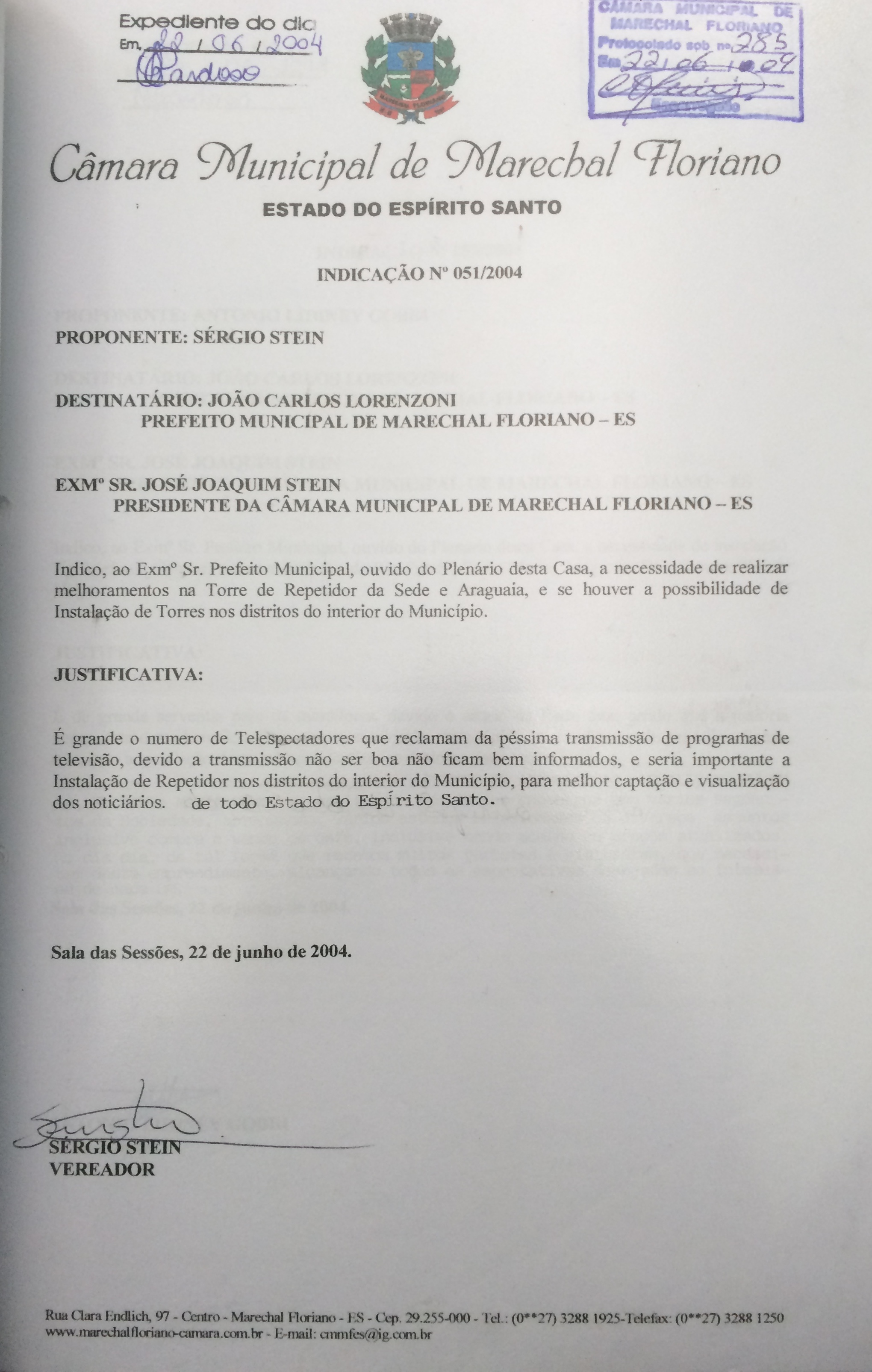 Ementa: INDICA A NECESSIDADE DE REALIZAR MELHORAMENTOS NA TORRE DE REPETIDOR DA SEDE E ARAGUAIA E SE HOUVER A POSSIBILIDADE DE INSTALAÇÃO DE TORRES NOS DISTRITOS DO INTERIOR DO MUNICÍPIO.