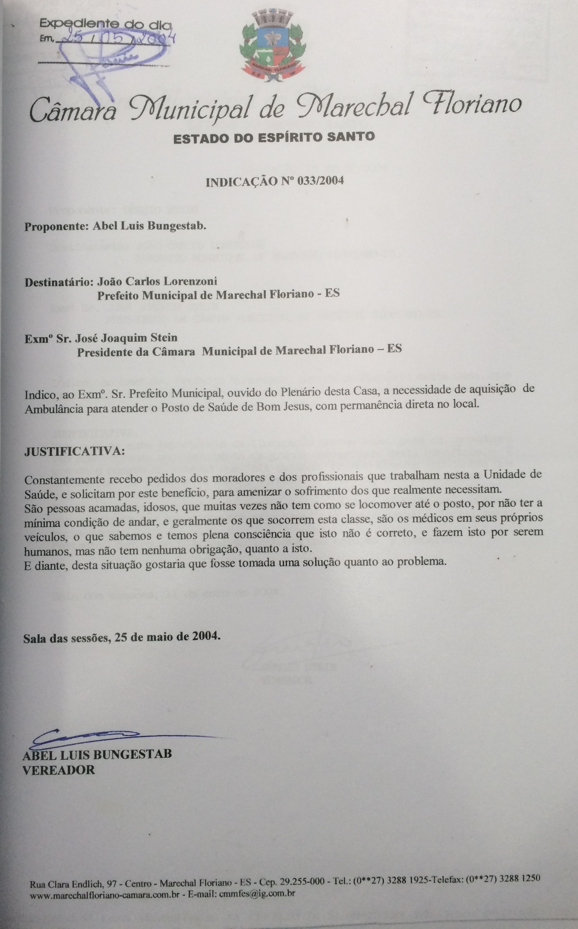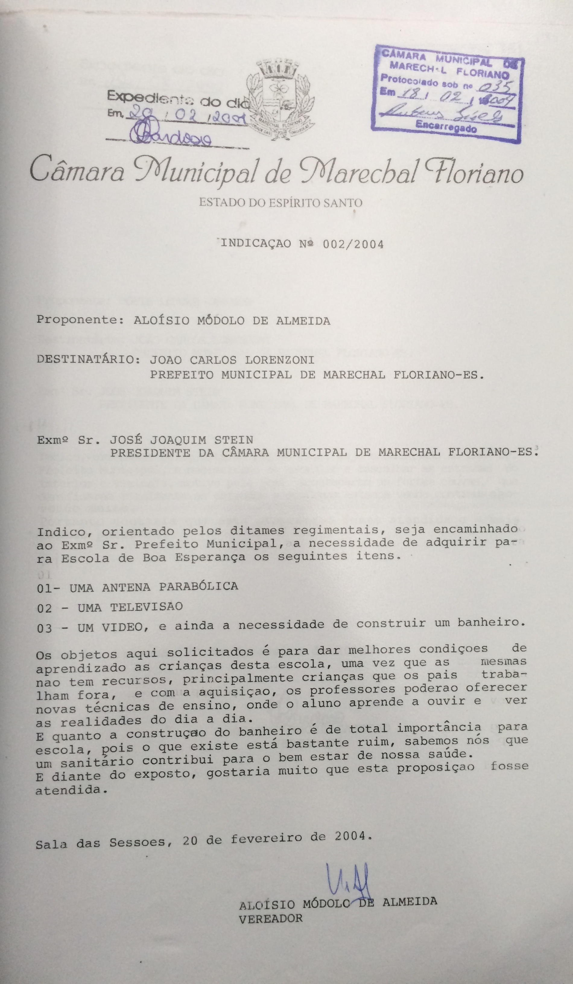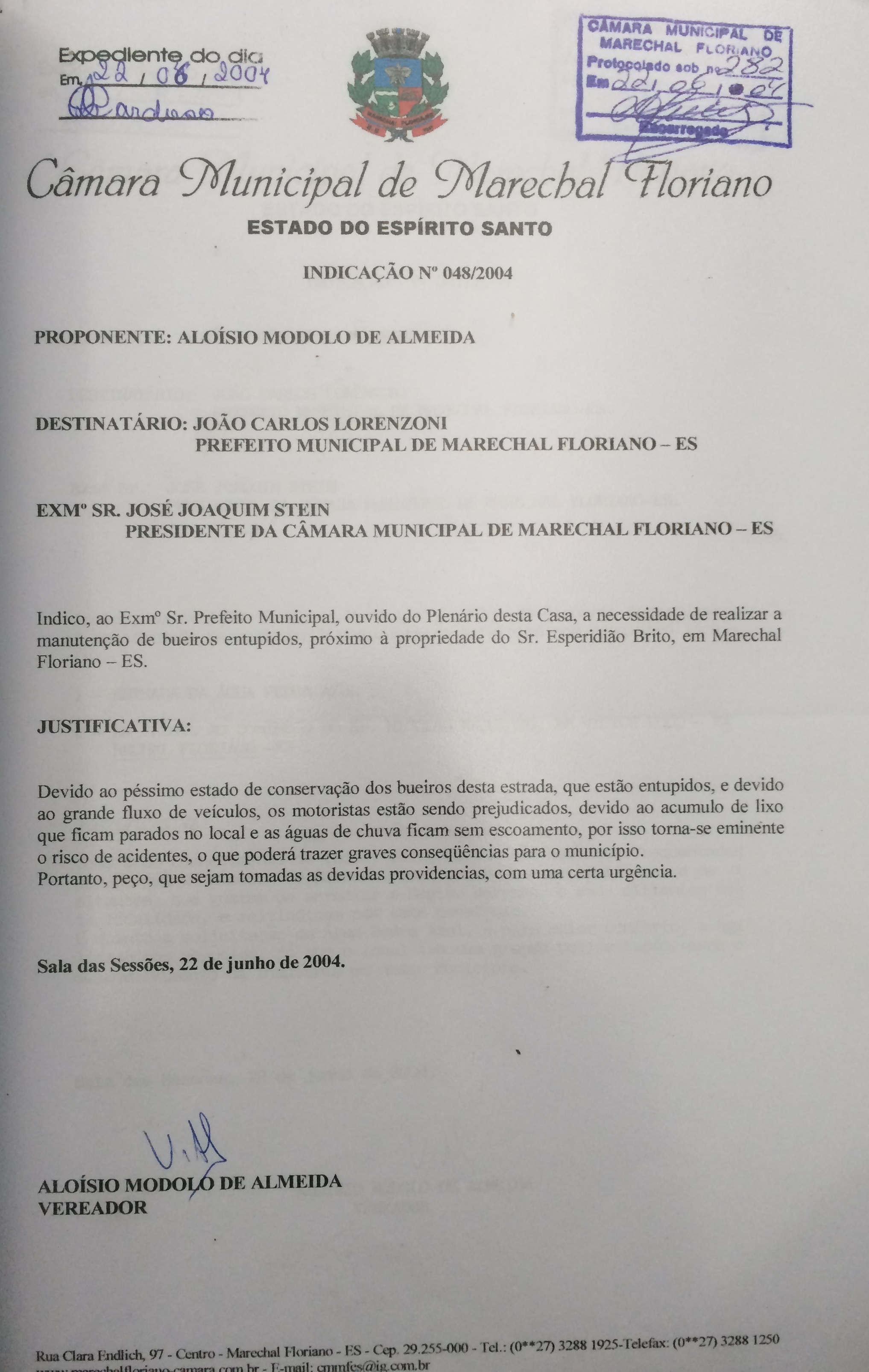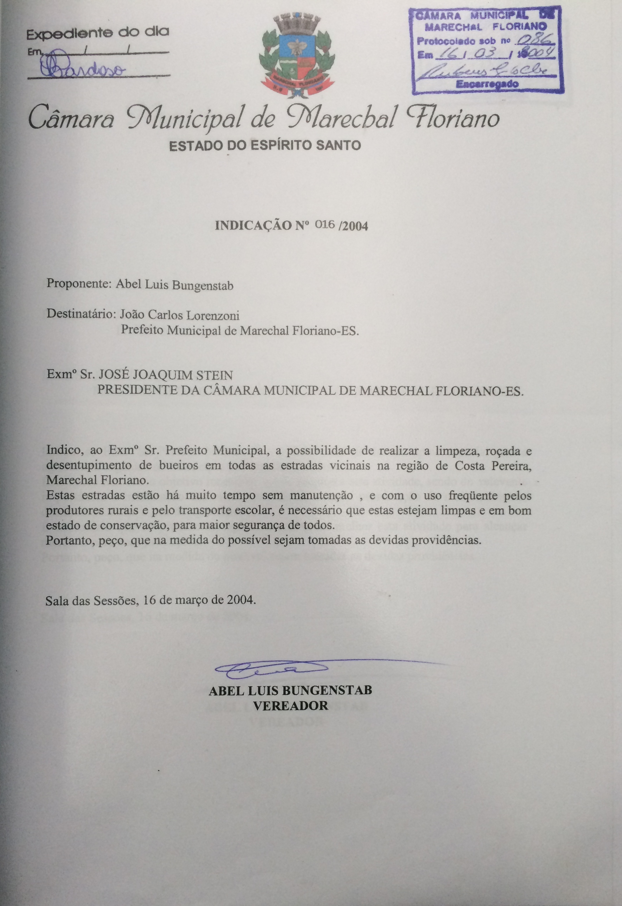Ementa: INDICA QUE SEJA CONSTRUÍDO ABRIGO DE ÔNIBUS, EM FRENTE A IGREJA LUTERANA DE BOA ESPERANÇA MARECHAL FLORIANO-ES.
