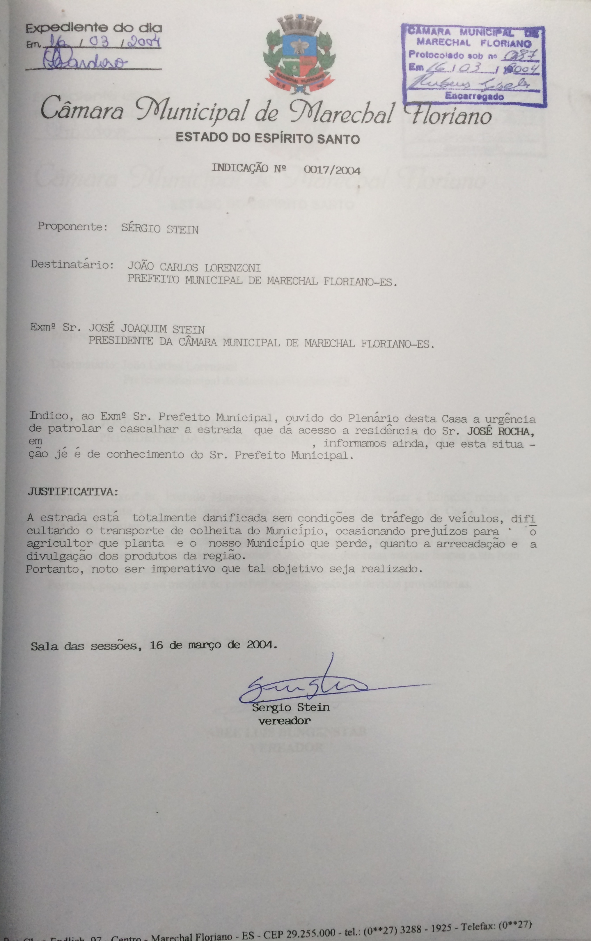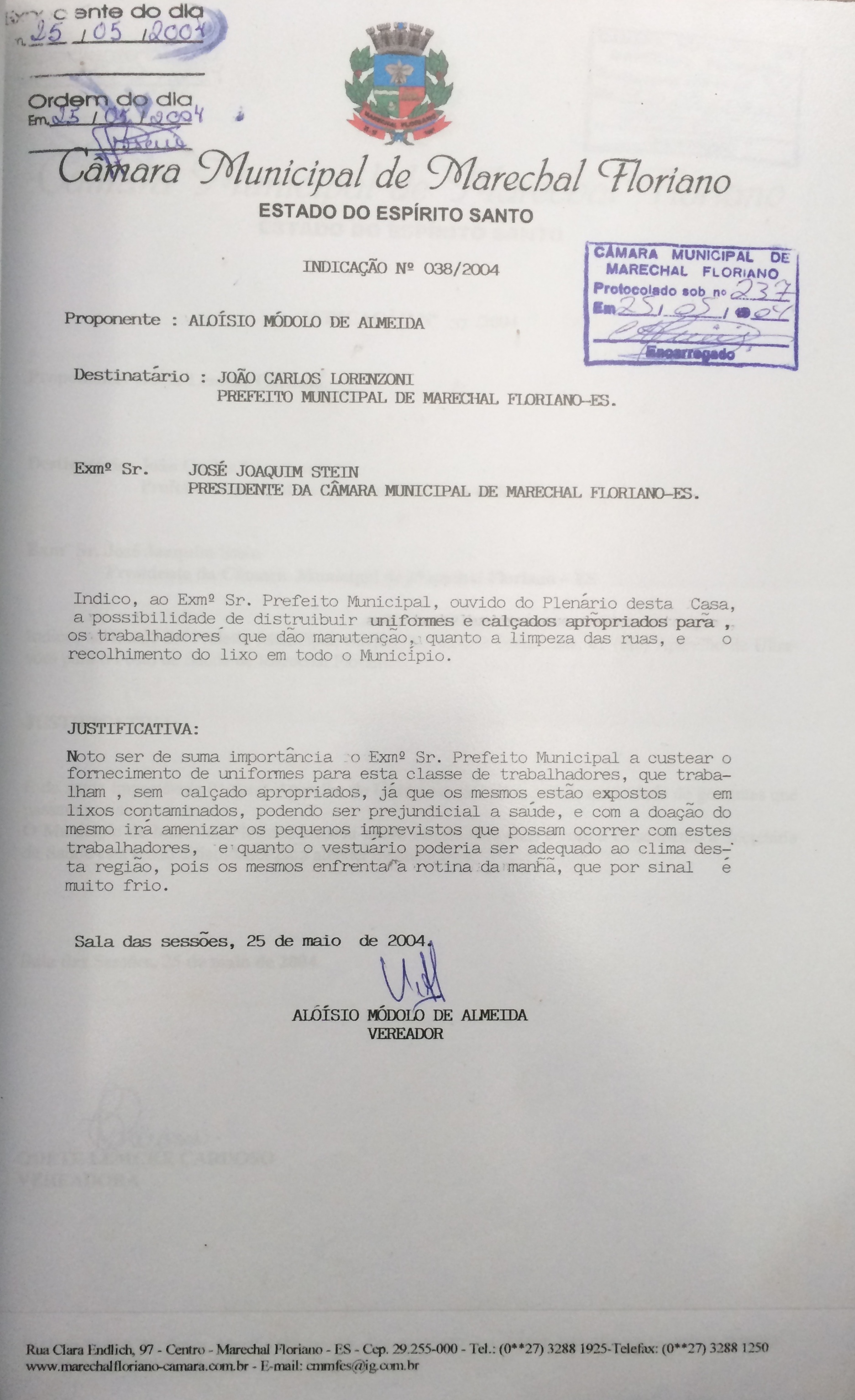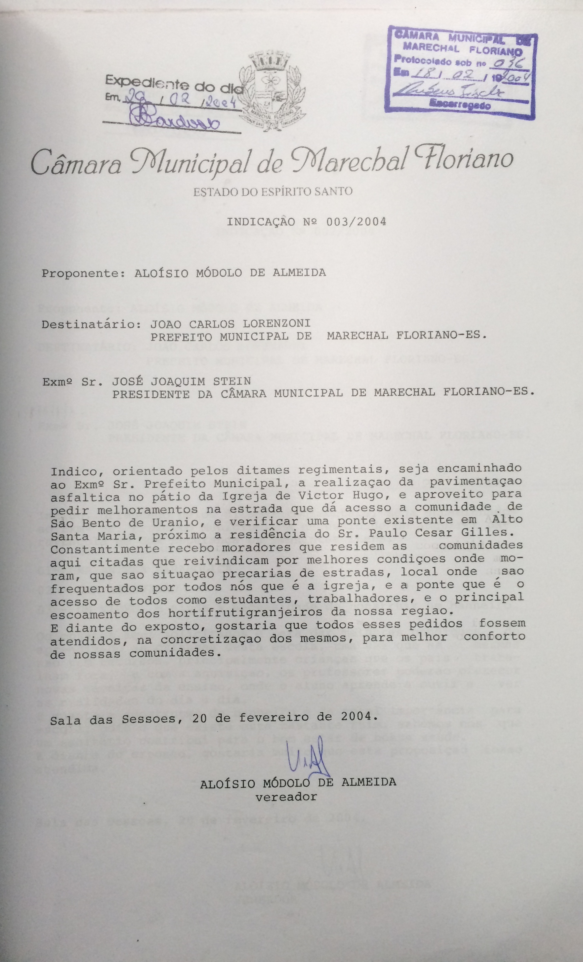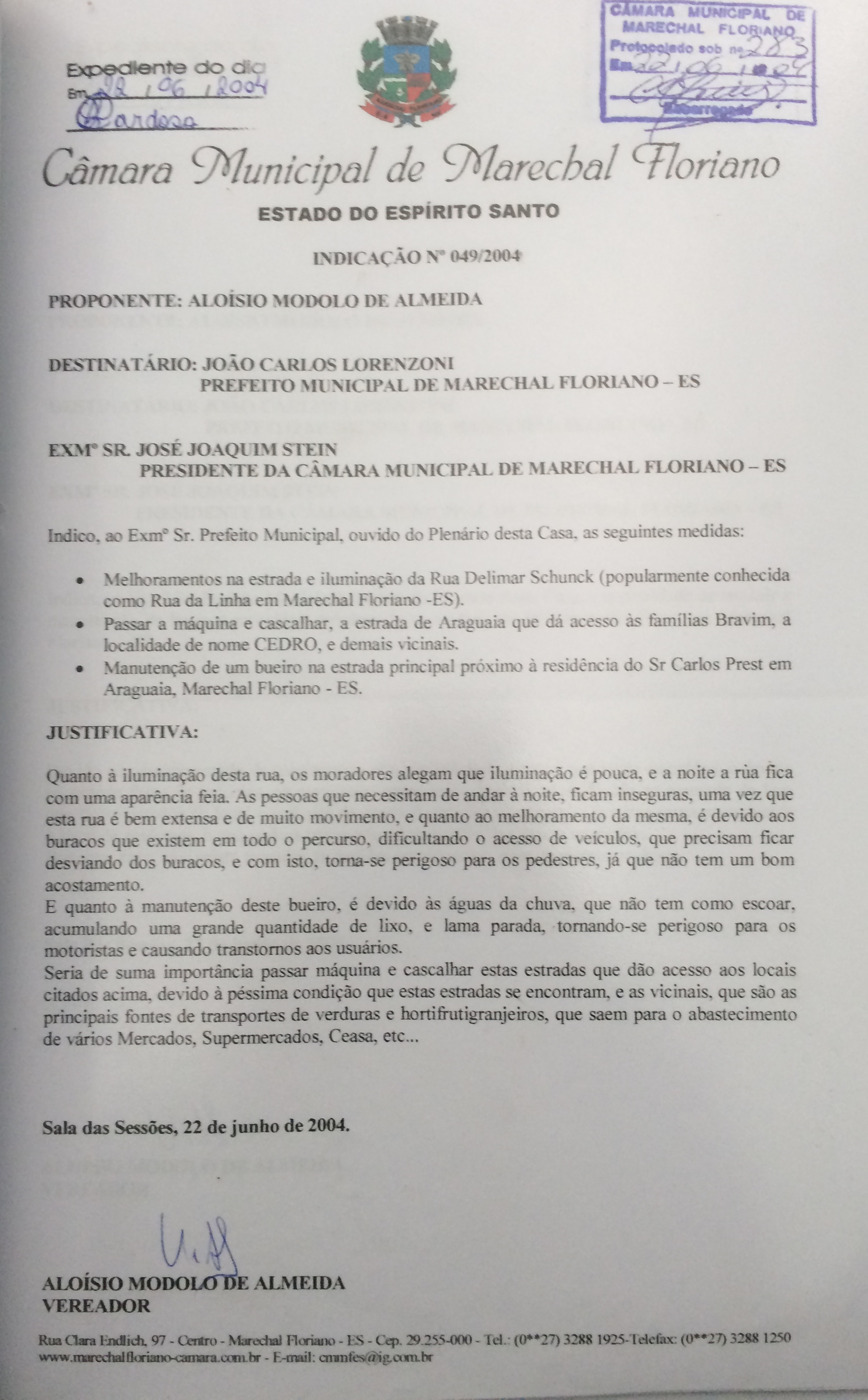 Ementa: INDICA QUE SEJA CONSTRUÍDO ABRIGO DE ÔNIBUS, EM FRENTE A IGREJA LUTERANA DE BOA ESPERANÇA MARECHAL FLORIANO-ES.