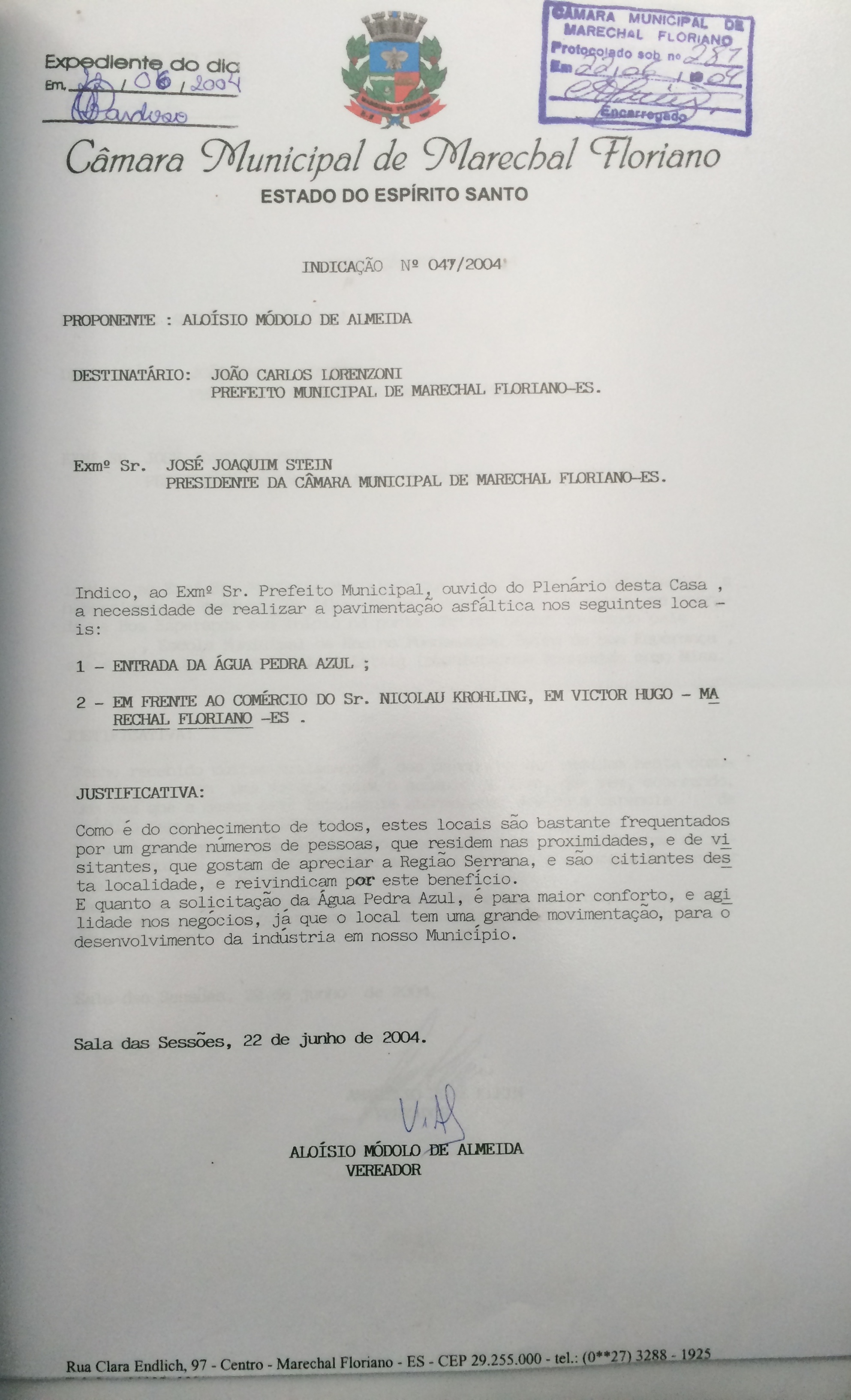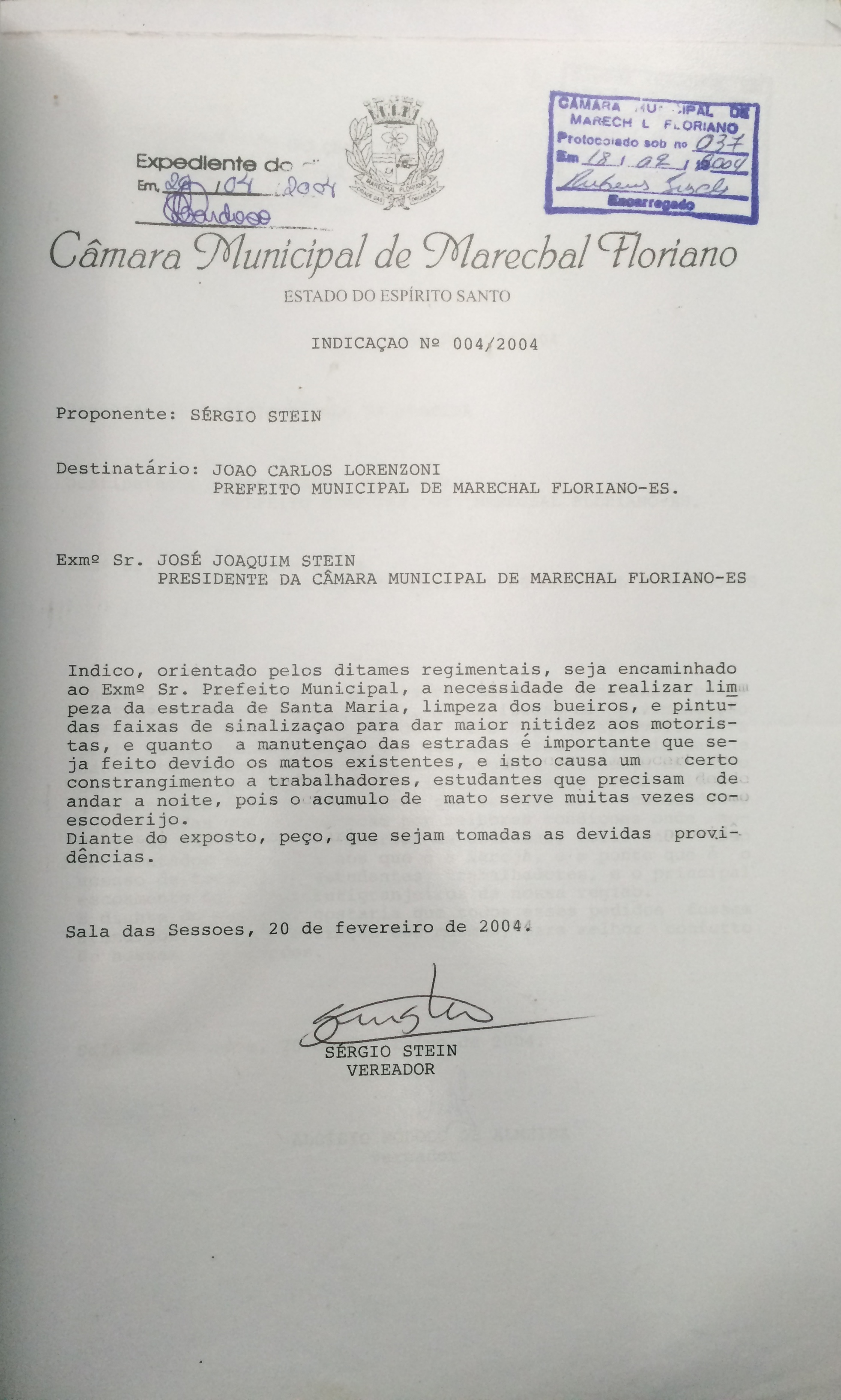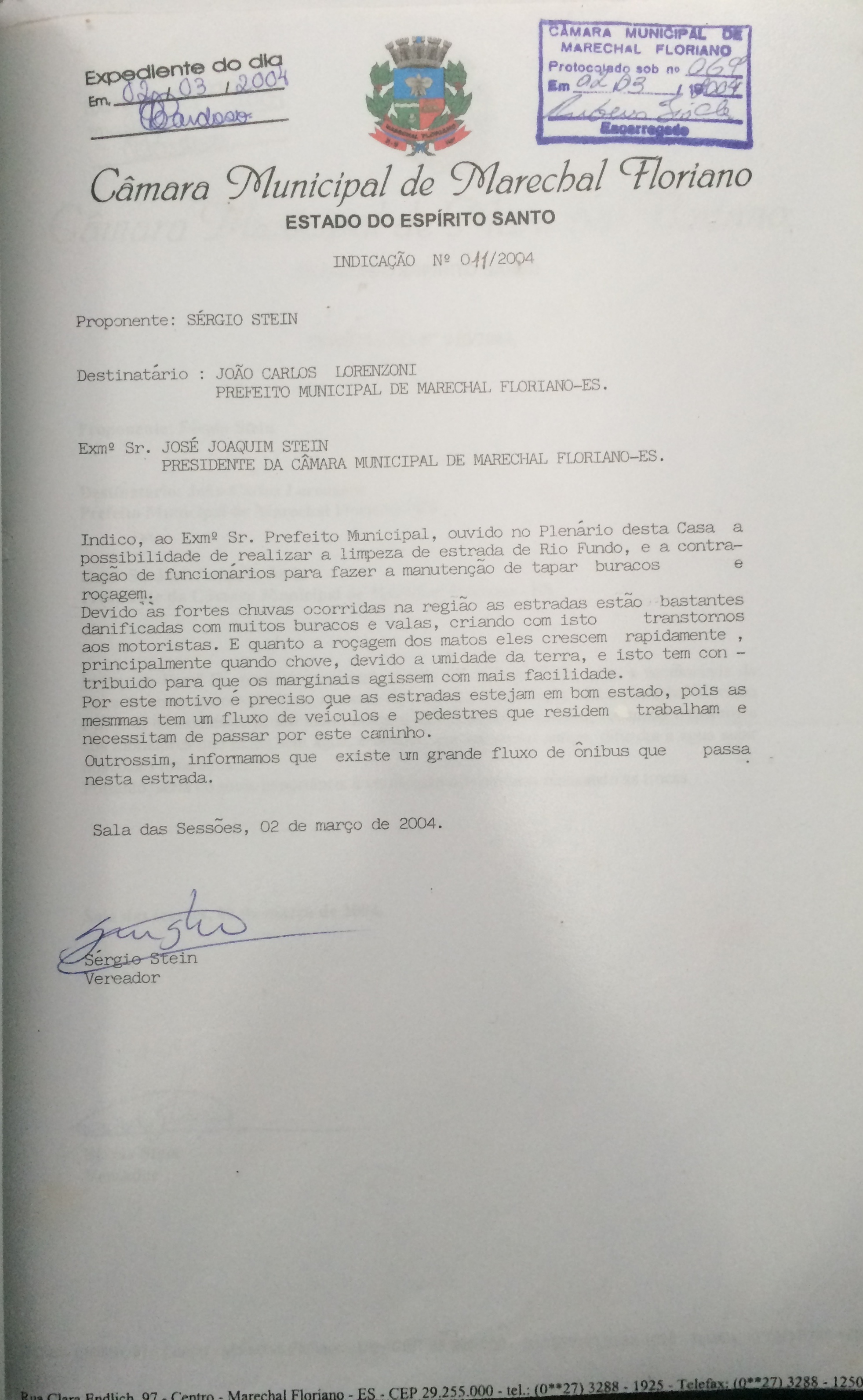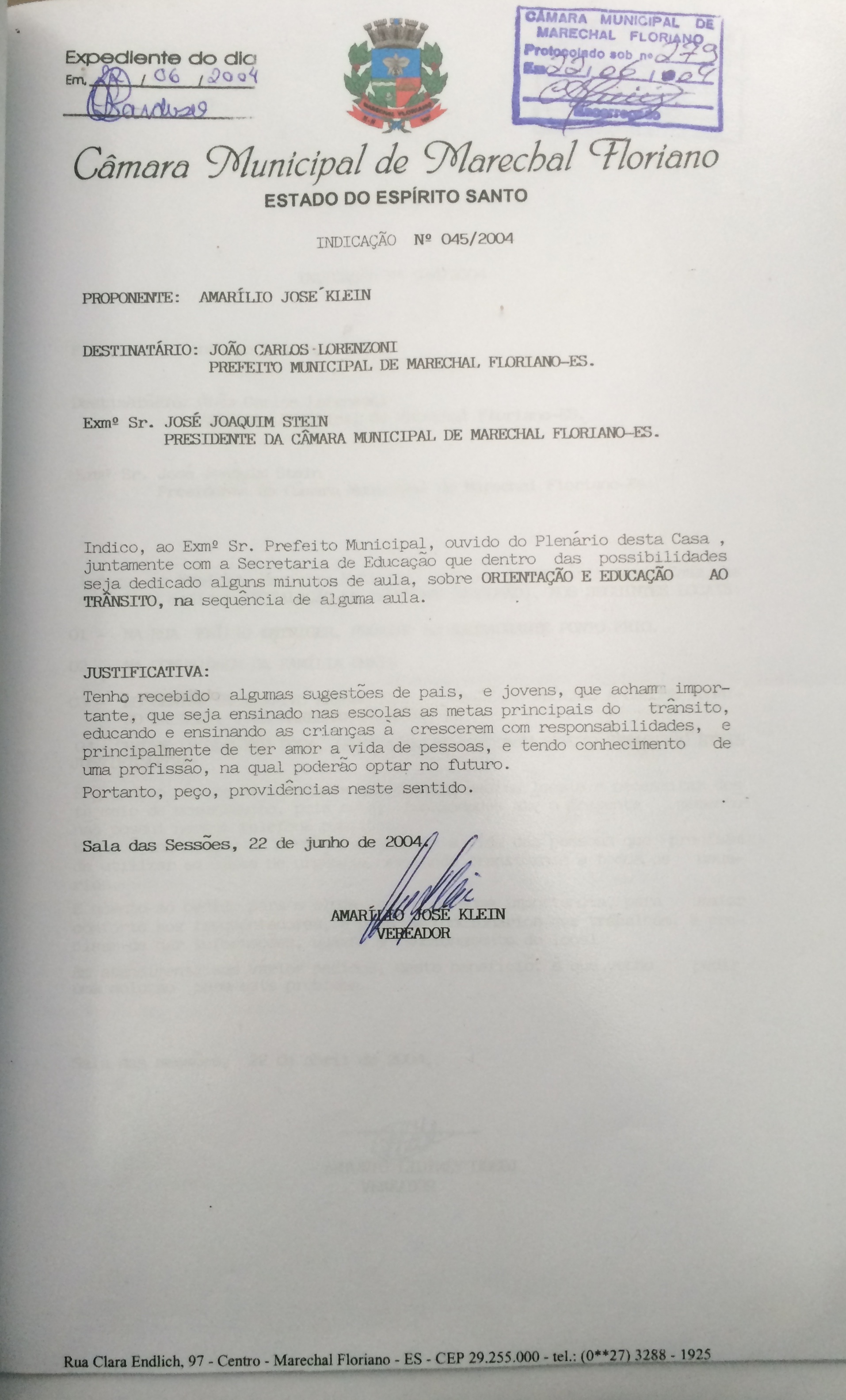 Ementa: INDICA QUE SEJA CONSTRUÍDO ABRIGO DE ÔNIBUS, EM FRENTE A IGREJA LUTERANA DE BOA ESPERANÇA MARECHAL FLORIANO-ES.