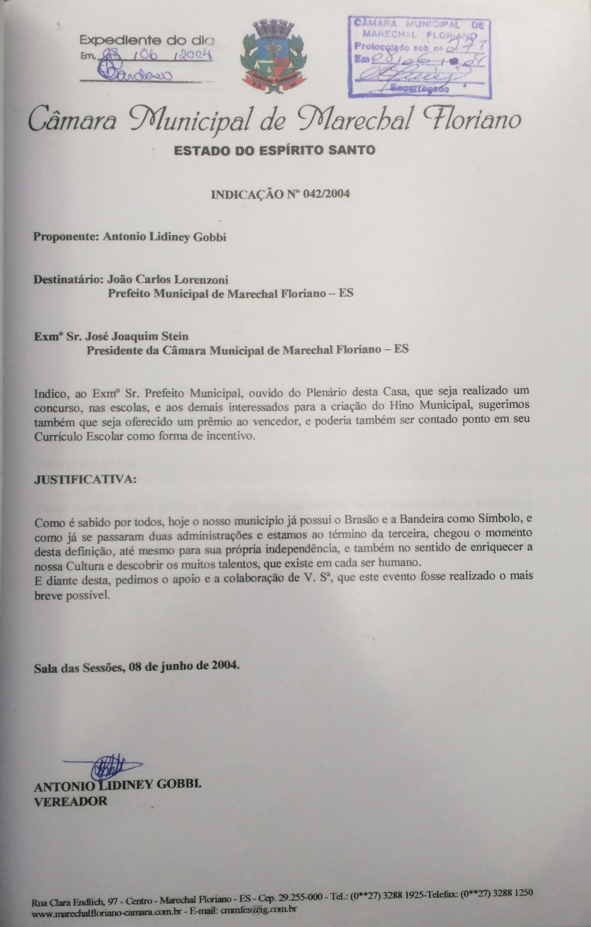 Ementa: INDICA QUE SEJA REALIZADO UM CONCURSO, NAS ESCOLAS, E AOS DEMAIS INTERESSADOS PARA A CRIAÇÃO DO HINO MUNICIPAL, SUGERIMOS TAMBÉM QUE SEJA OFERECIDO UM PRÊMIO AO VENCEDOR, E PODERIA TAMBÉM SER CONTADO PONTO EM SEU CURRÍCULO ESCOLAR COMO FORMA DE INCENTIVO.