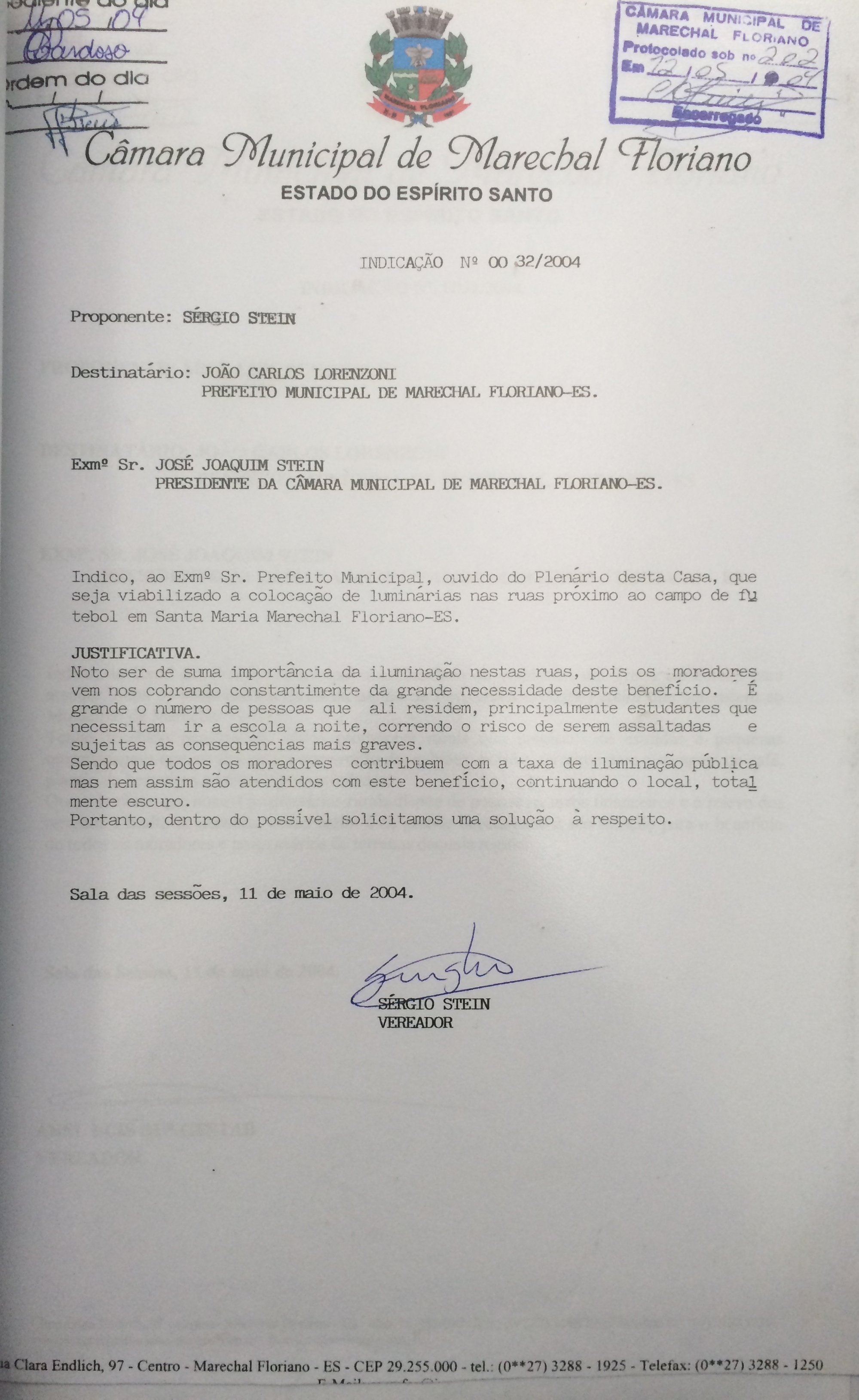 Ementa: INDICA QUE SEJA VIABILIZADO A COLOCAÇÃO DE LUMINÁRIAS NAS RUAS PRÓXIMO AO CAMPO DE FUTEBOL EM SANTA MARIA MARECHAL FLORIANO-ES.