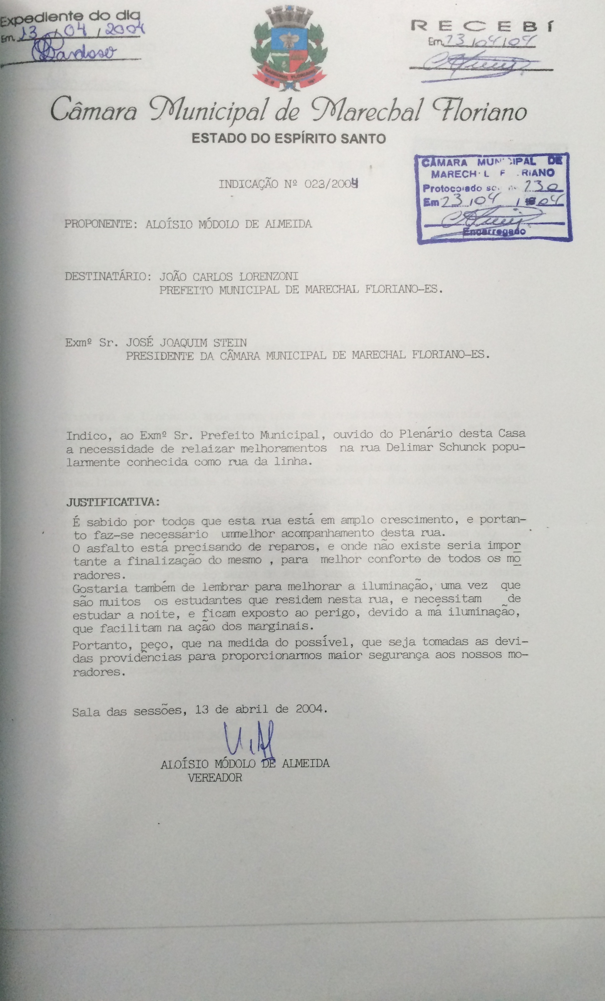 Ementa: INDICA A NECESSIDADE DE REALIZAR MELHORAMENTOS NA RUA DELIMAR SCHUNCK POPULARMENTE CONHECIDA COMO RUA DA LINHA.