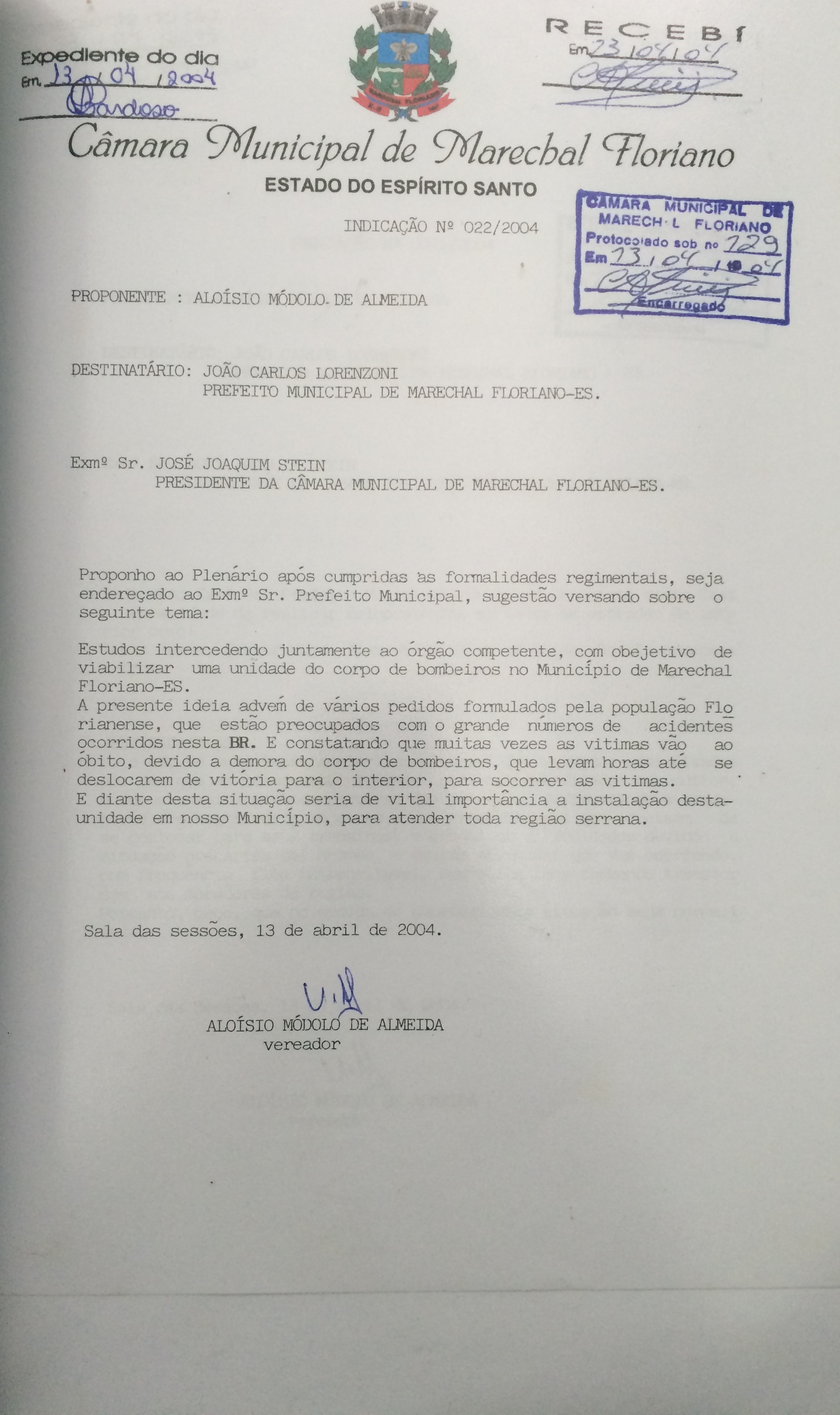 ESTUDOS INTERCEDENDO JUNTAMENTE AO ÓRGÃO COMPETENTE, COM OBJETIVO DE VIABILIZAR UMA UNIDADE DO CORPO DE BOMBEIROS NO MUNICÍPIO DE MARECHAL FLORIANO-ES.