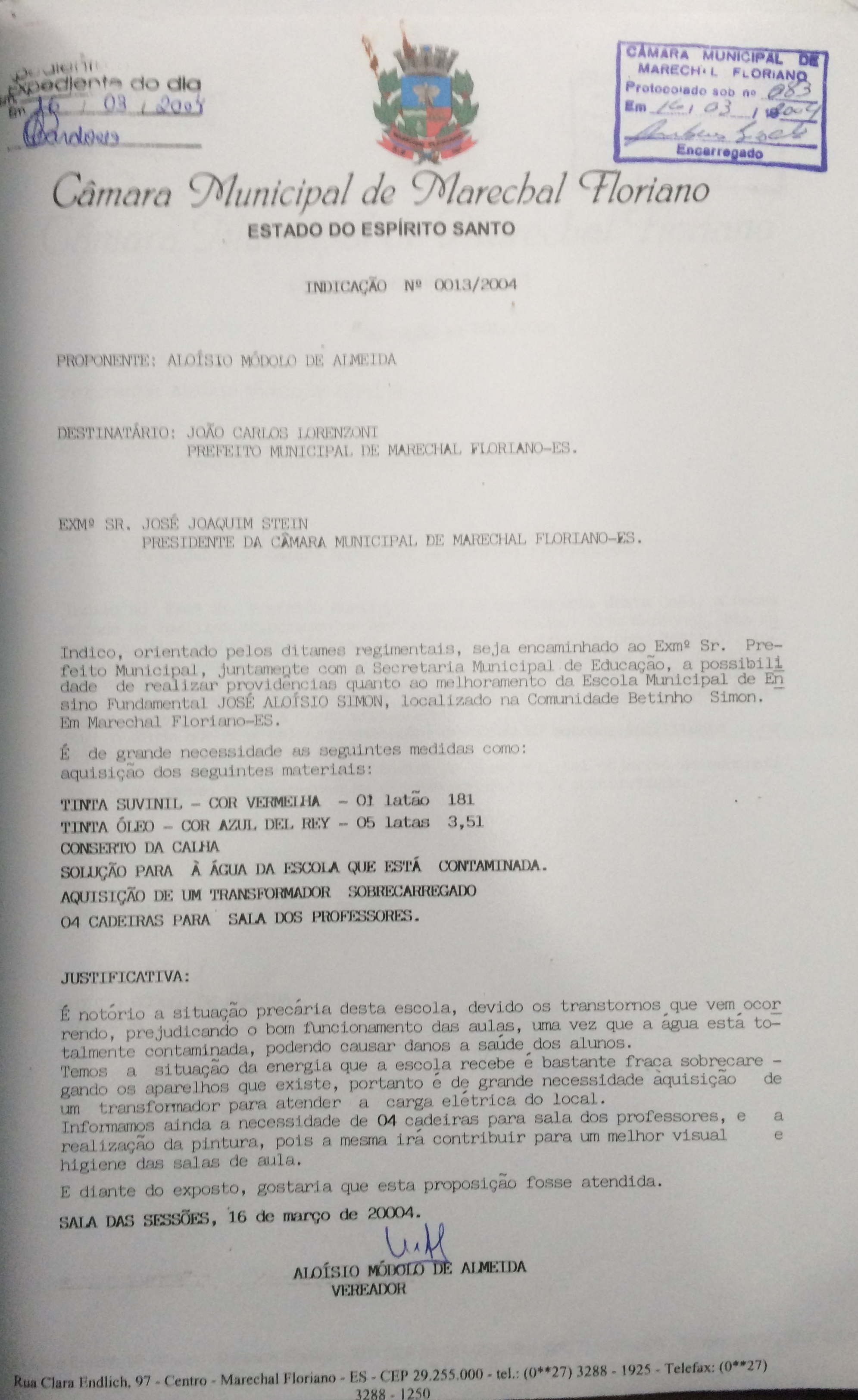 Ementa: INDICA A POSSIBILIDADE DE REALIZAR PROVIDENCIAS QUANDO AO MELHORAMENTO DA ESCOLA MUNICIPAL DE ENSINO FUNDAMENTAL JOSÉ ALOÍSIO SIMON, LOCALIZADO NA COMUNIDADE BETINHO SIMON.
