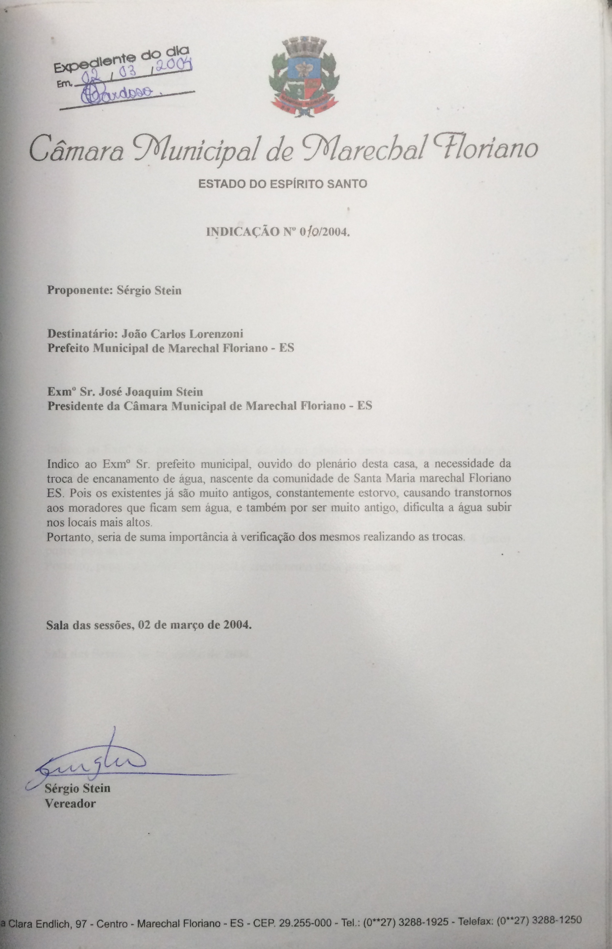 Ementa: INDICA A NECESSIDADE DA TROCA DE ENCANAMENTO DE ÁGUA, NASCENTE DA COMUNIDADE DE SANTA MARIA MARECHAL FLORIANO-ES.