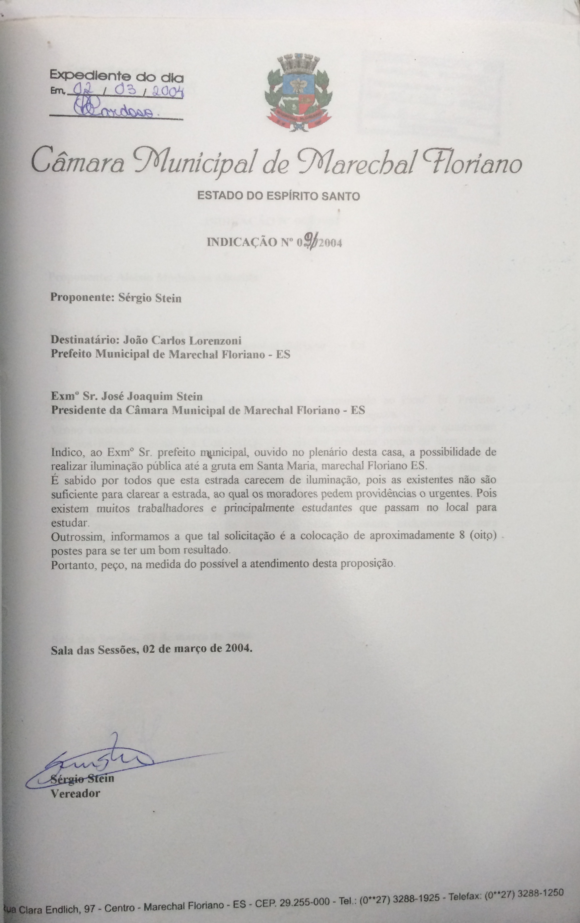 Ementa: INDICA A POSSIBILIDADE DE REALIZAR ILUMINAÇÃO PÚBLICA ATÉ A GRUTA EM SANTA MARIA, MARECHAL FLORIANO-ES.
