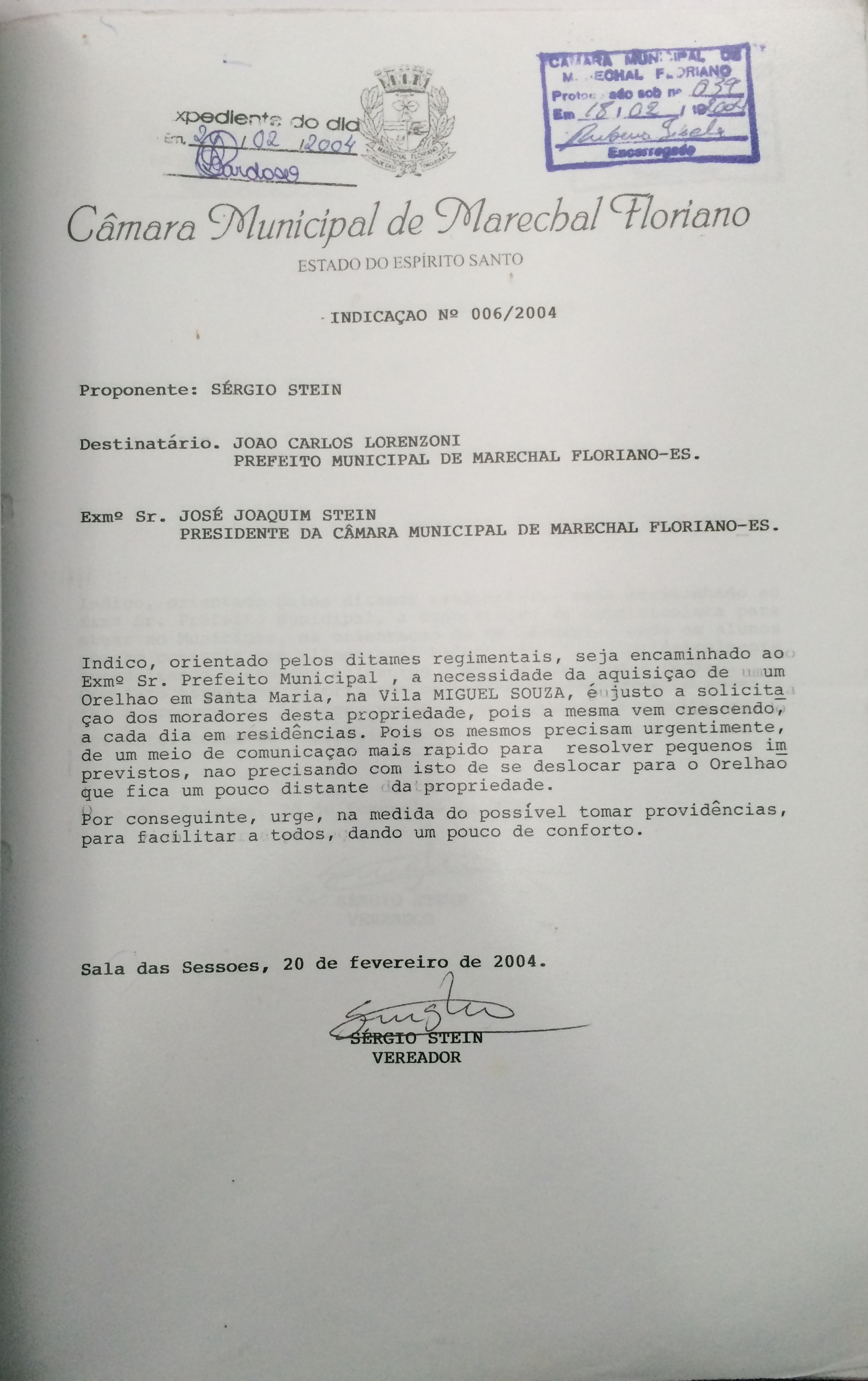 Ementa: INDICA A NECESSIDADE DE AQUISIÇÃO DE UM ORELHÃO EM SANTA MARIA, NA VILA MIGUEL SOUZA.