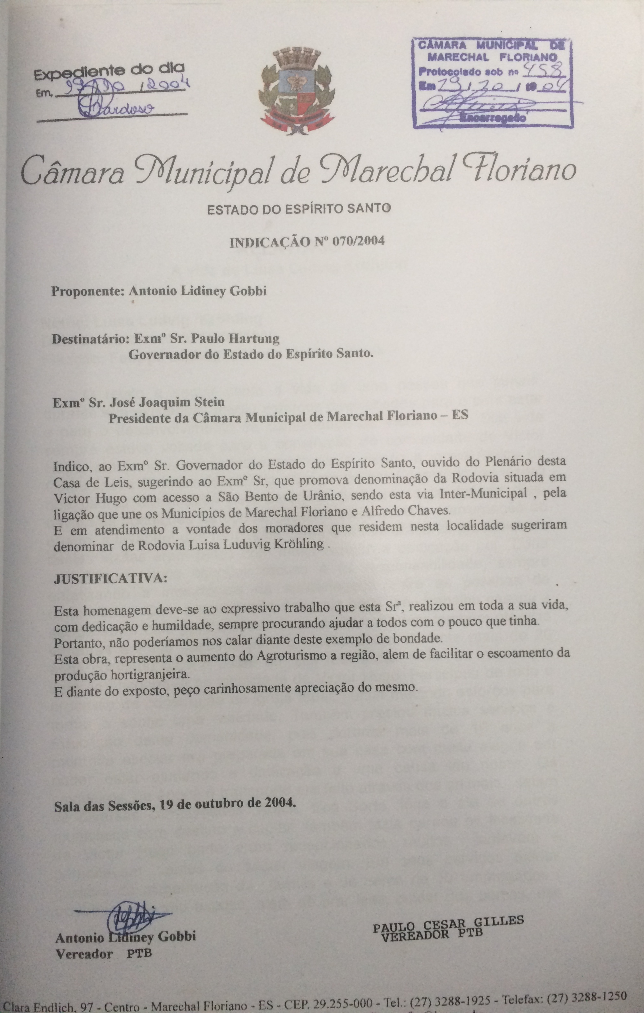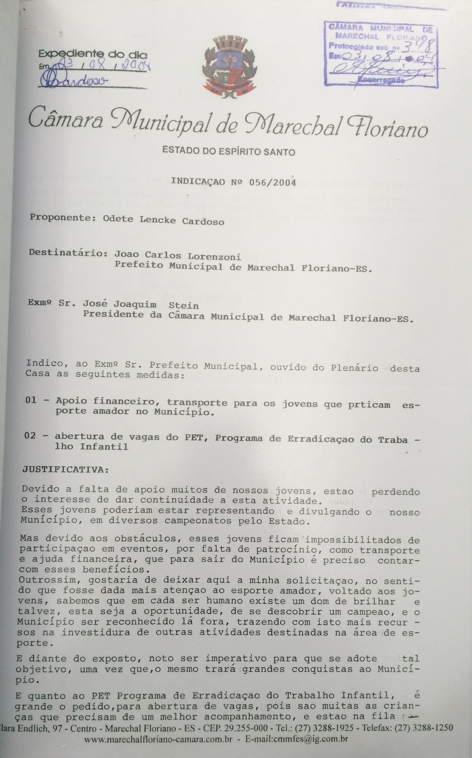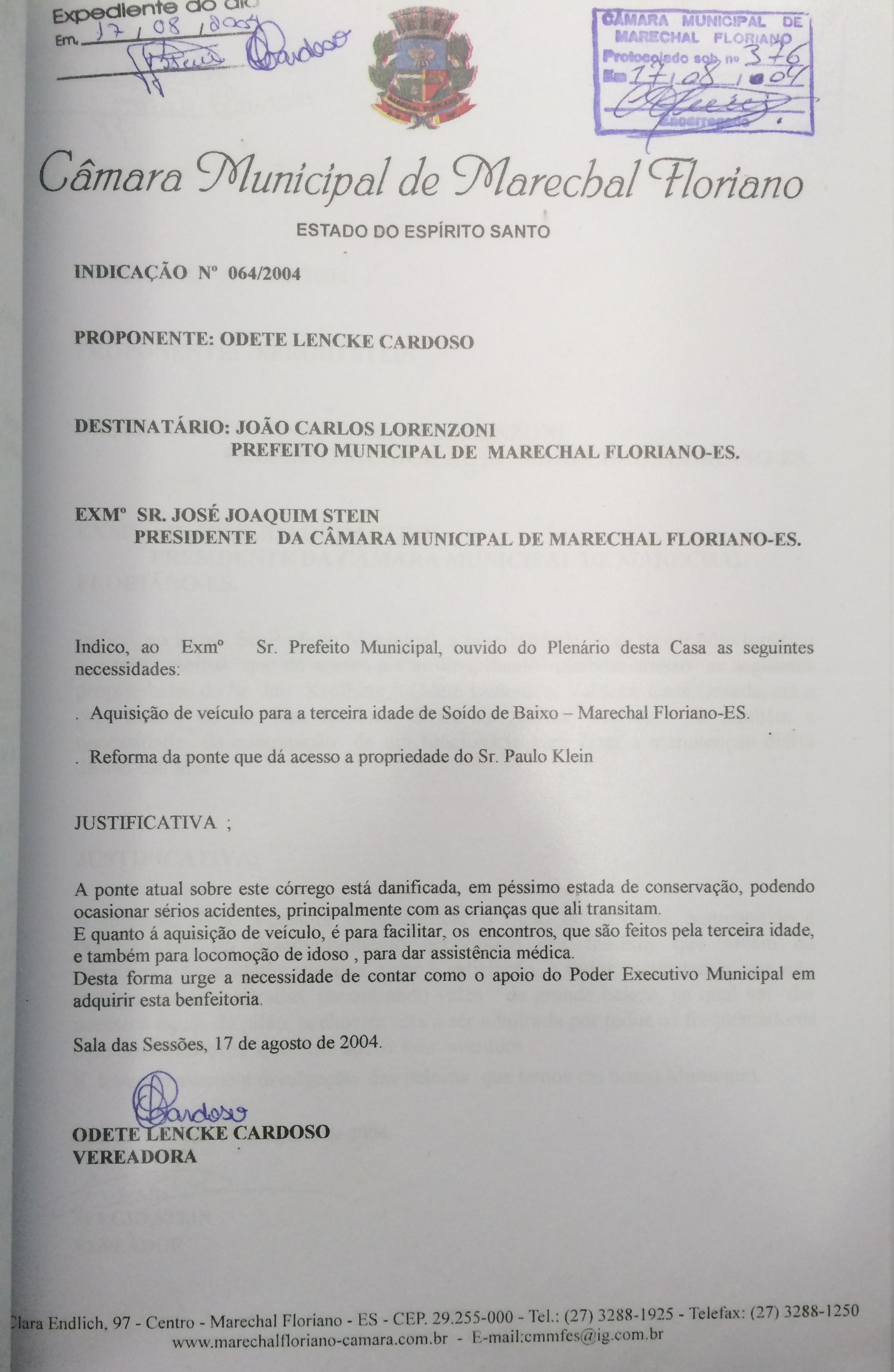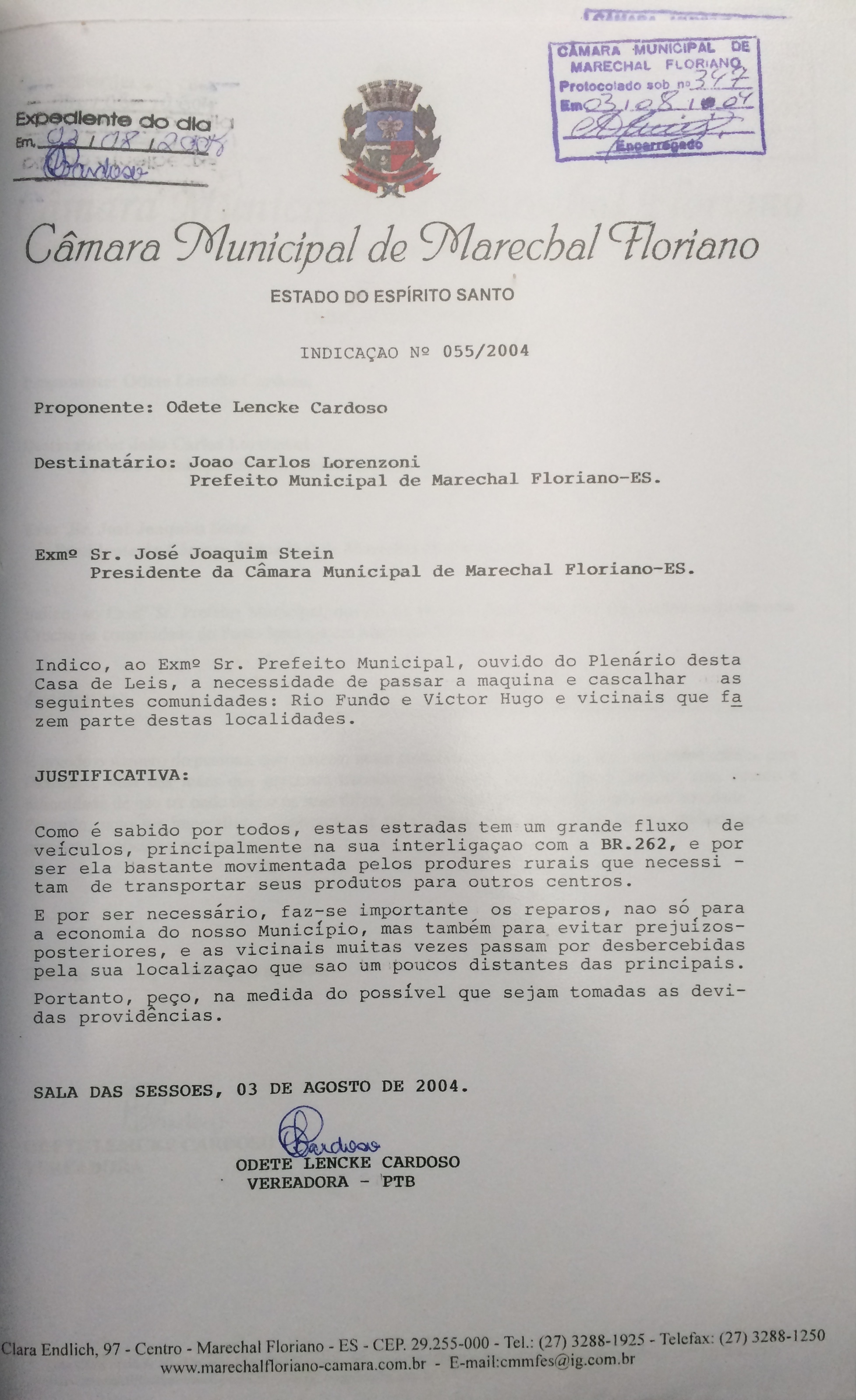 Ementa: INDICA A NECESSIDADE DE VIABILIZAR A REGULAMENTAÇÃO DOS LOTES, LOCALIZADOS NO CONJUNTO SÉRGIO SEBASTIÃO STEIN, COMUNIDADE DE SANTA RITA EM MARECHAL FLORIANO-ES.