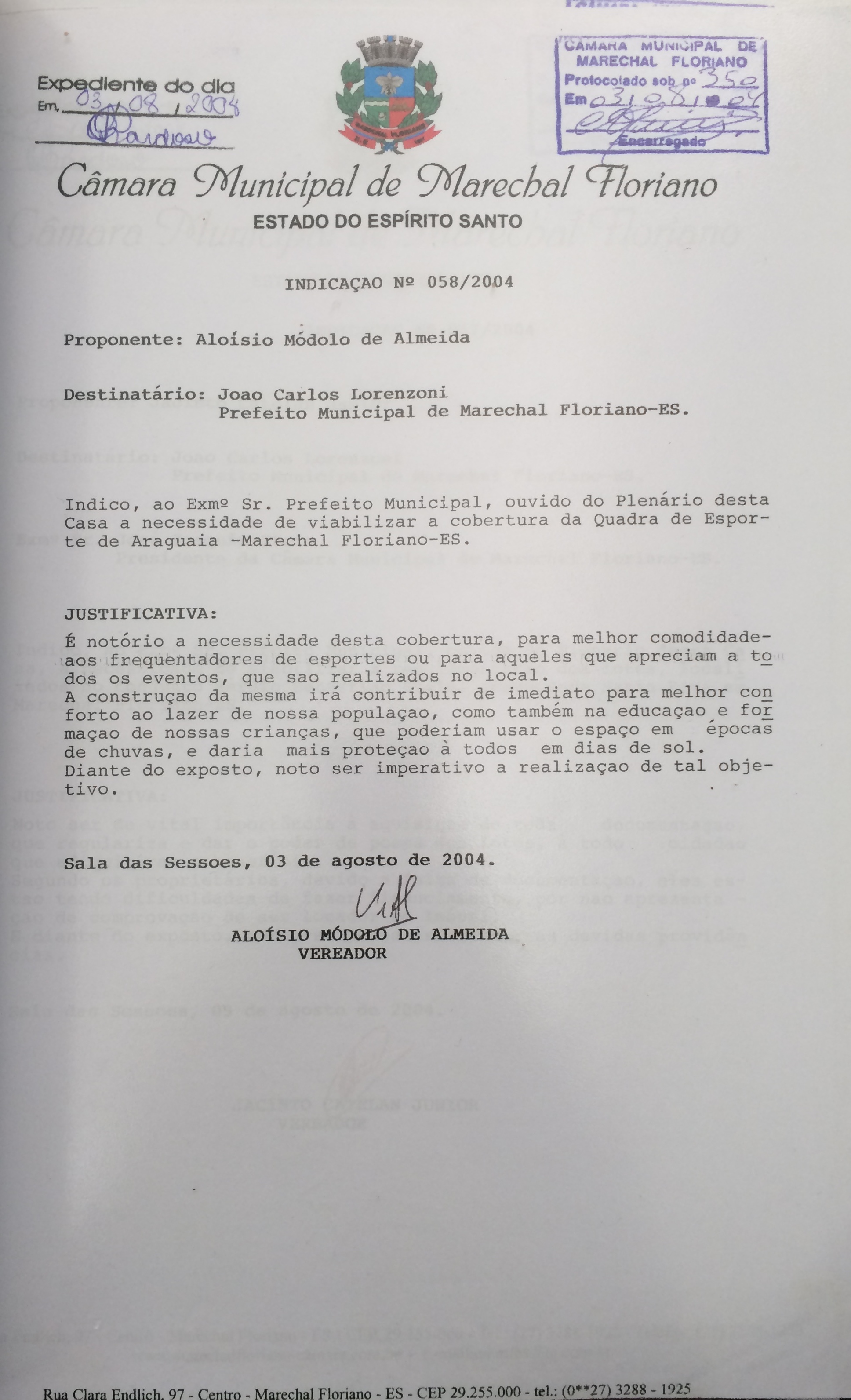 Ementa: INDICA A NECESSIDADE DA CONCLUSÃO DO CAMPO DE FUTEBOL EM ARAGUAIA, MARECHAL FLORIANO-ES.
