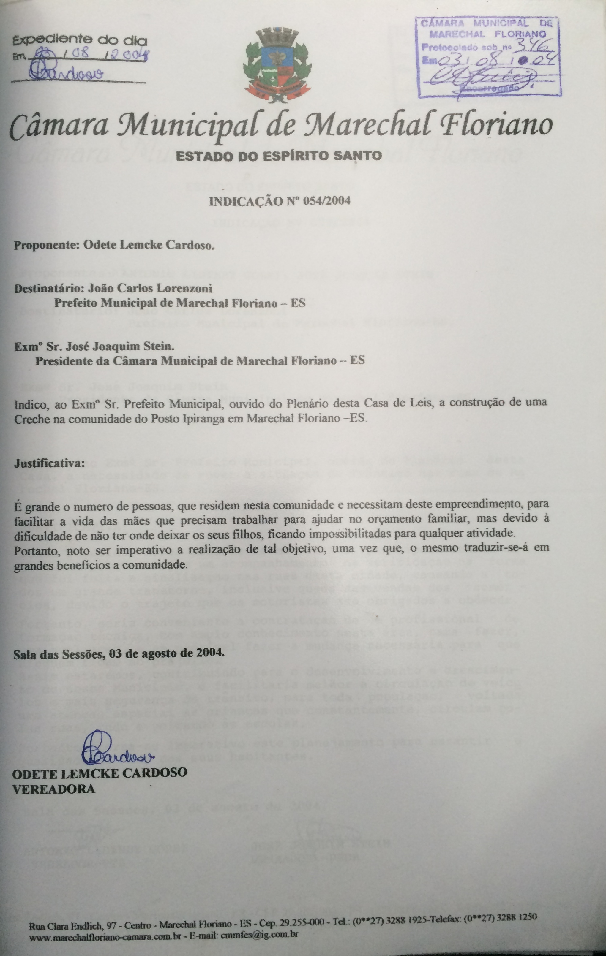 Ementa: INDICA A CONSTRUÇÃO DE UMA CRECHE NA COMUNIDADE DO POSTO IPIRANGA EM MARECHAL FLORIANO-ES.