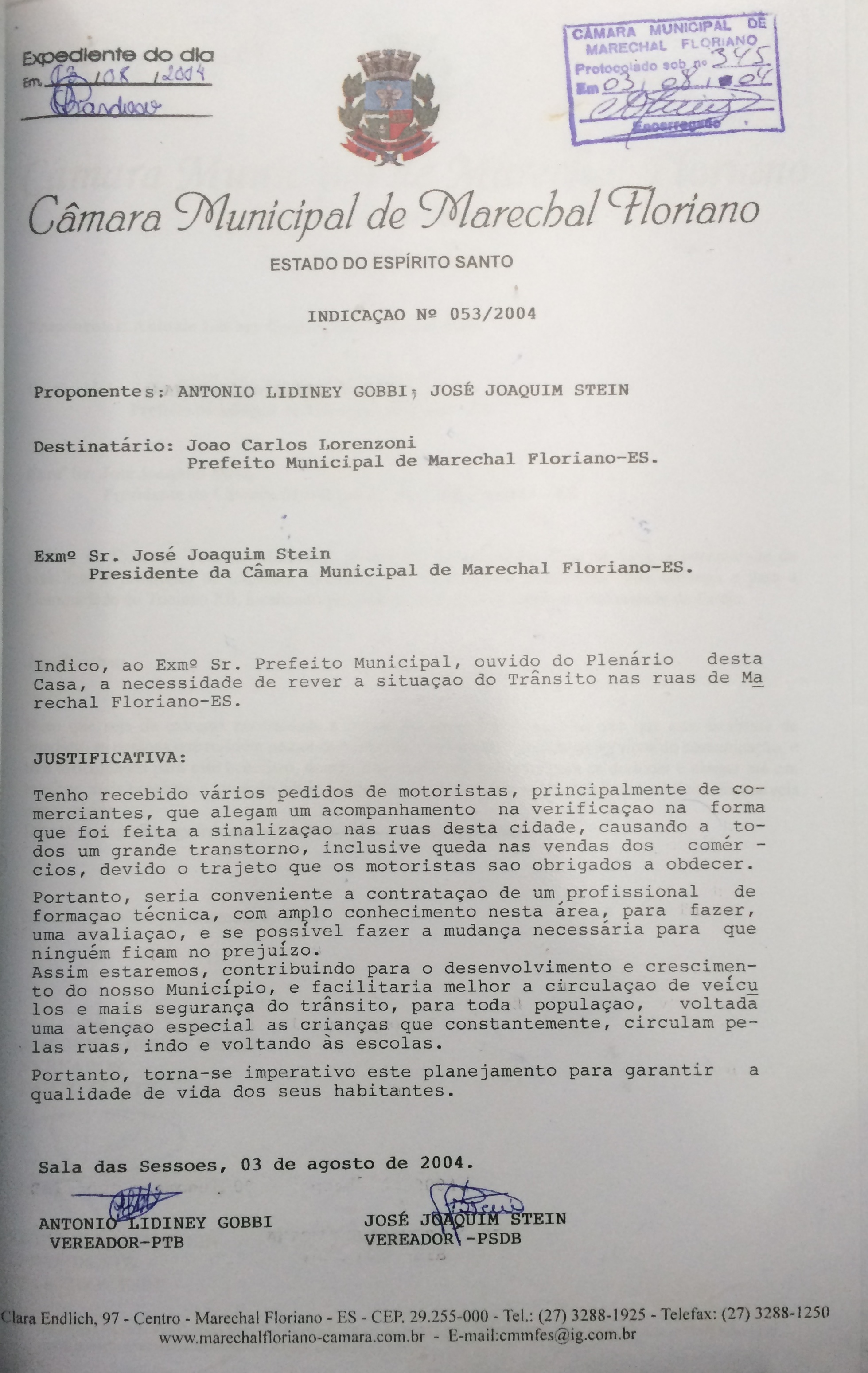 Ementa: INDICA A NECESSIDADE DE REVER A SITUAÇÃO DO TRÂNSITO NAS RUAS DE MARECHAL FLORIANO-ES.
