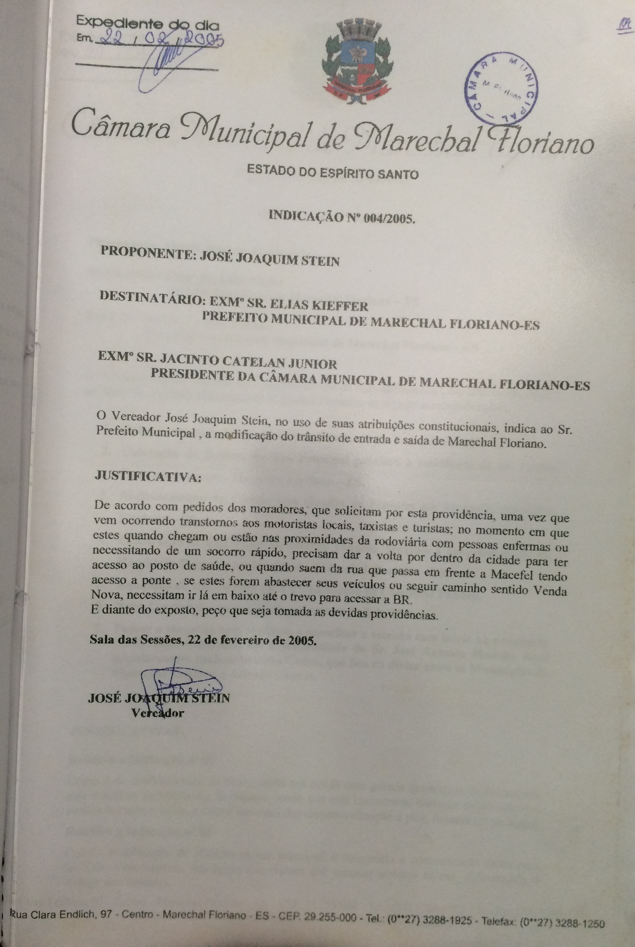 INDICA A MODIFICAÇÃO DO TRÂNSITO DE ENTRADA E SAÍDA DE MARECHAL FLORIANO.