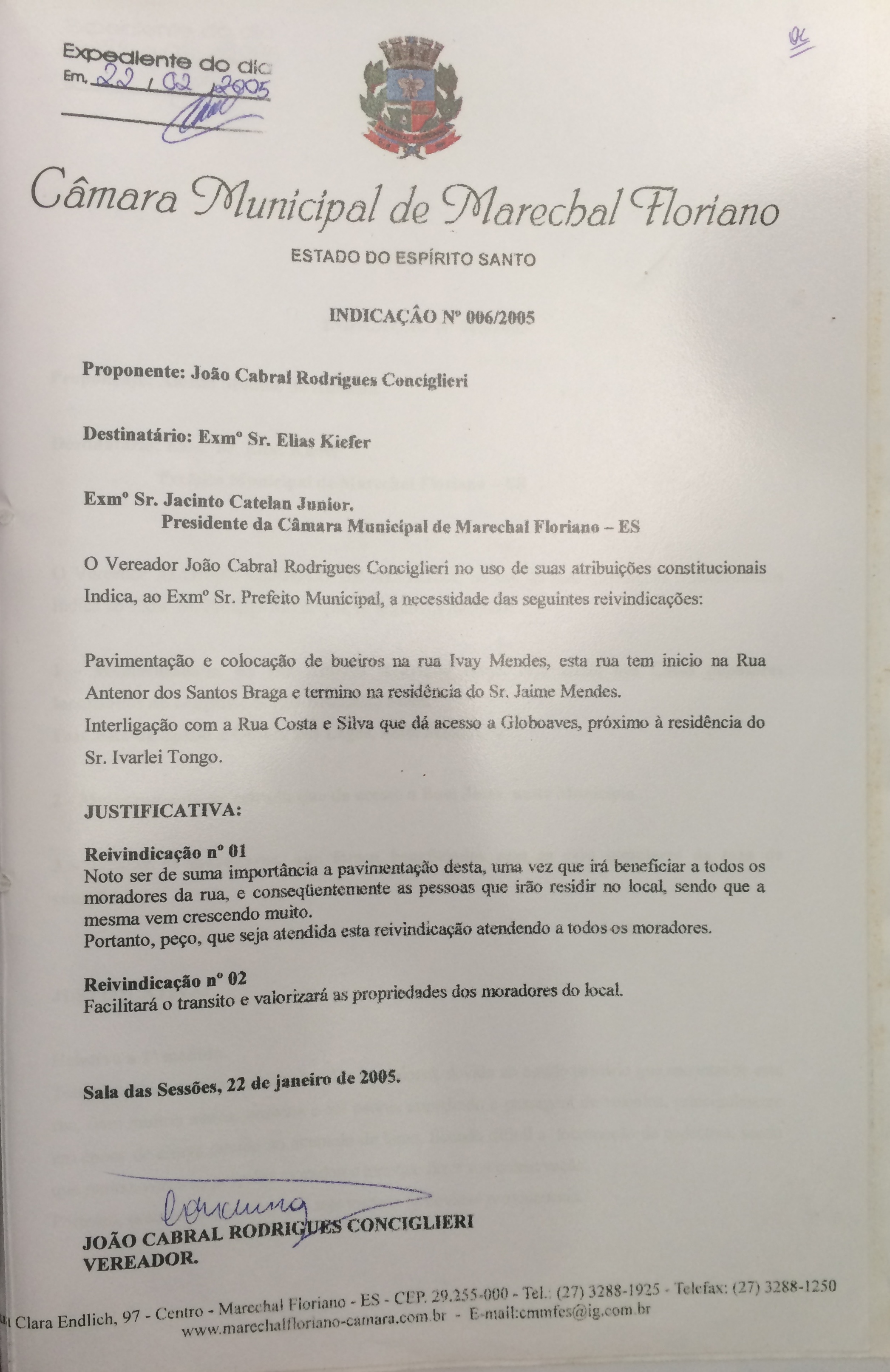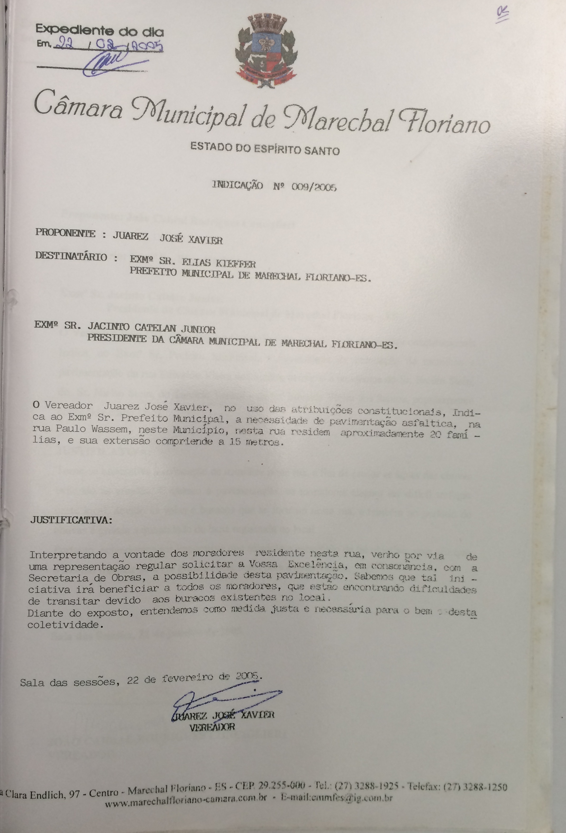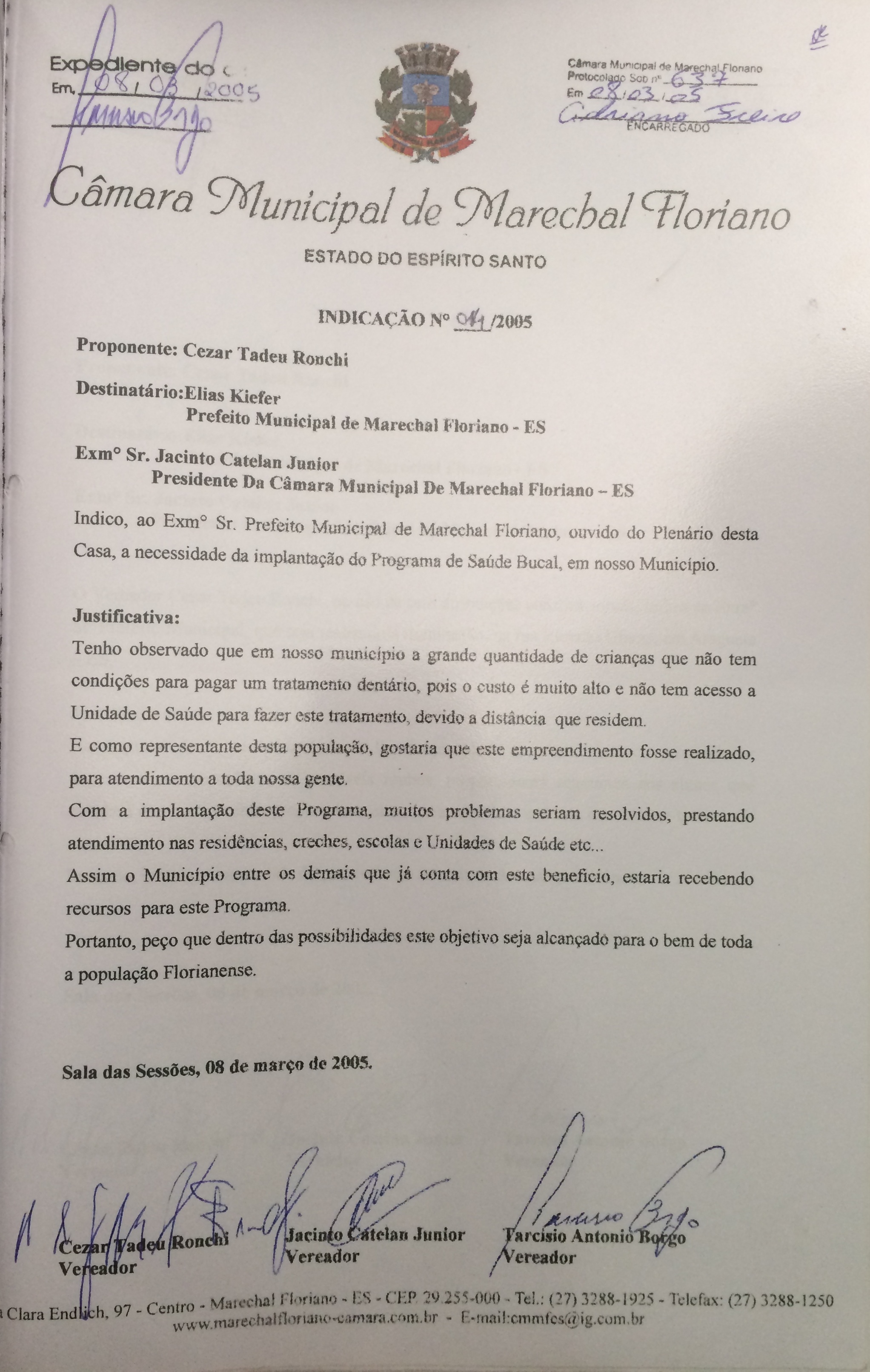 Protocolo: 637/2005, Data Protocolo: - Horário: