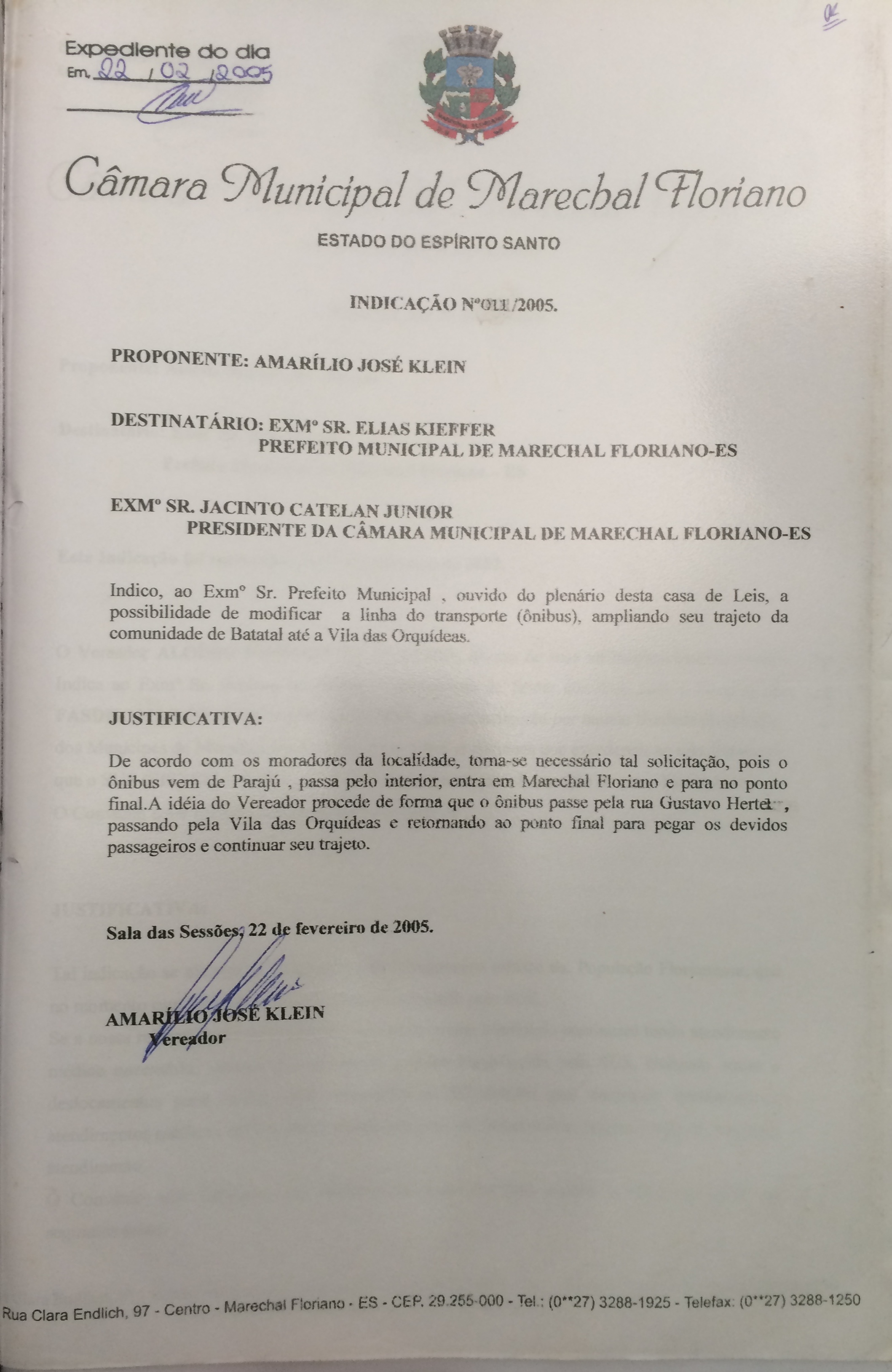 Protocolo: 644/2005, Data Protocolo: - Horário: