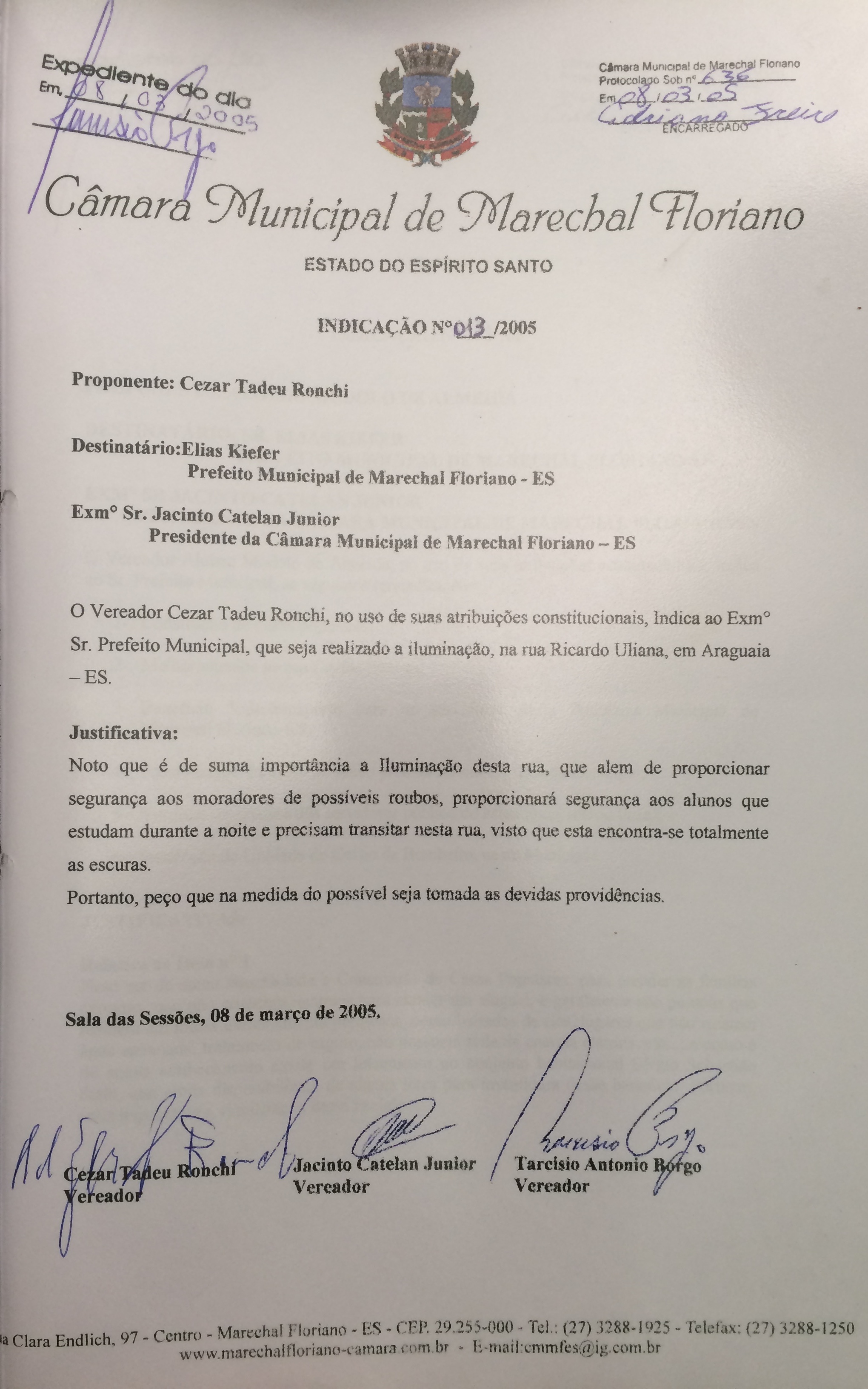 Protocolo: 636/2005, Data Protocolo: - Horário: