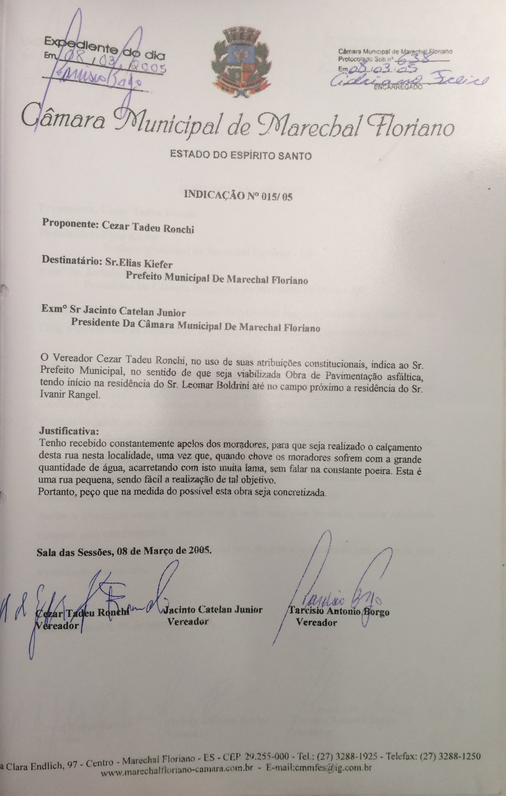 Protocolo: 638/2005, Data Protocolo: - Horário: