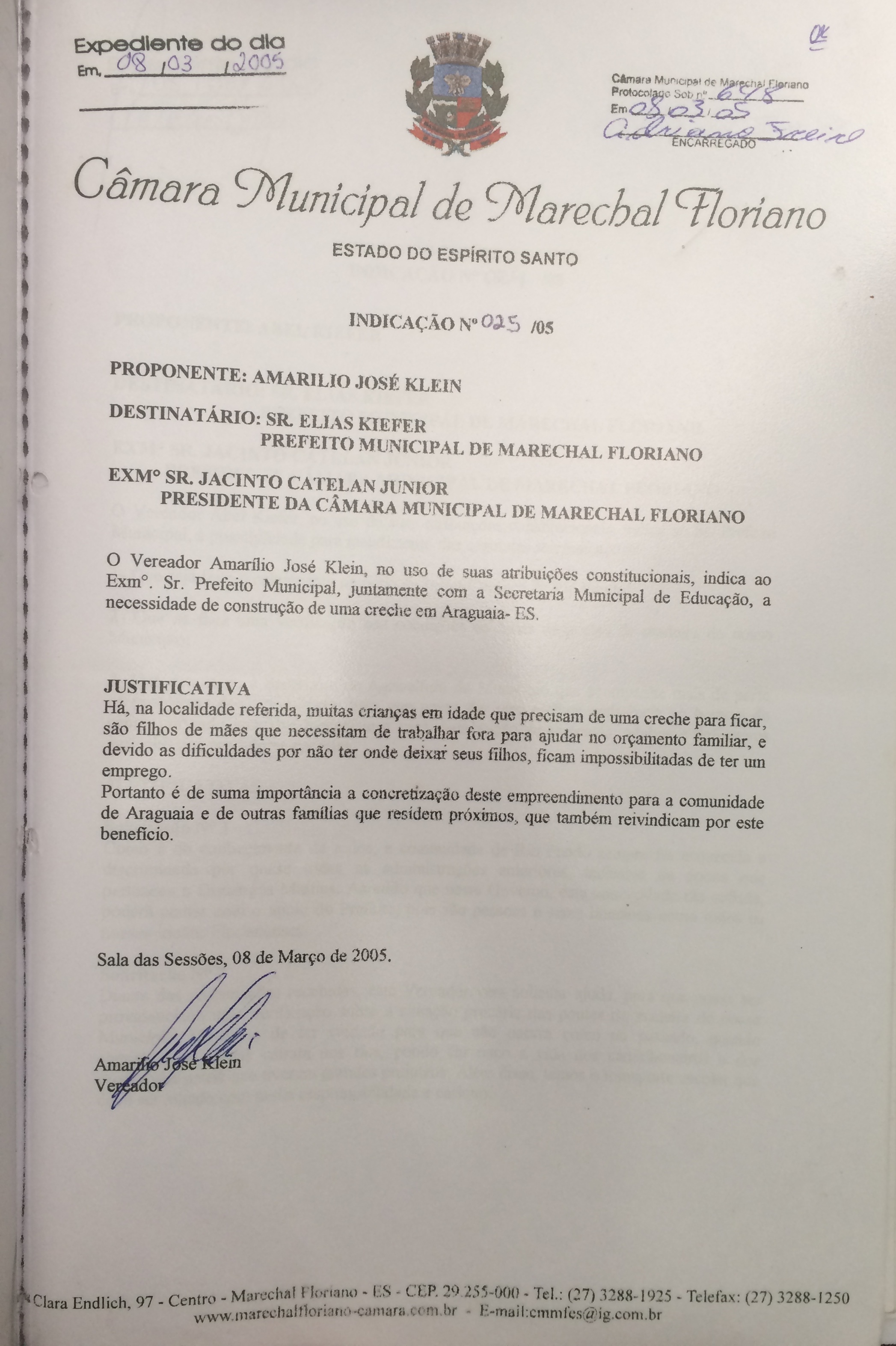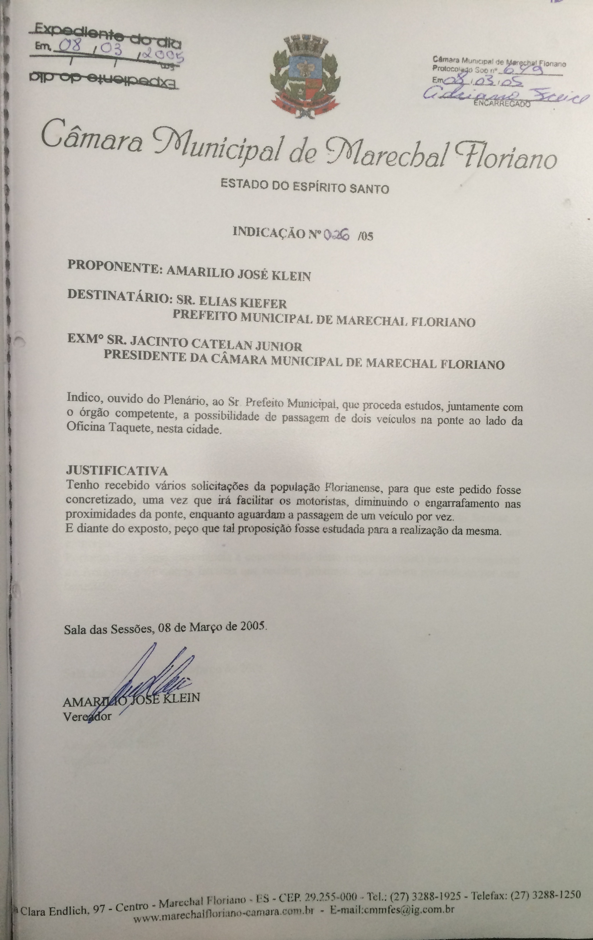 Protocolo: 650/2005, Data Protocolo: - Horário: