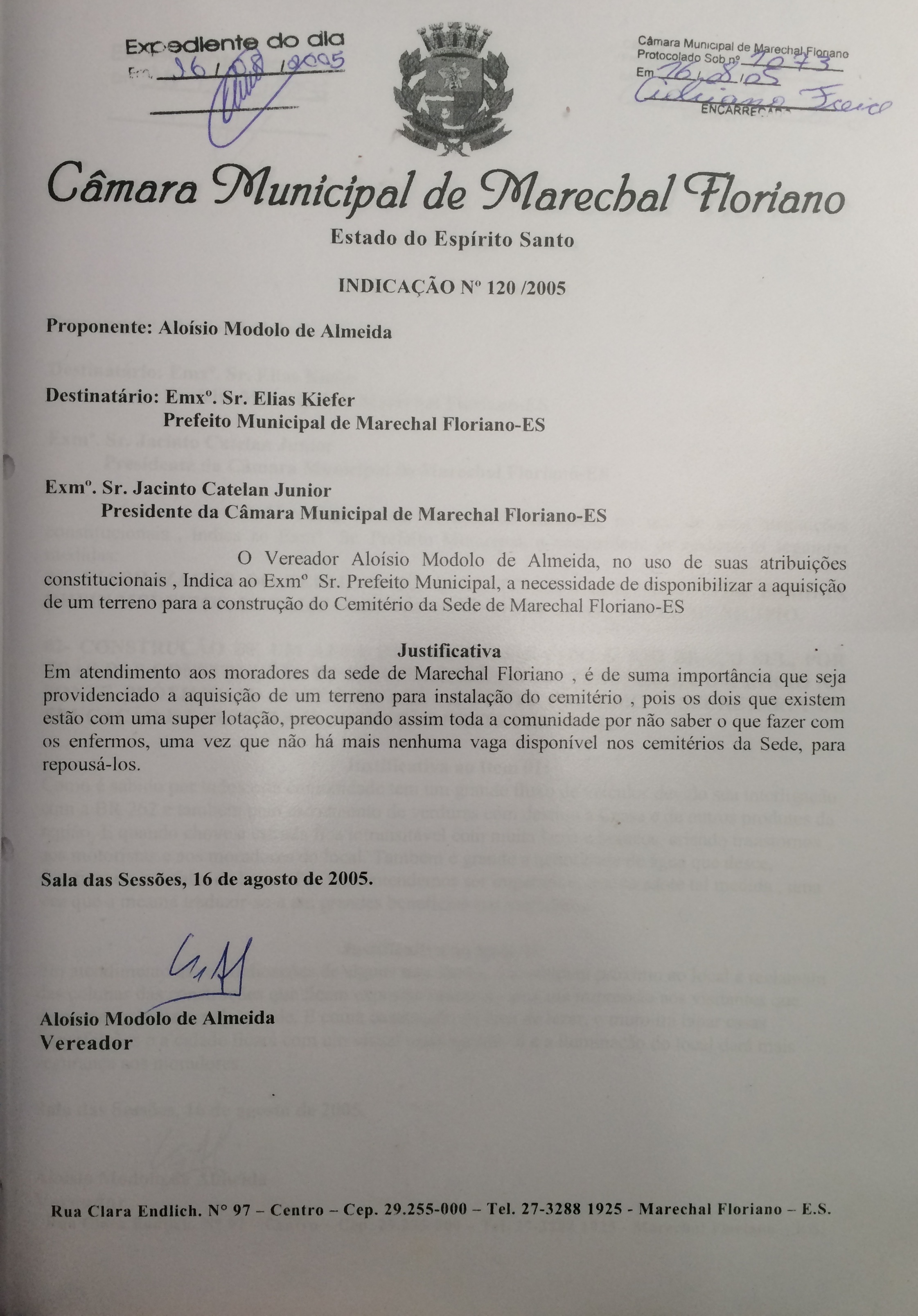 Ementa: INDICA A NECESSIDADE DE DISPONIBILIZAR A AQUISIÇÃO DE UM TERRENO PARA A CONSTRUÇÃO DO CEMITÉRIO DA SEDE DE MARECHAL FLORIANO-ES.
