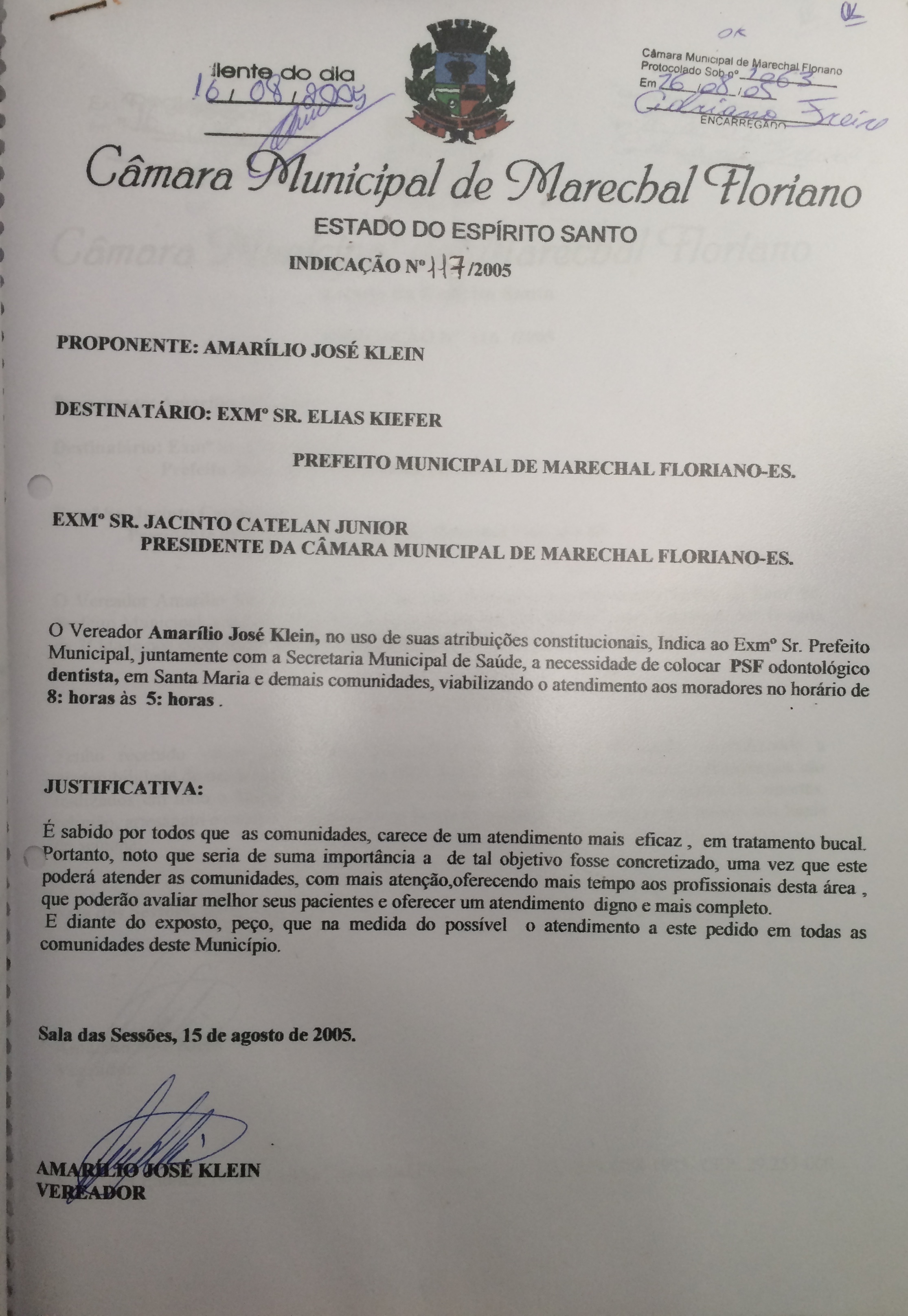 Ementa: INDICA A NECESSIDADE DE COLOCAR PSF ODONTOLÓGICO DENTISTA, EM SANTA MARIA E DEMAIS COMUNIDADES, VIABILIZANDO O ATENDIMENTO AOS MORADORES NO HORÁRIO DE 8 HORAS ÀS 5 HORAS.