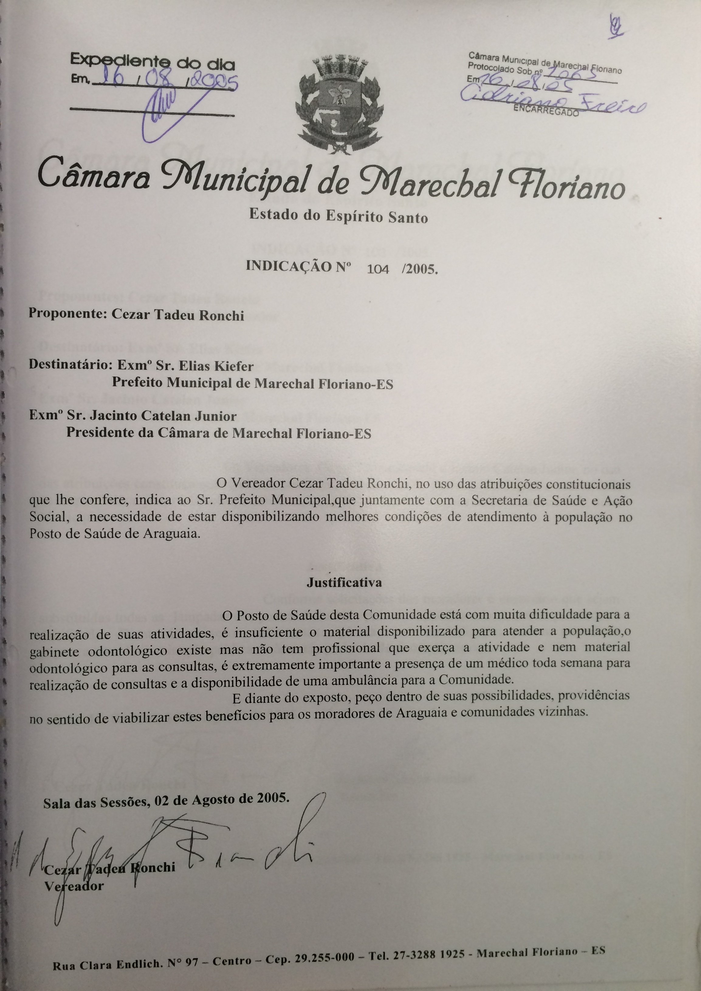 Ementa: INDICA A NECESSIDADE DE ESTAR DISPONIBILIZANDO MELHORES CONDIÇÕES DE ATENDIMENTO À POPULAÇÃO NO POSTO DE SAÚDE DE ARAGUAIA.