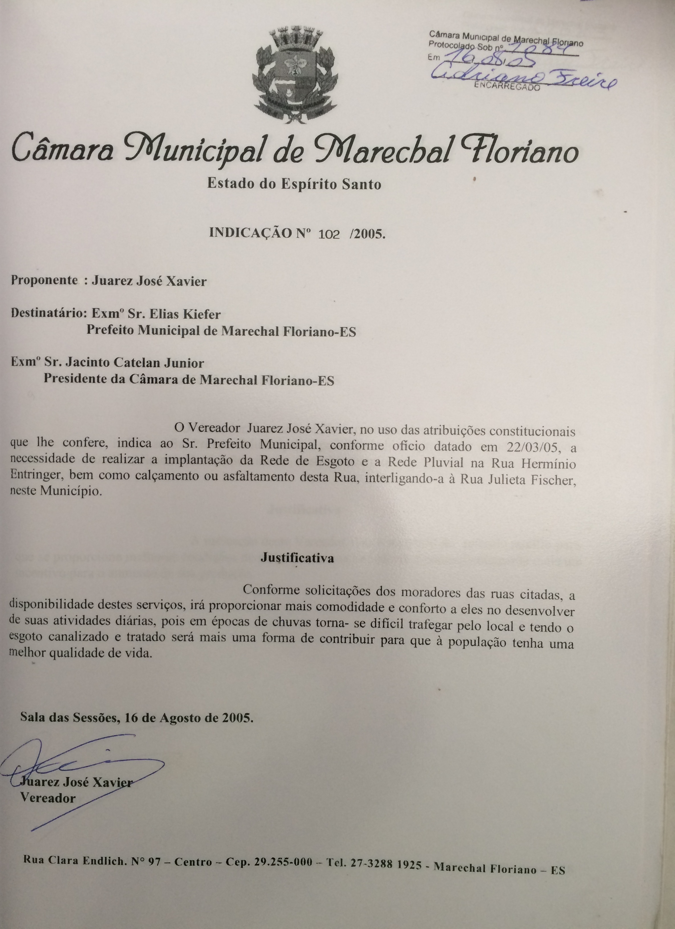 Ementa: INDICA A NECESSIDADE DE REALIZAR A IMPLANTAÇÃO DA REDE DE ESGOTO E A REDE PLUVIAL NA RUA HERMÍNIO ENTRINGER, BEM COMO CALÇAMENTO OU ASFALTAMENTO DESTA RUA, INTERLIGANDO-A À RUA JULIETA FISCHER, NESTE MUNICÍPIO.